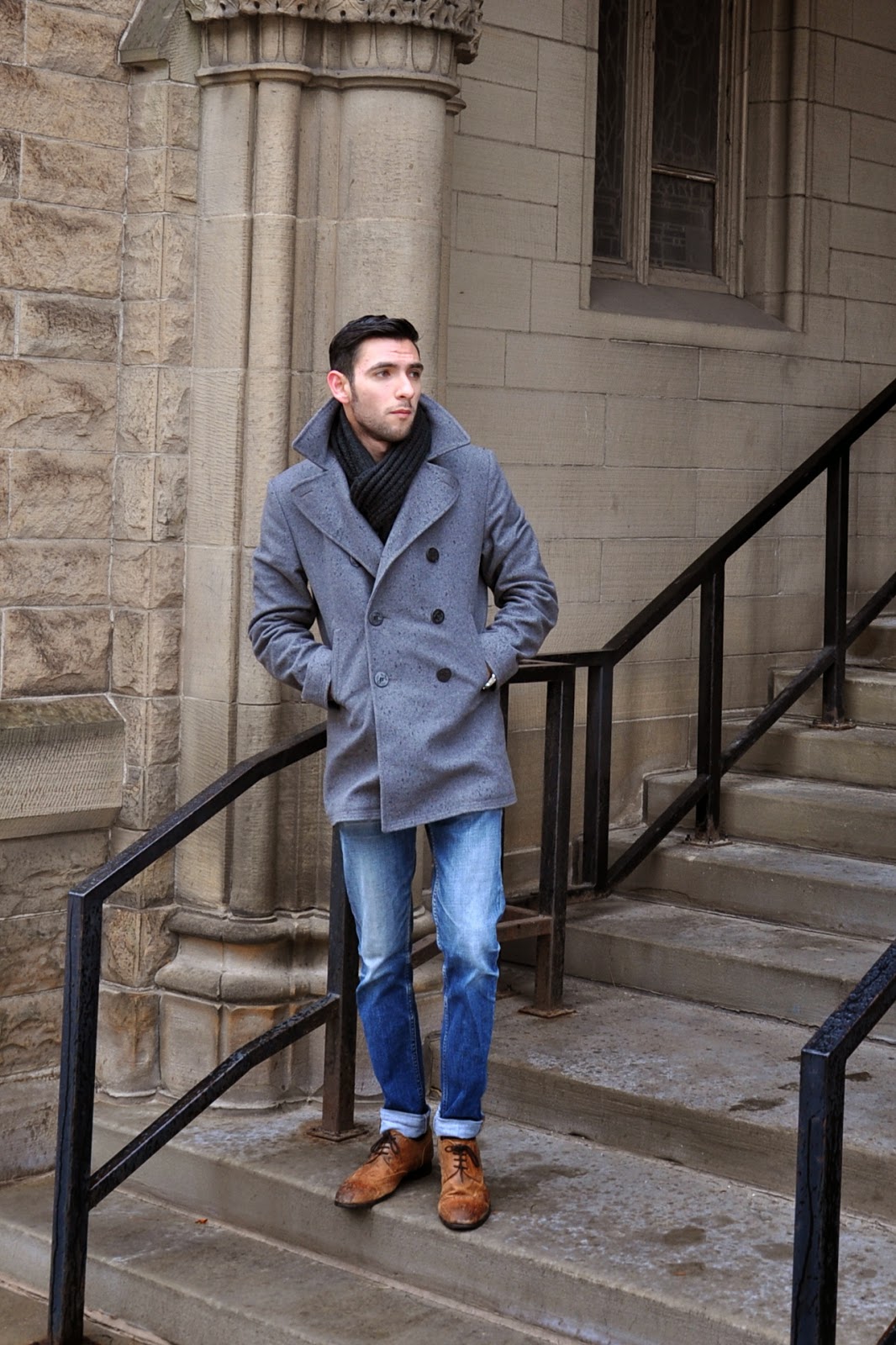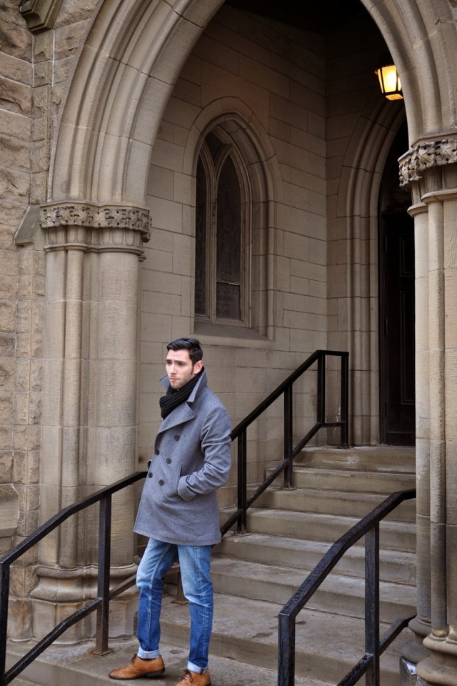 To match this wonderful environment, I chose to wear a timeless gray combination of peacoat with jeans which first of all, kept me warm and safe in the bone-chilling cold, and it also made a great match with the architecture of the city. Here you can see me in front of one of Detroit’s oldest churches, look at how beautiful the arches and columns are! The whole color palette is really discreet, but it works well with the type of architecture behind and what these buildings represent. What do you think? Falling in love with the city as well? Feel free to leave your comments down below. That’s all for the day folks! A little history lesson, a little style and fashion today. Thanks again for reading and remember to keep stylish and to continue putting your best look forward each day.