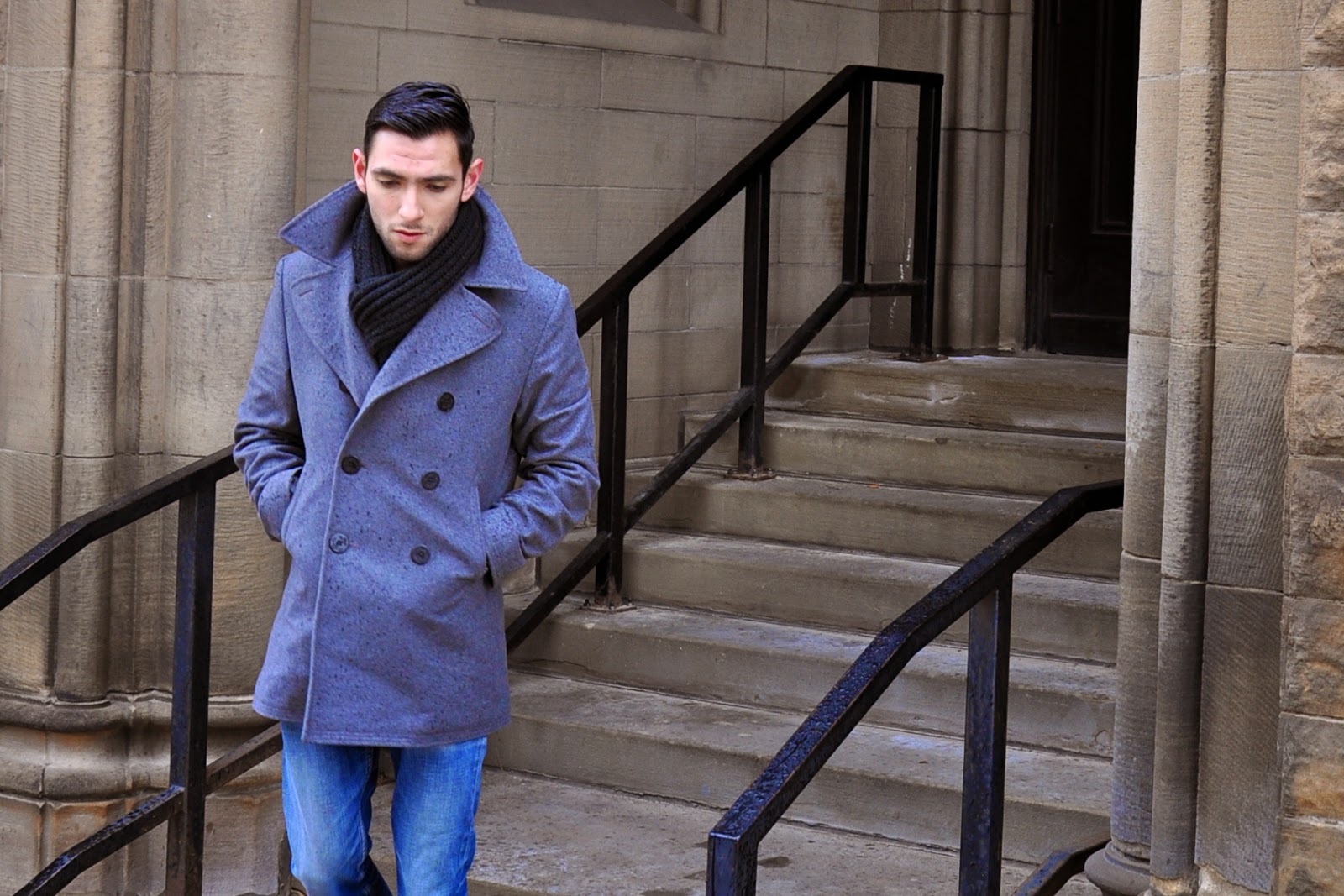 To match this wonderful environment, I chose to wear a timeless gray combination of peacoat with jeans which first of all, kept me warm and safe in the bone-chilling cold, and it also made a great match with the architecture of the city. Here you can see me in front of one of Detroit’s oldest churches, look at how beautiful the arches and columns are! The whole color palette is really discreet, but it works well with the type of architecture behind and what these buildings represent. What do you think? Falling in love with the city as well? Feel free to leave your comments down below. That’s all for the day folks! A little history lesson, a little style and fashion today. Thanks again for reading and remember to keep stylish and to continue putting your best look forward each day.