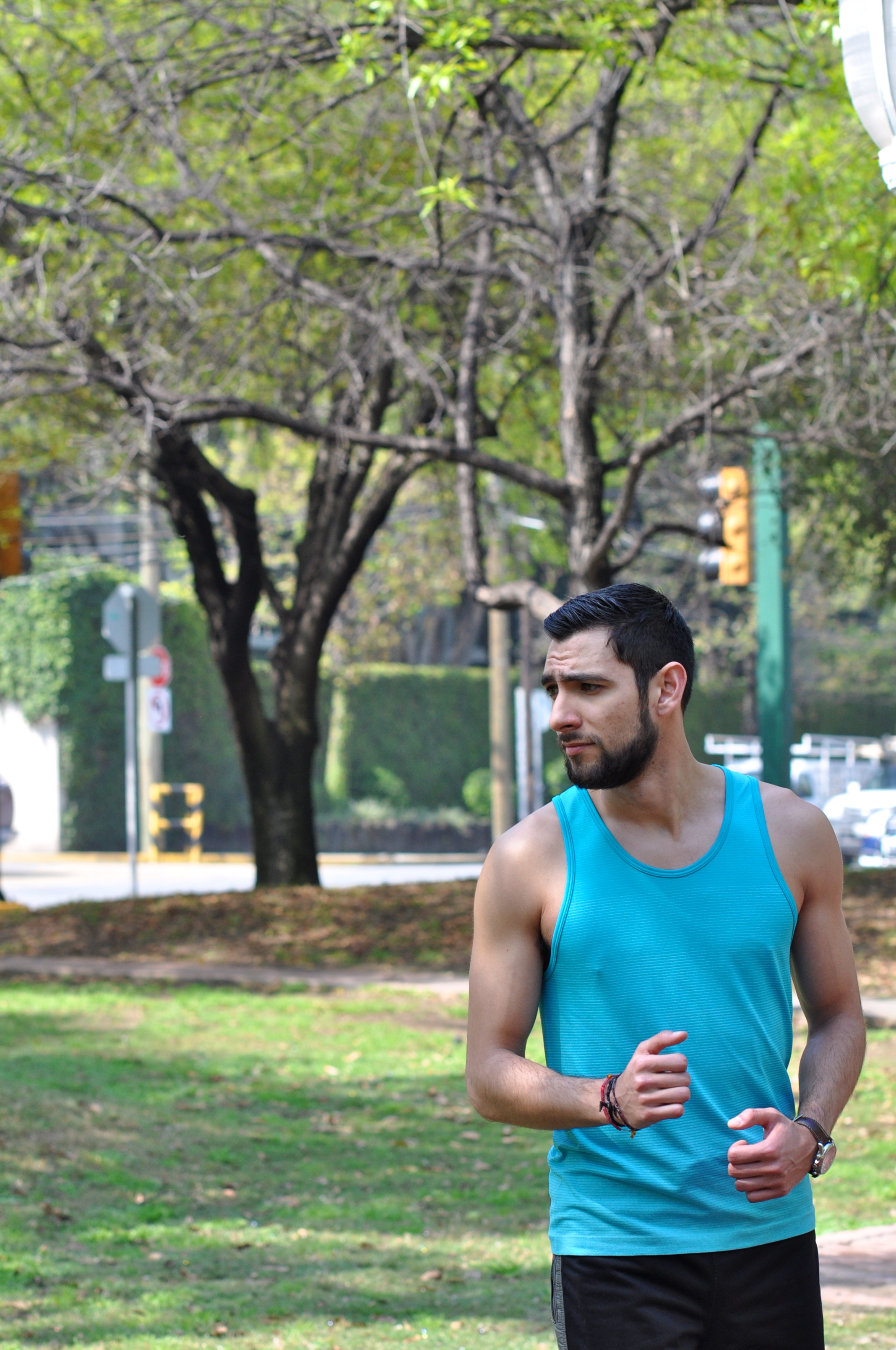 Sé que dije que no iba a hablar de moda, pero cuando al ejercicio se refiere, lo que vistes es de máxima importancia. Y no estoy hablando en que te tienes que ver bien para darle una vuelta a la manzana, estoy hablando de los materiales de tu ropa y el ajuste que esta te tiene; debe ser lo más cómodo posible. Una de las mejores adquisiciones que hice el mes pasado fue comprar esta camiseta sin mangas de Lululemon azul, que pueden ver en las fotos. Usualmente no sudo mucho (es algo que tienes que tomar en cuenta cuando escoges tu atuendo para correr) pero especialmente cuando hace calor y el sol brilla con intensidad sí sudo, y mucho. Esta camiseta es completamente dry fit, lo que significa que aunque sudes, ésta transpira y tu cuerpo se sentirá seco todo el tiempo. Funcionó a la perfección para mí en esta mañana, ya que todavía no hacía tanto calor pero el sol ya brillaba con fuerza. Después de hacer todo el circuito con mi mamá, hice un par de lagartijas y eso fue todo por ese día. Mi mamá fue la que tomó estas fotografías (ella iba caminando mientras yo iba corriendo) y no le puedo agradecer lo suficiente por haberme ayudado con esto. ¿Qué hacen ustedes para mantenerse en forma? ¿También fue uno de sus propósitos de año nuevo, como conmigo?