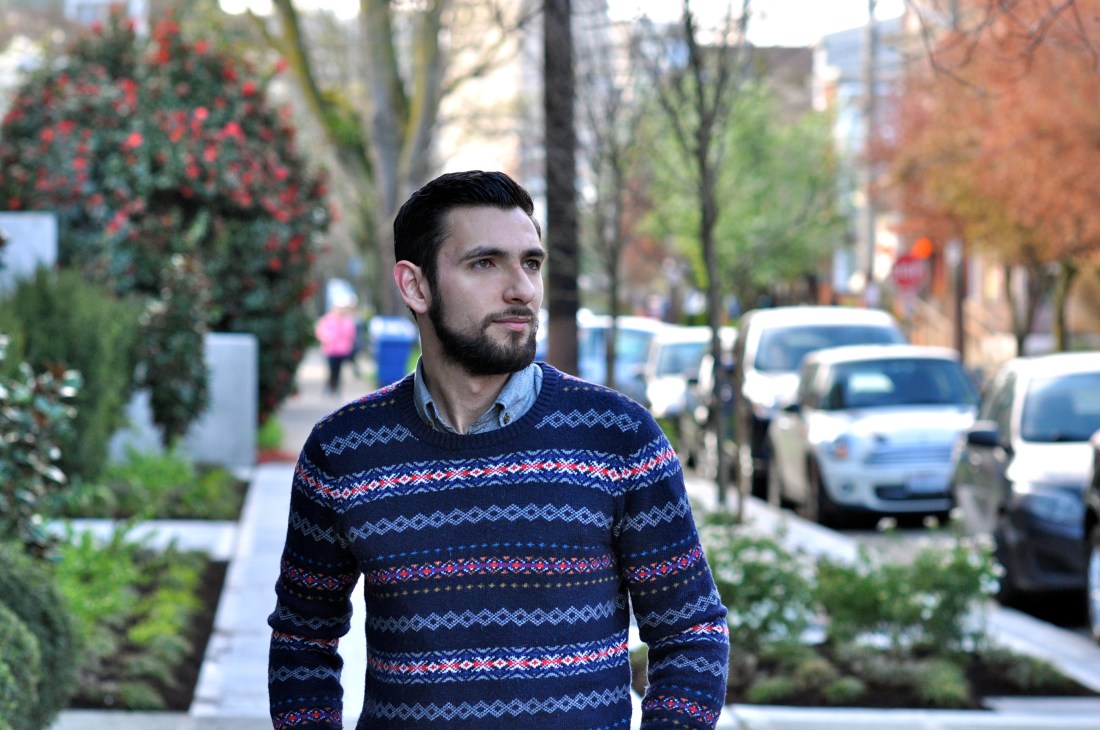 For my fourth anniversary, I’m showcasing a very comfortable, street-walk style, created by mixing my pair of washed pink chinos and this patterned sweater that I got as a gift from my family last year. I love button-down and sweater combinations; it’s very easy to mix and match various styles of these two garments and create a very different look than what you would achieve with just the shirt or just the sweater. Since it’s still a bit cold I’m wearing a light jacket, and my all-weather brown boots that have survived everything this year (rain in the PNW, dust in Monterrey, snow in Boston, walking a LOT in NYC). What’s your take on this outfit guys? This is what I love about my city, but what is it that you love about yours? I want to thank my roommate Carlos for taking these pics for me, he really captured what I like the most about the city in these shots.