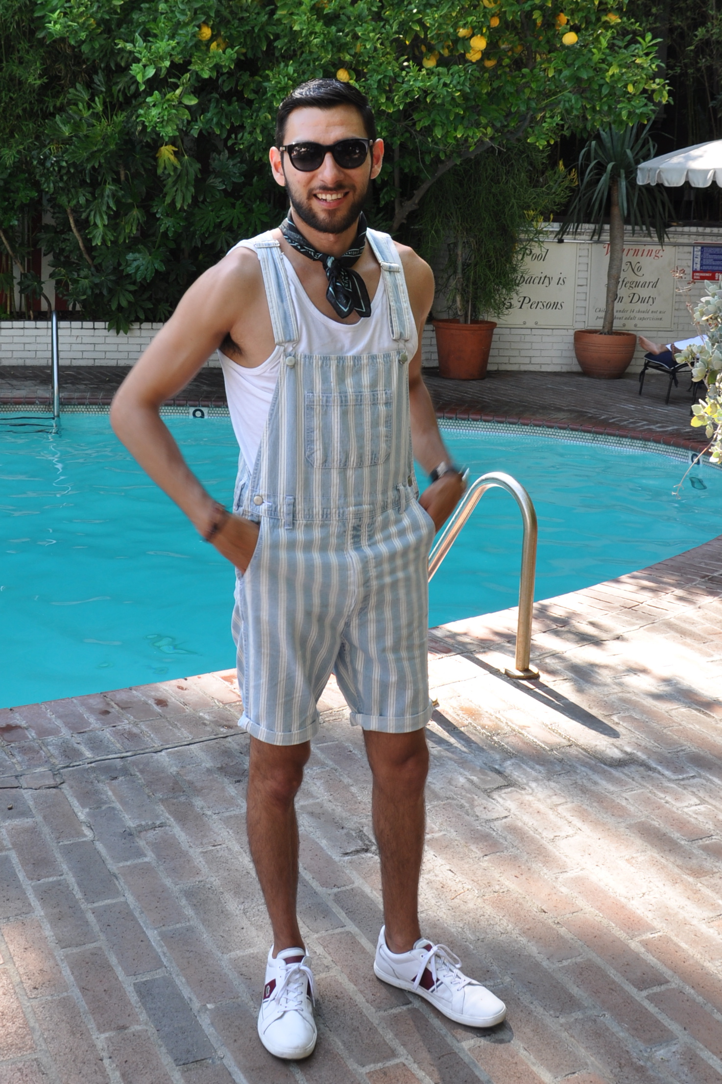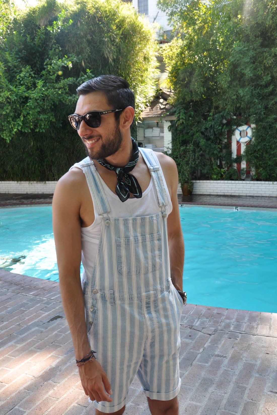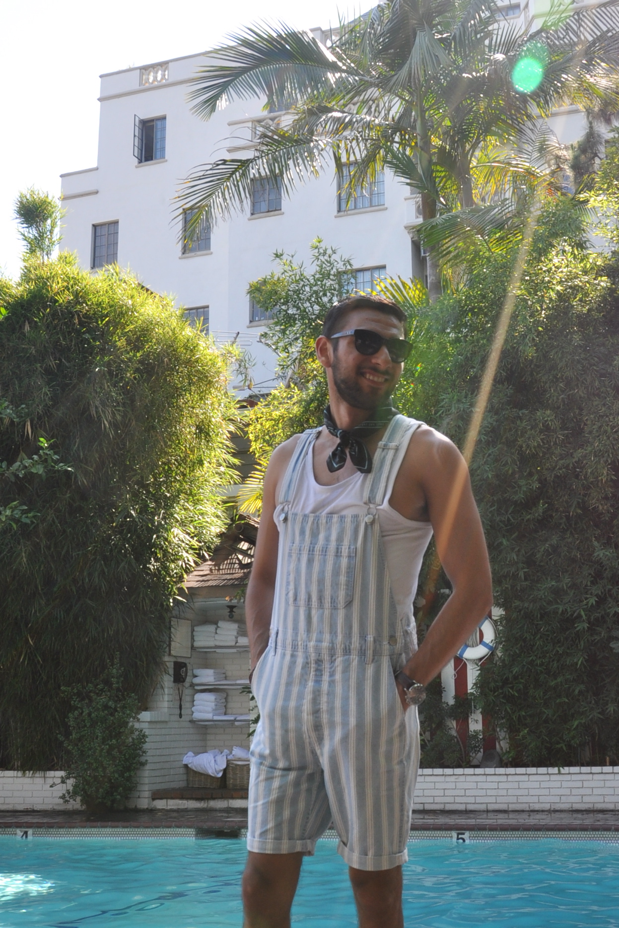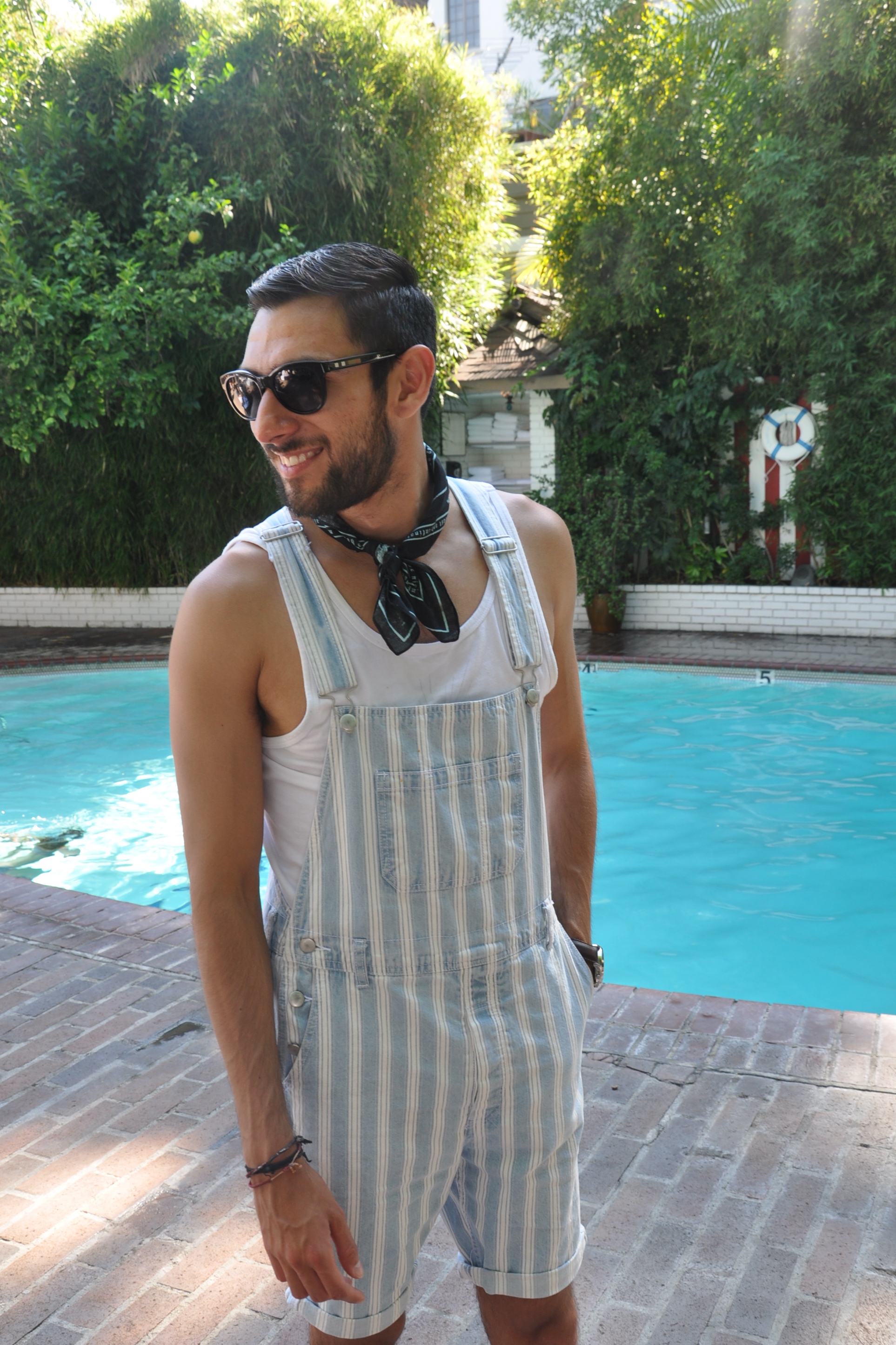 El segundo día, fuimos al Chateau Marmont, que es uno de mis lugares favoritos en toda la ciudad, y mi amigo Sergio me tomó estas fotos, las cuales todavía no puedo superar. Gracias por las fotos, Checo. Primero que nada, el castillo es hermoso. Tiene un look de villa antigua europea que me fascina, y la arquitectura es impresionante. Ahora, volviendo a las fotografías, están súper frescas y padres. Ya me siento completamente listo para el verano ahora sí en este outfit, aún y cuando no hizo tanto calor como esperaba en el sur de California. Hasta Seattle estuvo más cálido que LA este fin de semana. ¿Ustedes qué opinan? ¿Les agrada el look de overol con paliacate? Es un poco más atrevido que lo que normalmente uso (enseña mucha piel) pero siento que con la camiseta sin mangas le baje el tono un poquito, dado que está completamente abierto de los lados.