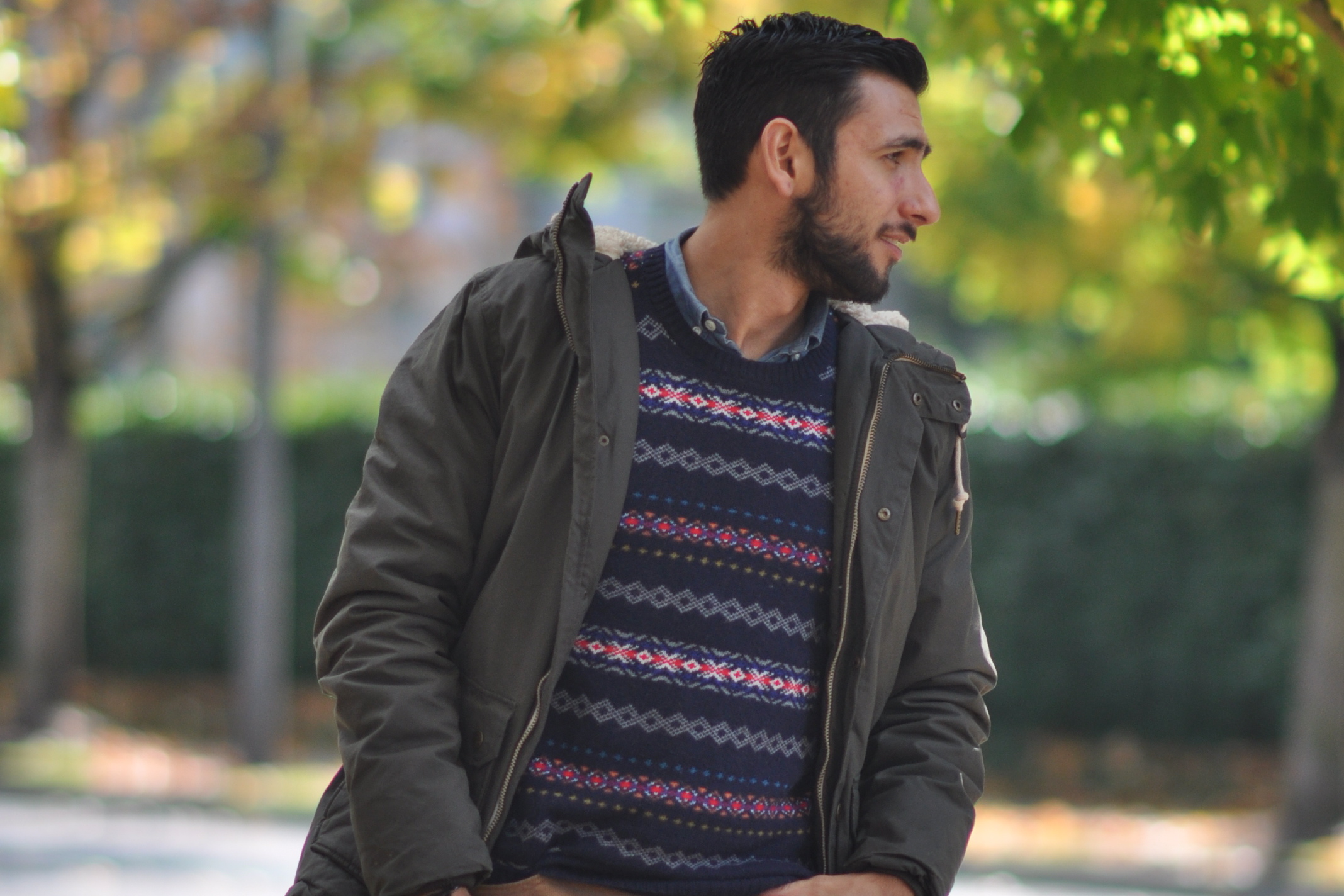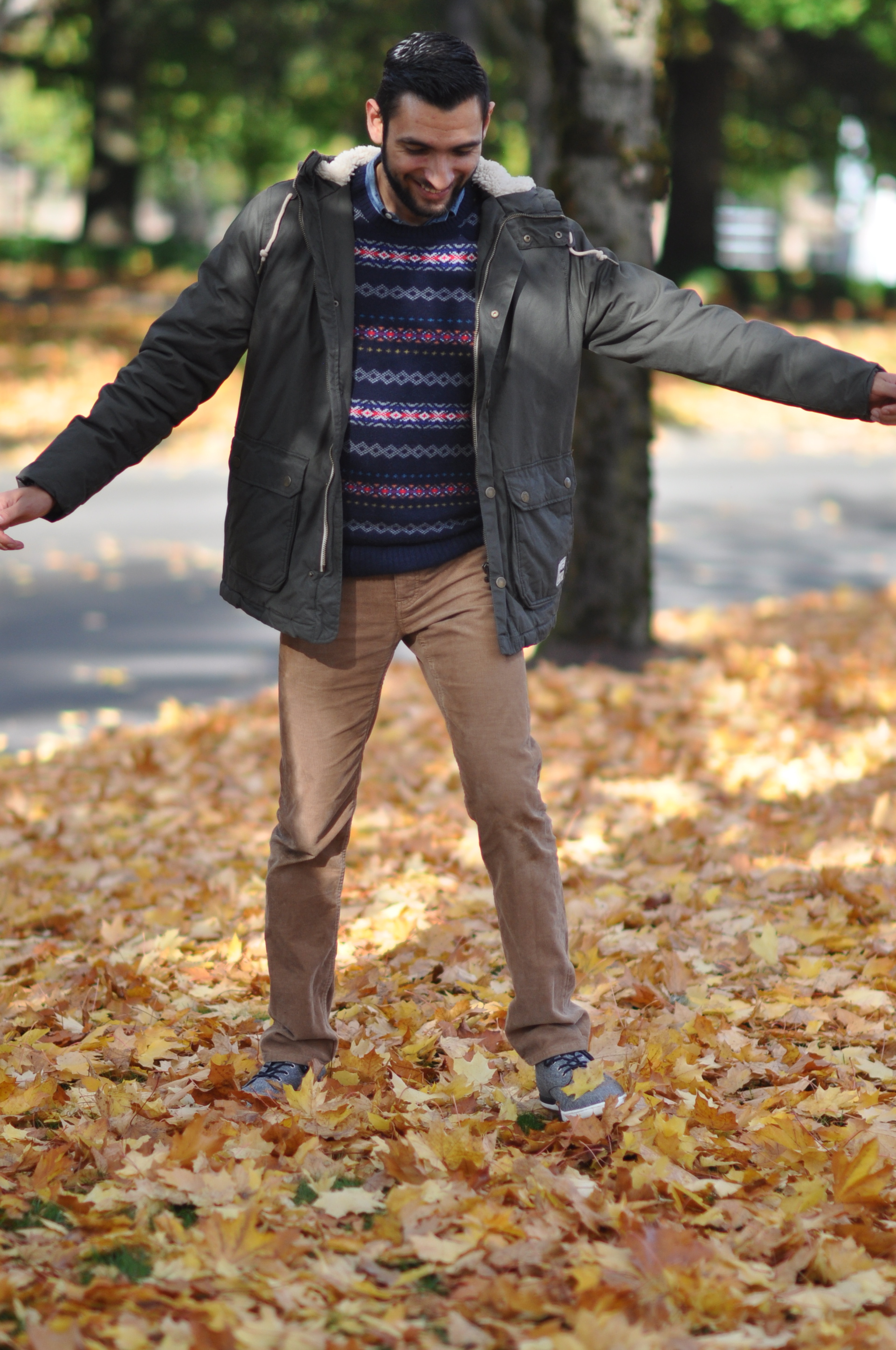 Para esta reunión en particular, decidí ponerme un suéter de lana, ya que podemos calificar este clima como clima de suéteres ya, junto con pantalones de pana. Este suéter es de American Eagle, pero estoy seguro de que pueden encontrar muchos similares en cualquier tienda (ya sea J. Crew, H&M, Club Monaco, la que nombren) y va a funcionar perfectamente esta temporada. Mis pantalones de pana son de Club Monaco y son extremadamente cálidos y muy cómodos. La pana es una tela bastante versátil, y es algo que no puede faltar en sus guardarropas. La chamarra color verde olivo es una de mis compras favoritas de Black Friday el año pasado y es de H&M. Este color cada vez me gusta más y se ha vuelto ya de mis predilectos esta temporada de otoño/invierno, en la cual viene mucho. Por último, completé el look con mis zapatos de Creative Recreation, la cual es una compañía de Los Ángeles que ha tomado un estilo bastante interesante en zapatos casuales para hombre, así que denles una checada si no lo han hecho ya. ¿Qué opinan? ¿Es esta combinación un hit o un miss? Muchas gracias Kim por tomar estas fotos, probablemente nos vimos muy graciosos al estar arrojando esas hojas sobre nosotros, pero me encantó el resultado. ¡Amo estas fotos!