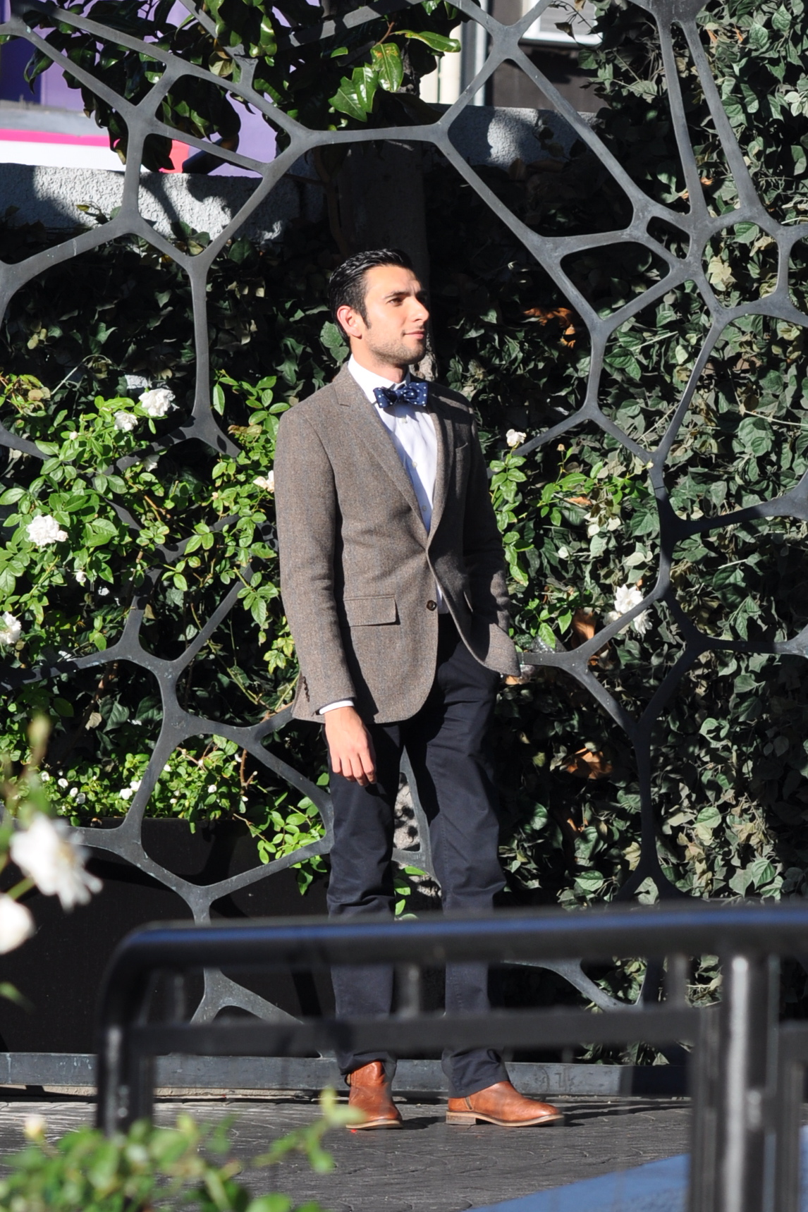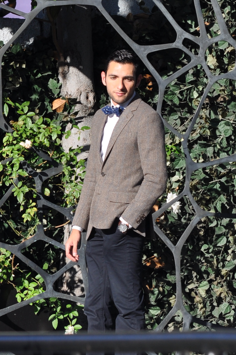 Sport coat Club Monaco (Similar also by Club Monaco), White dress shirt Zara, Five-pocket trousers Zara, Bow tie Penguin (Similar on Etsy), Suspenders H&M, Shoes Aldo, Watch Michael Kors