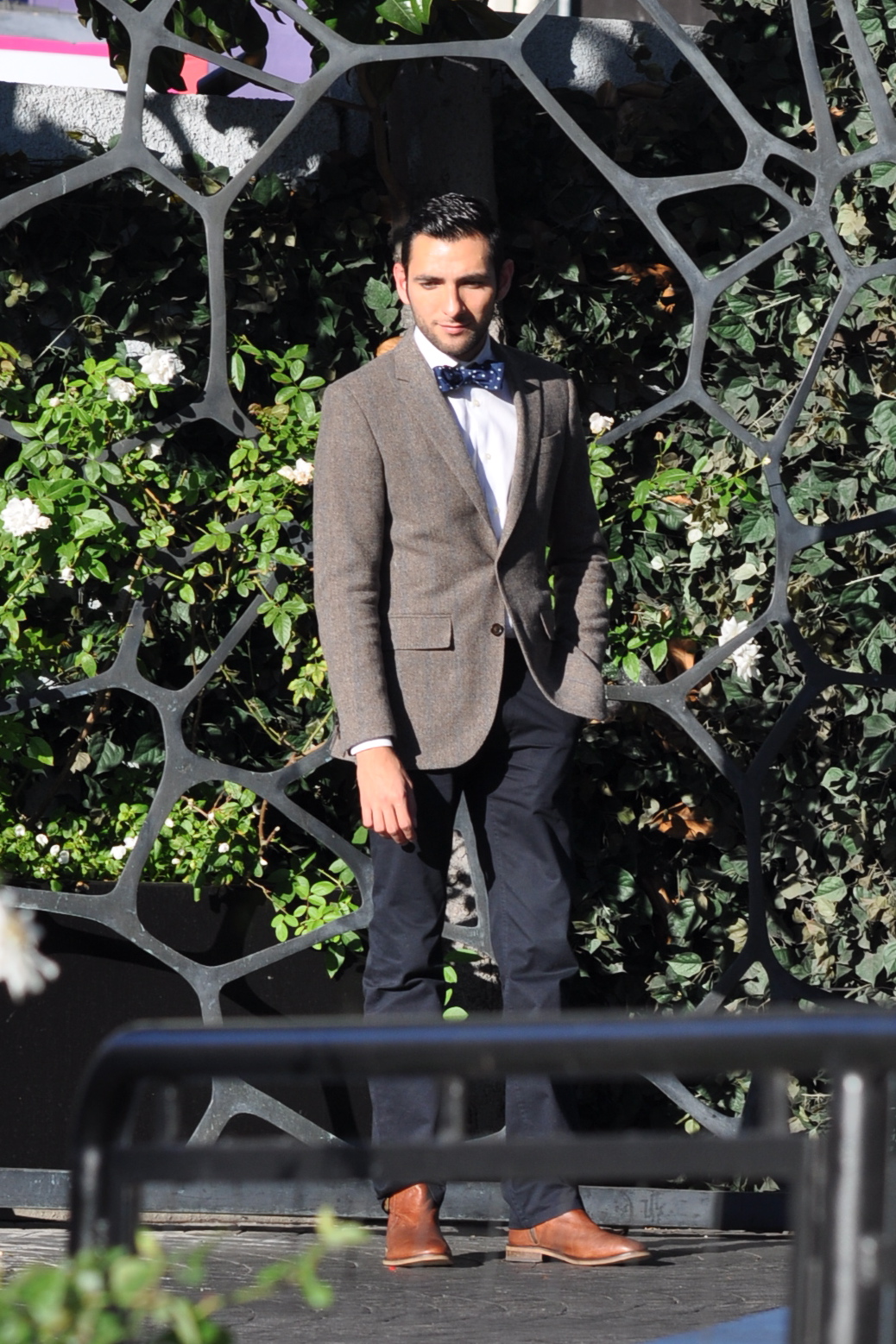 La ceremonia tuvo lugar en The London Hotel en West Hollywood, California, el cual esta ubicado en una zona muy lujosa entre los bulevares de Sunset y Santa Monica. Aceptémoslo, de todas las ciudades en Estados Unidos, LA es probablemente una de las más glamurosas y bien vestidas que puedes encontrar, así que me encontré en un pequeño dilema al tratar de decidir qué vestir. Ya había utilizado un traje tres veces al hilo, entonces el traje no era una opción. Sin embargo, aún con la ropa formal casual hay muchas alternativas entre las cuales elegir y para mí, ninguna sonaba mejor que la otra (por ejemplo, mezclar el saco del traje con unos pantalones casuales, o no llevar saco en absoluto, o vestir un moño o una corbata, o ninguno de los dos, o solamente usar un par de pantalones normales con una camisa de vestir). Otro factor que realmente me ayudó en comparación con mis experiencias pasadas era el clima, el cual no iba a estar ni muy caliente ni muy frío, ni tampoco muy húmedo o muy seco, como sucedió en Monterrey. Era una boda al aire libre, entonces sabía que en algún momento iba a oscurecer y eventualmente refrescar, pero no había lluvia en el pronóstico así que sabía que podía utilizar ropa cómoda, de entre tiempos sin ningún problema.