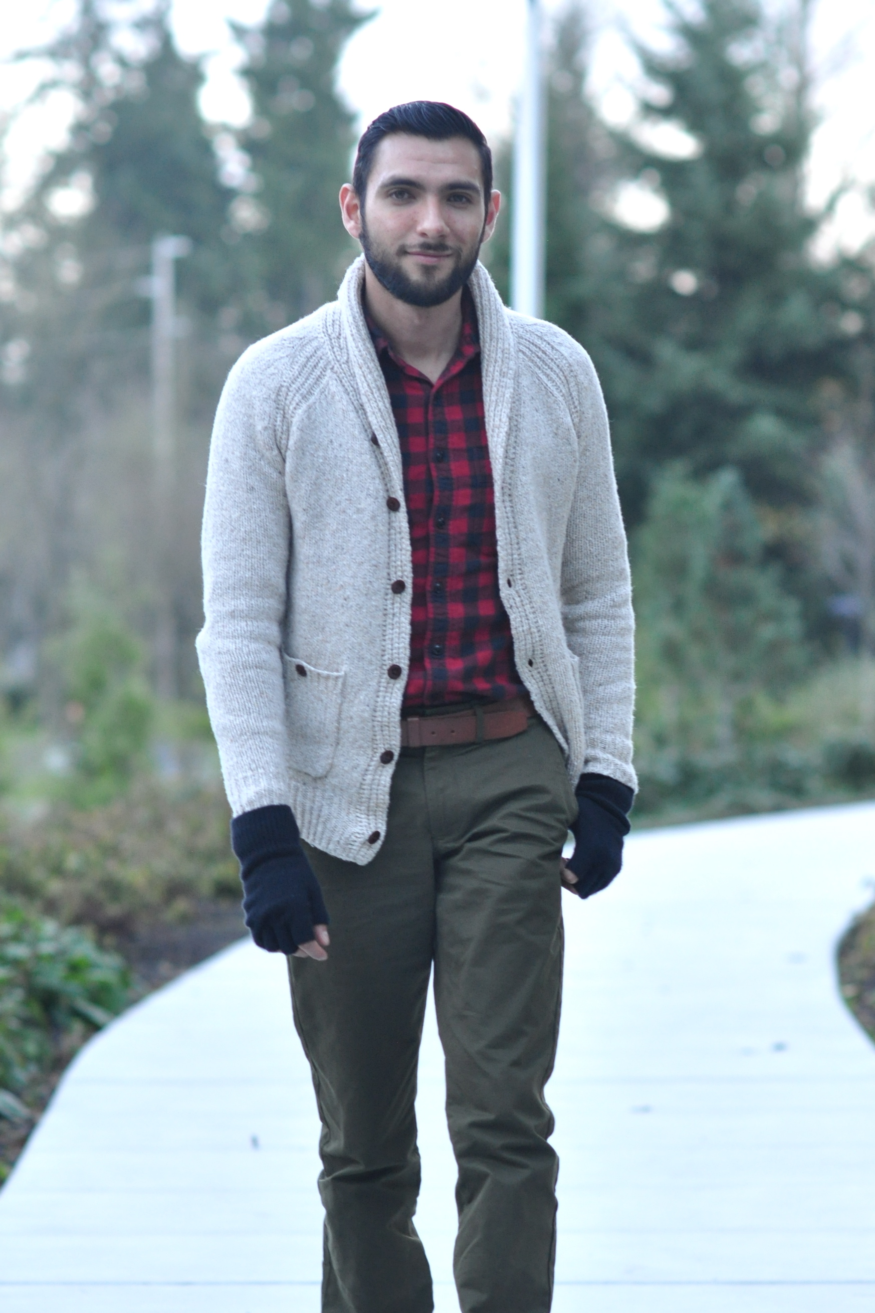 Volviendo al outfit del día de hoy, quisiera hablar un poco acerca de la ropa que me encuentro vistiendo aquí. Estas son algunas de mis compras de Black Friday (lo sé, vengo hablando por un tiempo de estas y aún no aparecían en el blog). Lo que realmente me gusta de este atuendo es lo representativo que es del estilo que caracteriza al Pacifíco Noroeste, uno que con el tiempo viviendo aquí he aprendido a apreciar y a querer mucho. Tienen su camisa icónica de cuadritos junto con un cárdigan, además de unos pantalones chinos color verde olivo que se han vuelto mis predilectos después de encontrarlos en J. Crew con un 40% de descuento. Algo que no puede faltar son las botas de lluvia, o de pato por su forma, que también conseguí en J. Crew y por último los guantes sin dedos para cubrirme del frío del Noroeste. ¿Qué opinan acerca del estilo Pacífico Noroeste? ¿Les gusta? Quisiera agradecerle a mi mejor amiga blogger Kim por tomar estas fotos el otro día. ¡Estoy muy emocionado por todos los posts en conjunto que haremos este año!