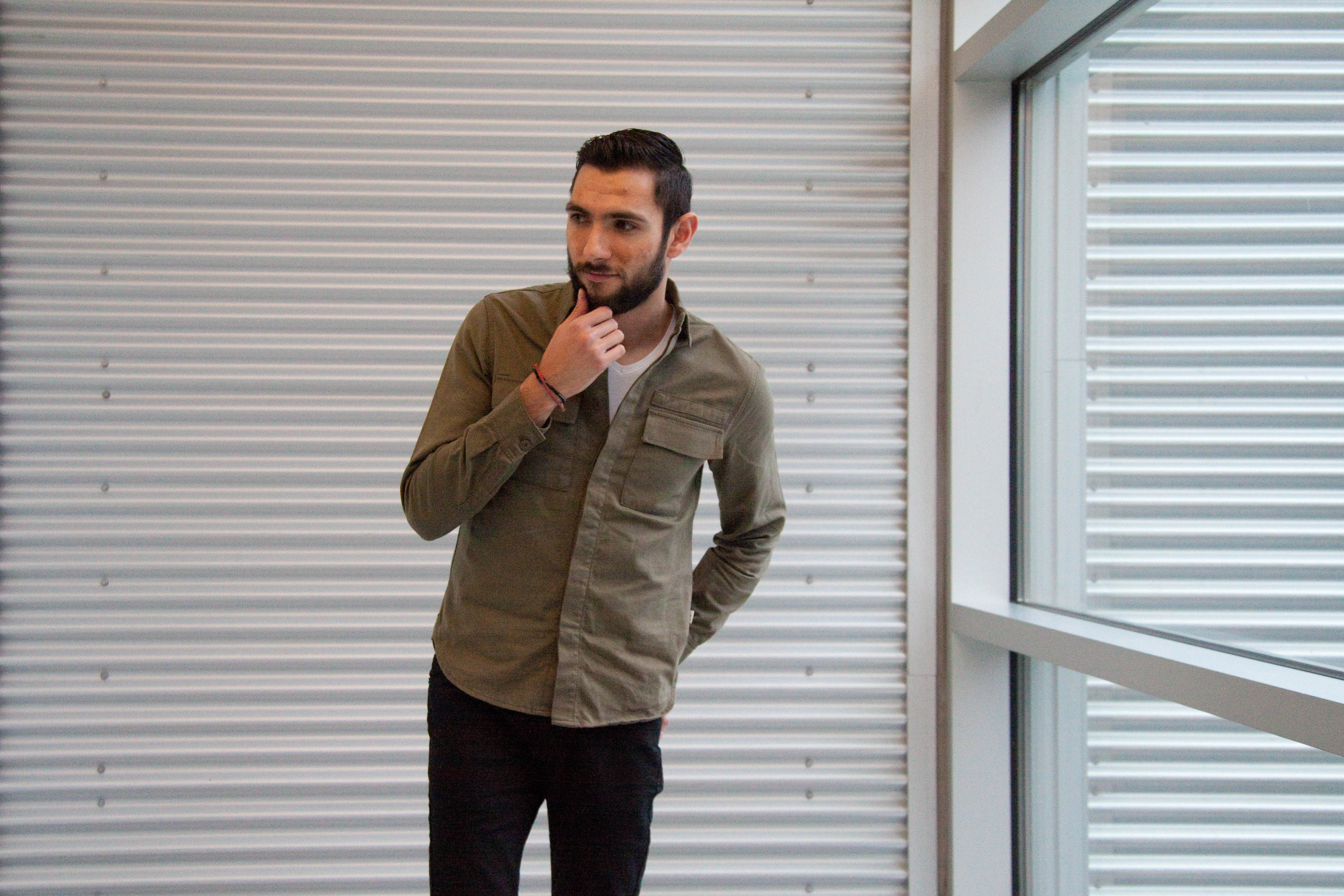 En esta ocasión, decidí vestir mi camisa color verde olivo de Topman que compré hace algunas semanas durante mi viaje a Vancouver. Este color sigue siendo uno de mis favoritos por su simplicidad y sencillez que transmite, y por la facilidad de combinarlo con otros colores. Me puse esta camisa con mi par de pantalones de mezclilla skinny negros también de Topman y mi par de botas de invierno Lacrosse que compré en J. Crew. Realmente me gusta que este look no es nada complicado en absoluto y transmite esa vibra sencilla muy representativa del estilo del Pacífico Noroeste. ¿Qué opinan al respecto? Una vez más quisiera agradecerle a mi amiga Kim por tomar estas fotografías en sus escaleras especiales perfectamente bien iluminadas.