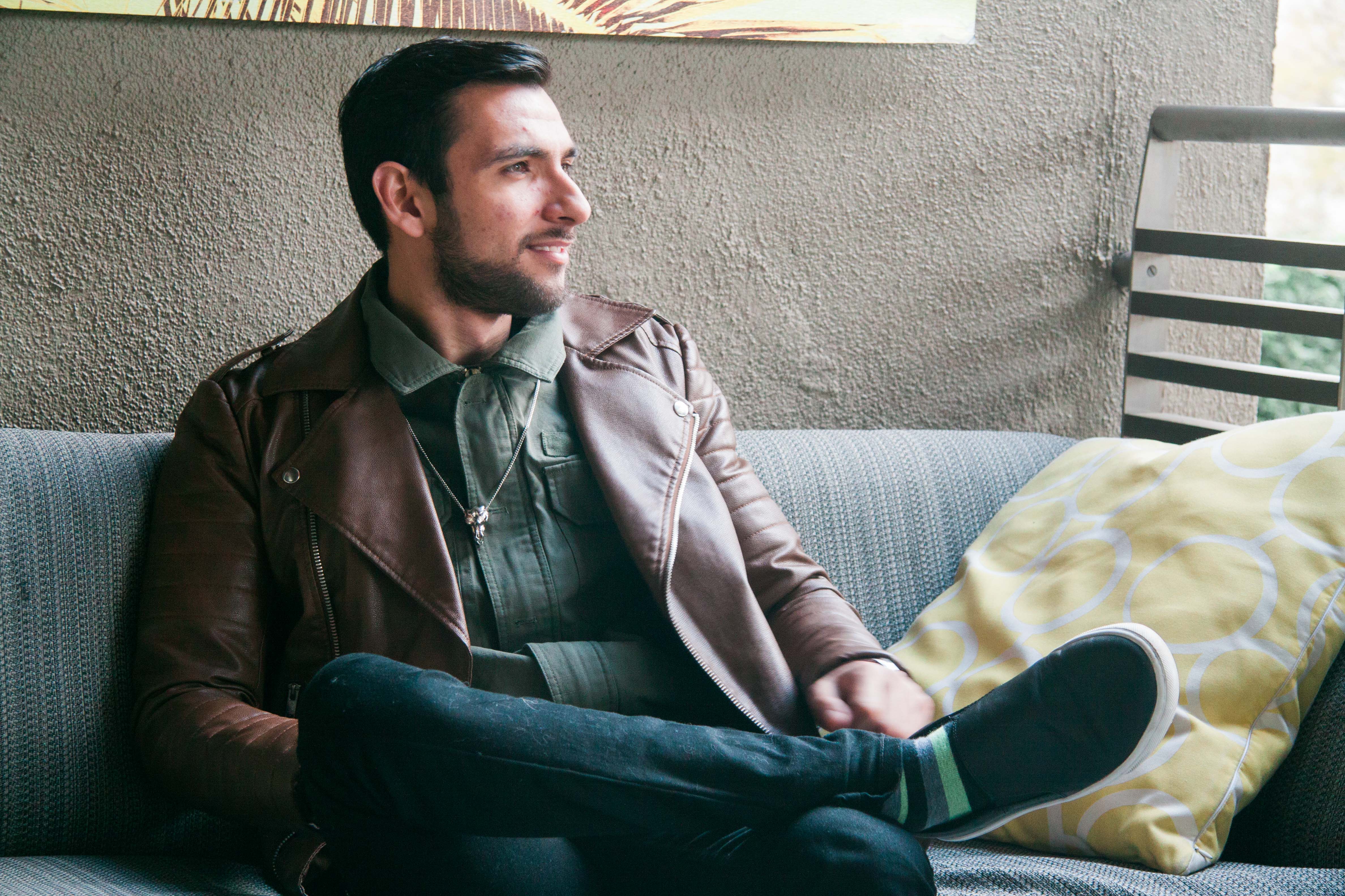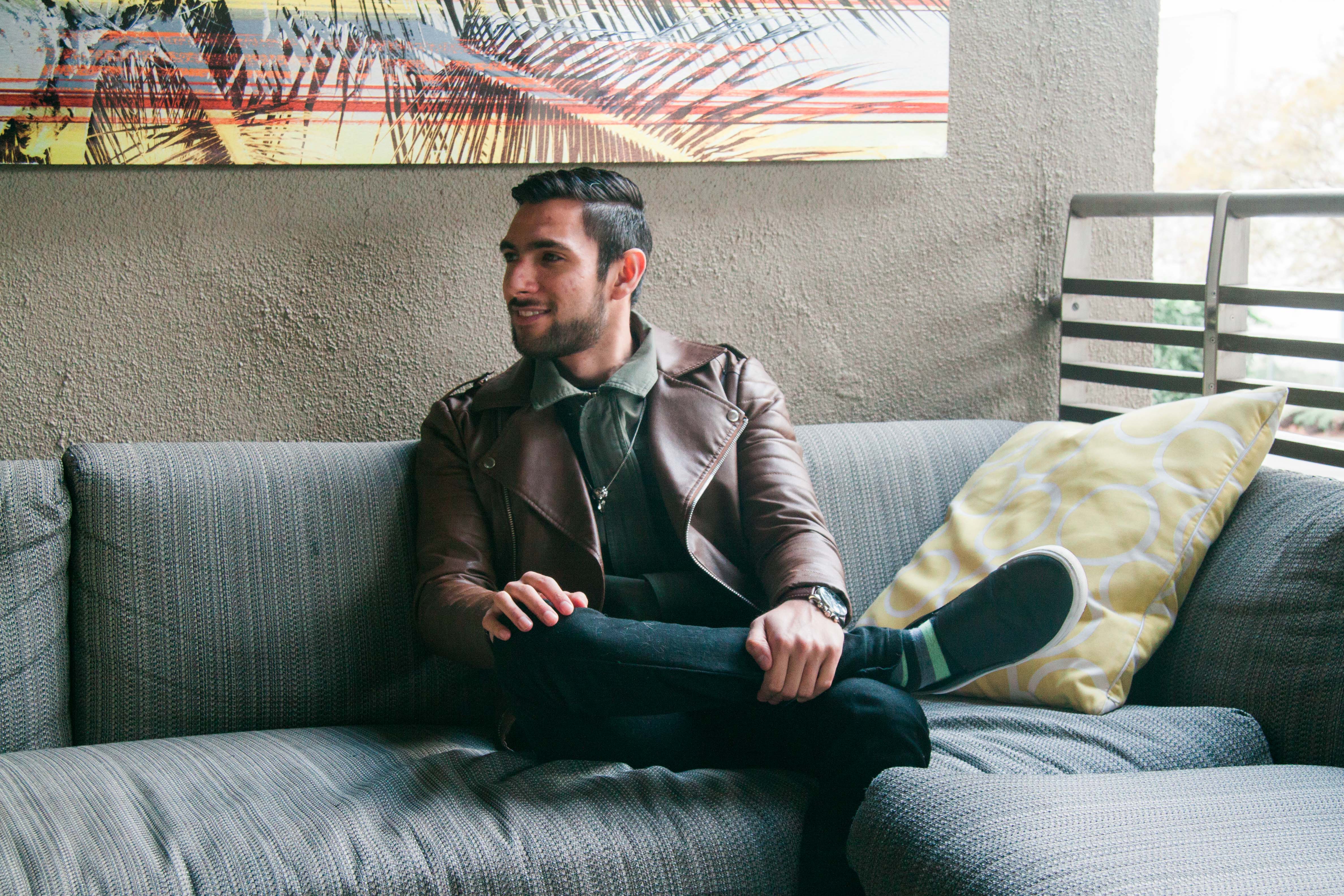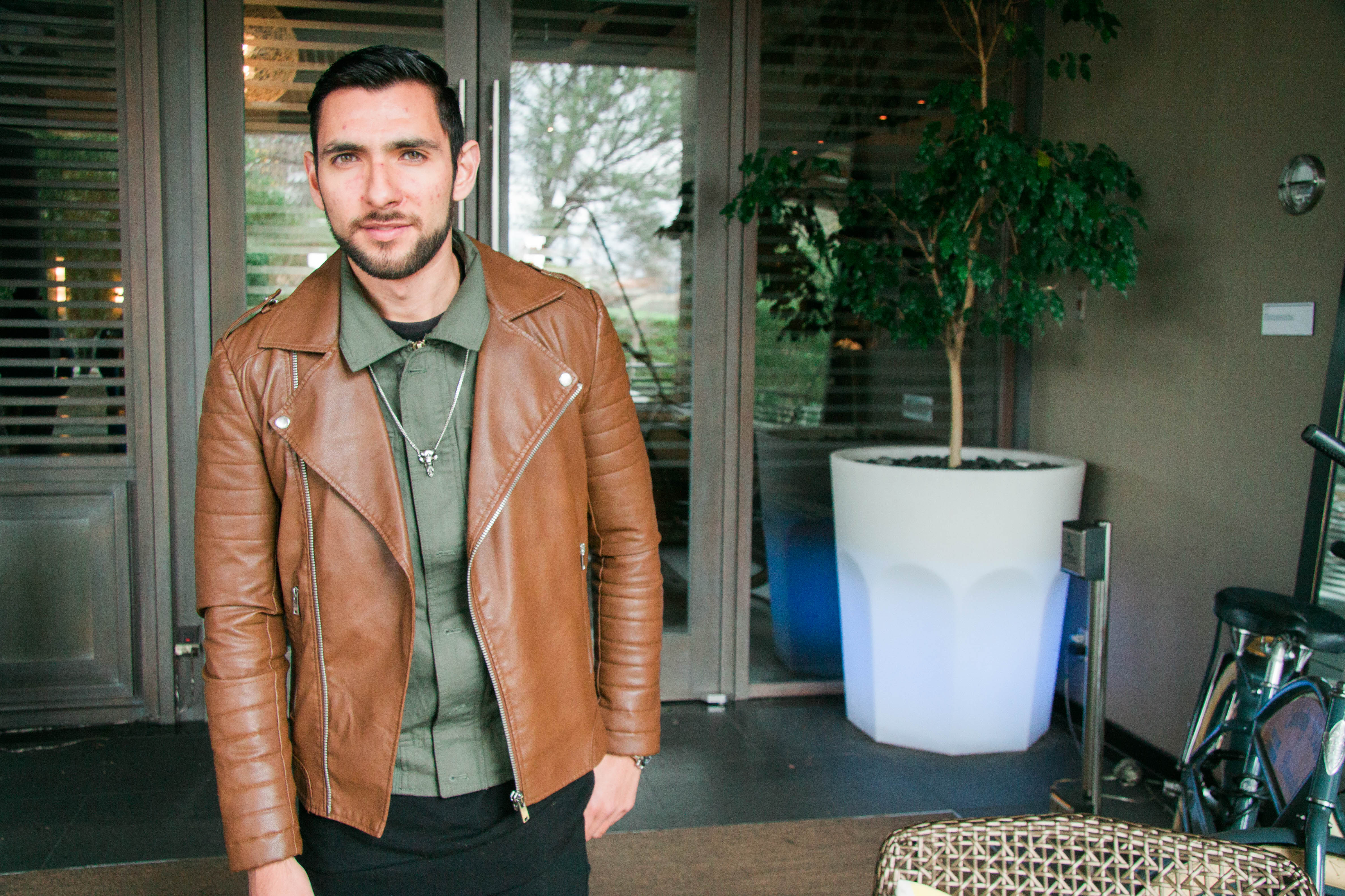 For my flight to Los Angeles, I decided to wear a brown motorcycle jacket which I got during the Black Friday sales in 21 Men. I love how trendy it looks and how all the details and zippers come together to actually give the feeling of real leather (which it totally isn’t guys, faux leather FTW). Underneath the jacket I layered a military green shirt with an oversized sweatshirt below, because who said that the shirt should go under the sweatshirt and not the other way around? I paired these items with my black skinny jeans from Topman and finally wore a skull necklace from H&M to give it a nice, à la Alexander McQueen touch. And for the shoes I went with leather as well since it was raining that day. What do you think of this outfit? Do you like how I played with lengths and details here? Of course I want to thank Kim for the photos, they’re super sharp and cool!