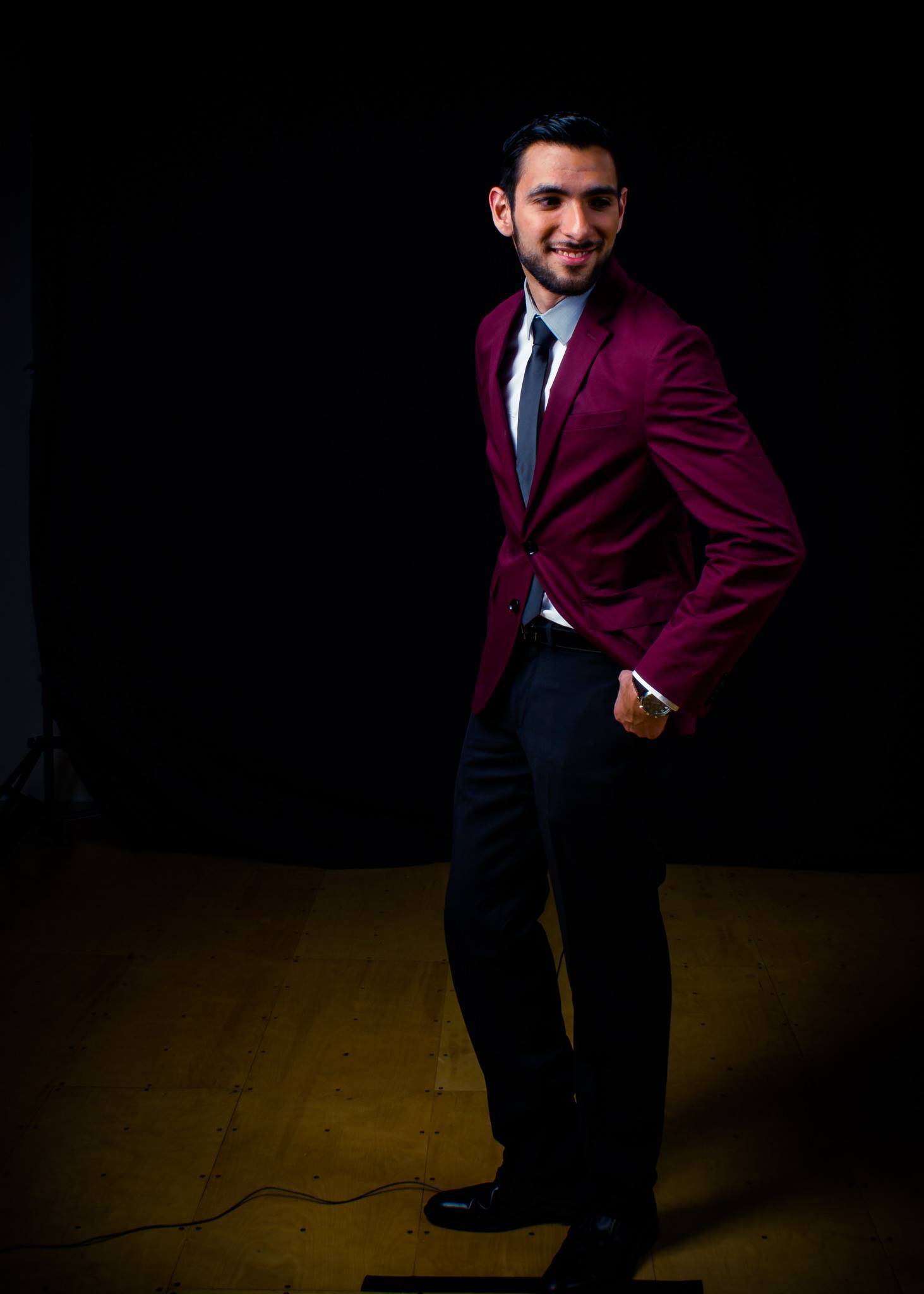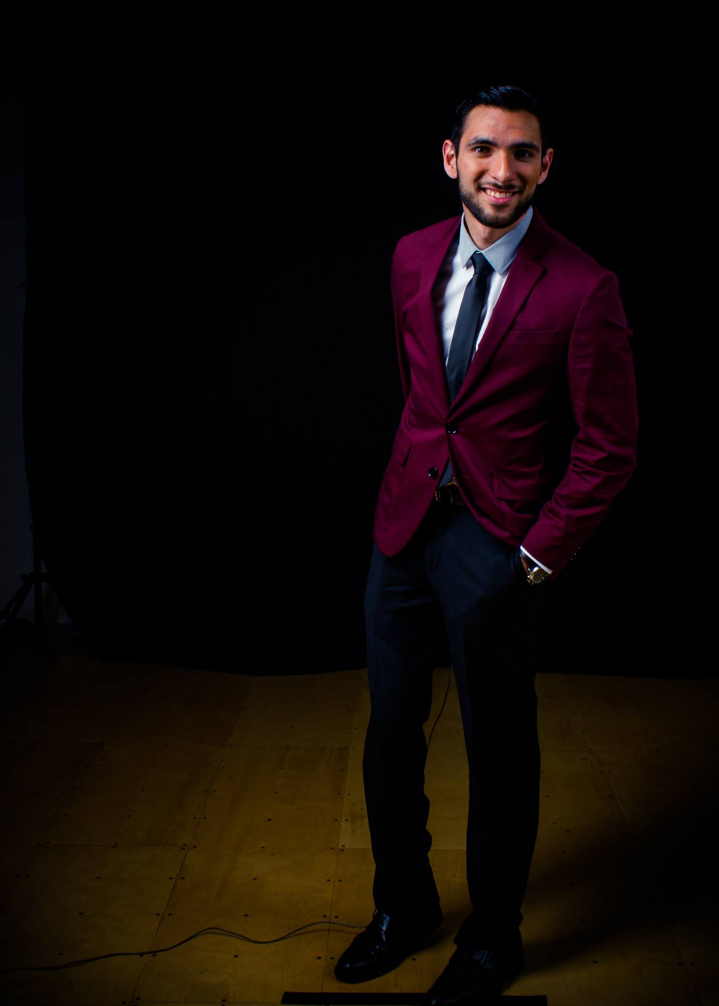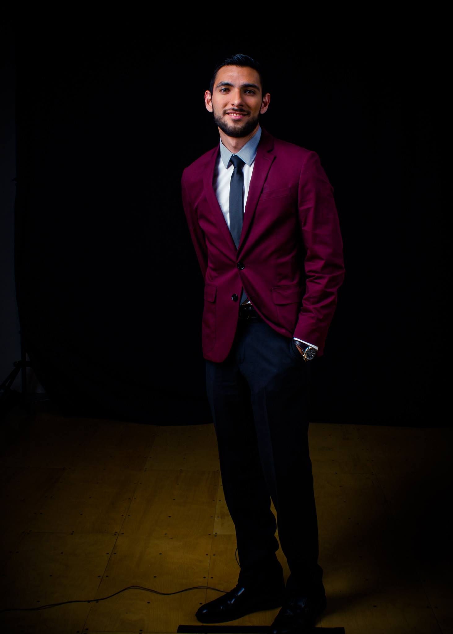 Para aquellos que se estén preguntando qué decidí ponerme para el evento, opté por un look de alfombra roja proveído directamente por EXPRESS que consiste en un saco color vino con un pantalón de traje en color negro. También me puse una camisa bicolor debajo, con un ligero tono gris en el cuello de la camisa, y una corbata color gris más oscuro. Complementé este look con un par de zapatos negros y me puse mi reloj de piel Michael Kors y mi cinto Salvatore Ferragamo para los accesorios. ¿Qué opinan al respecto? Había un photoshoot oficial en la entrada del evento donde me tomaron estas fotos y me han encantado, ¡parecen fotos de estudio!
