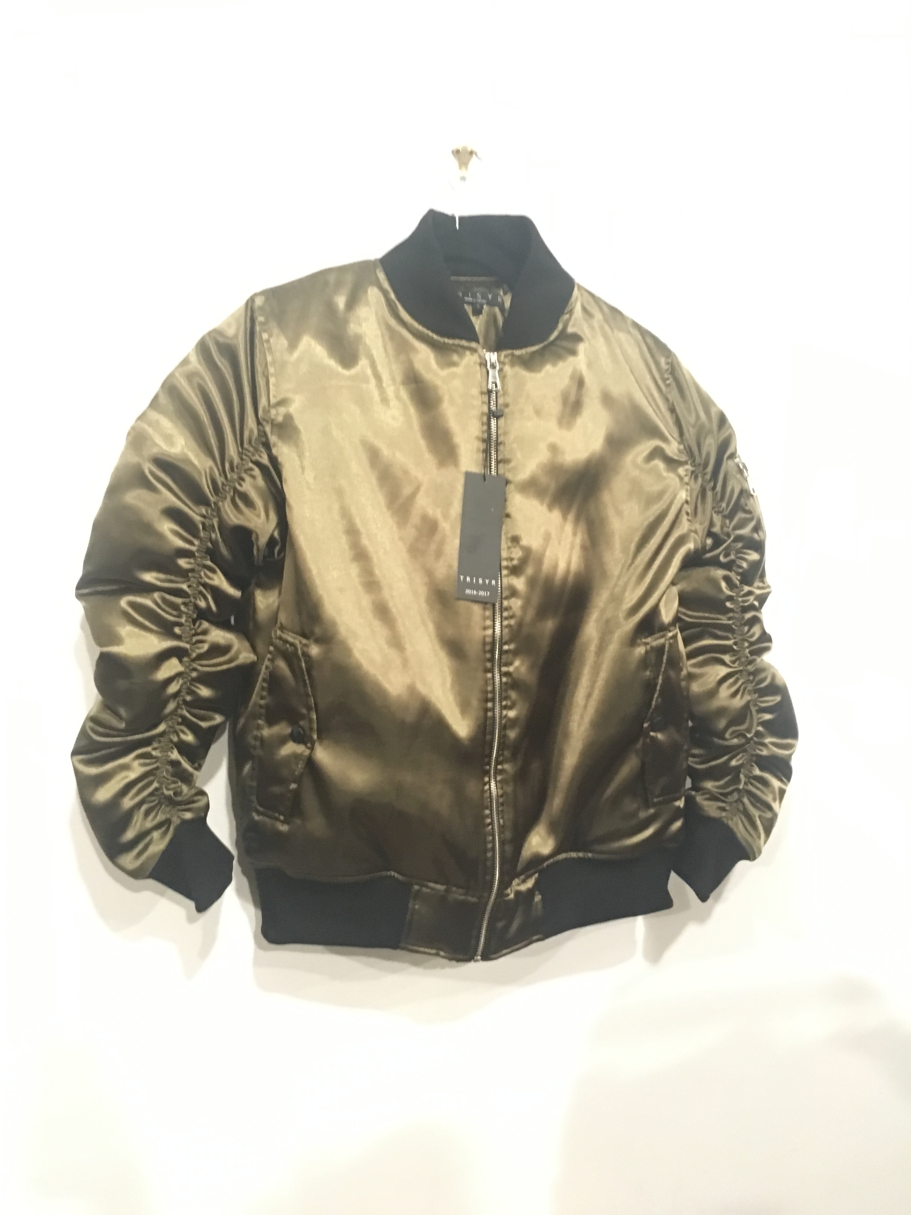 My favorite piece of the show was this shiny, green bomber jacket by TRISYR:
