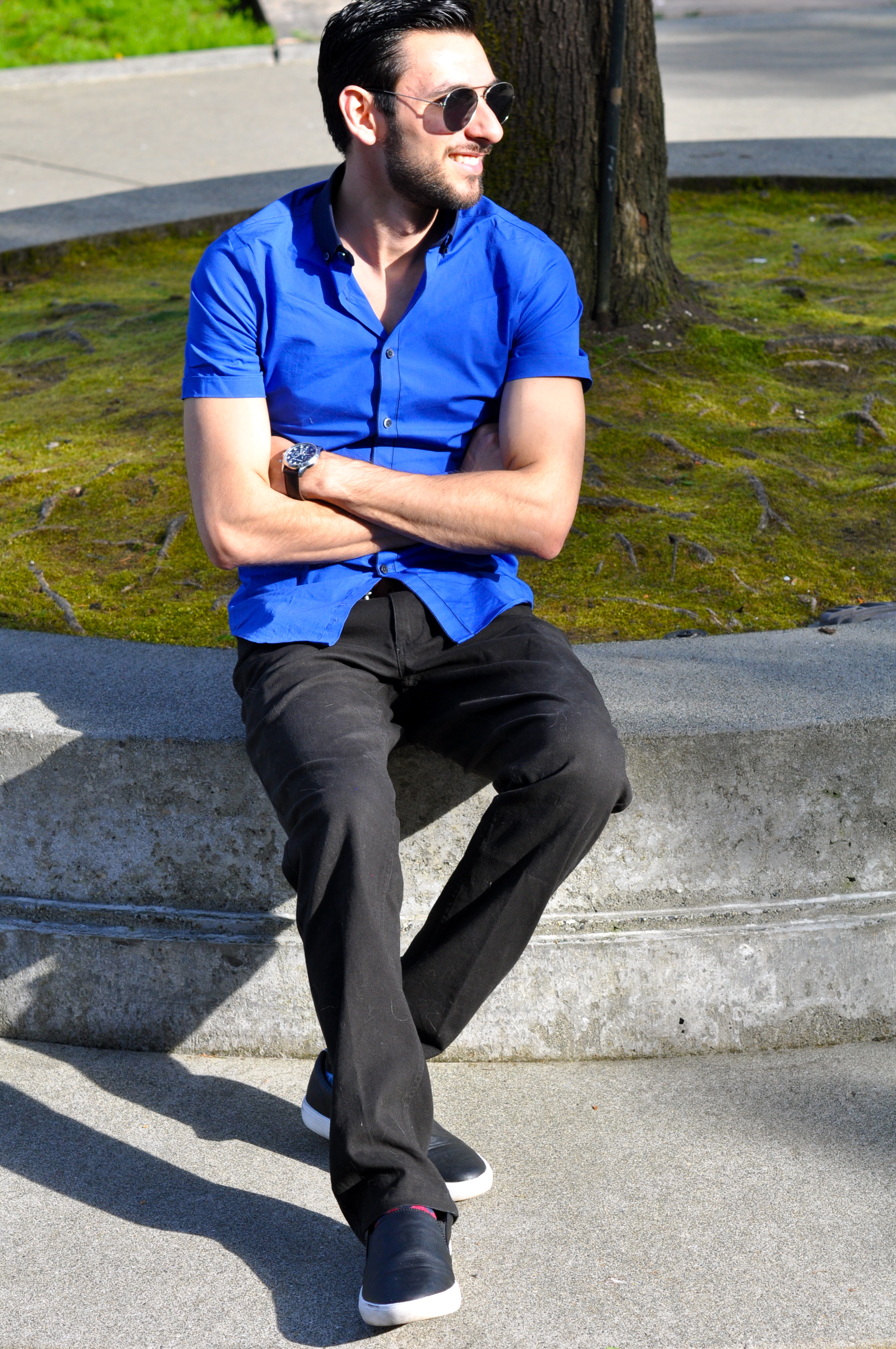 I got the chance to team with EXPRESS this time to show you their latest spring and summer essentials from the 1MX collection. You can get the crisp comfort and the sharp style of these really fresh new pieces, which now come in short sleeves for all-temperature wearing occasions. They also come in a wide variety of solid colors, with contrasting collars like the one I wore for this post. Fitted to perfection, the sleeve 1MX shirts are must-haves for your spring and summer wardrobes. You can pair them as I did, with a dark toned pant or black jeans and a blazer if it’s a bit cold outside to get that perfect business casual look, or you can go for a more relaxed style with cuffed jeans. What I really liked about these shirts was the fit and style they have. They have a really nice cut, so they look well even when they are not tucked in your pants, and the contrast between the two colors gives it a very nice, fresh visual quality.