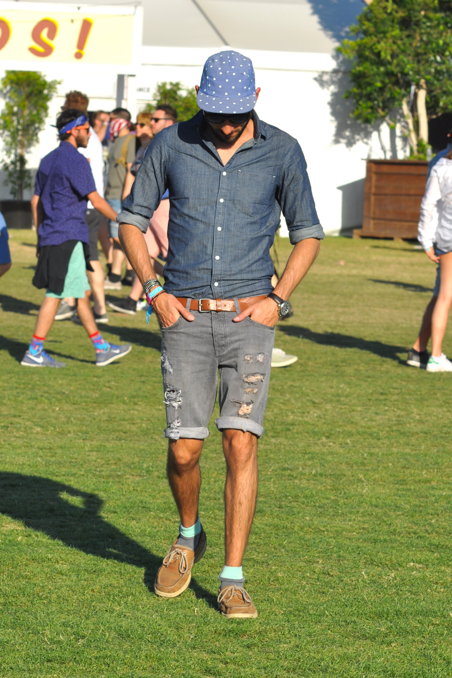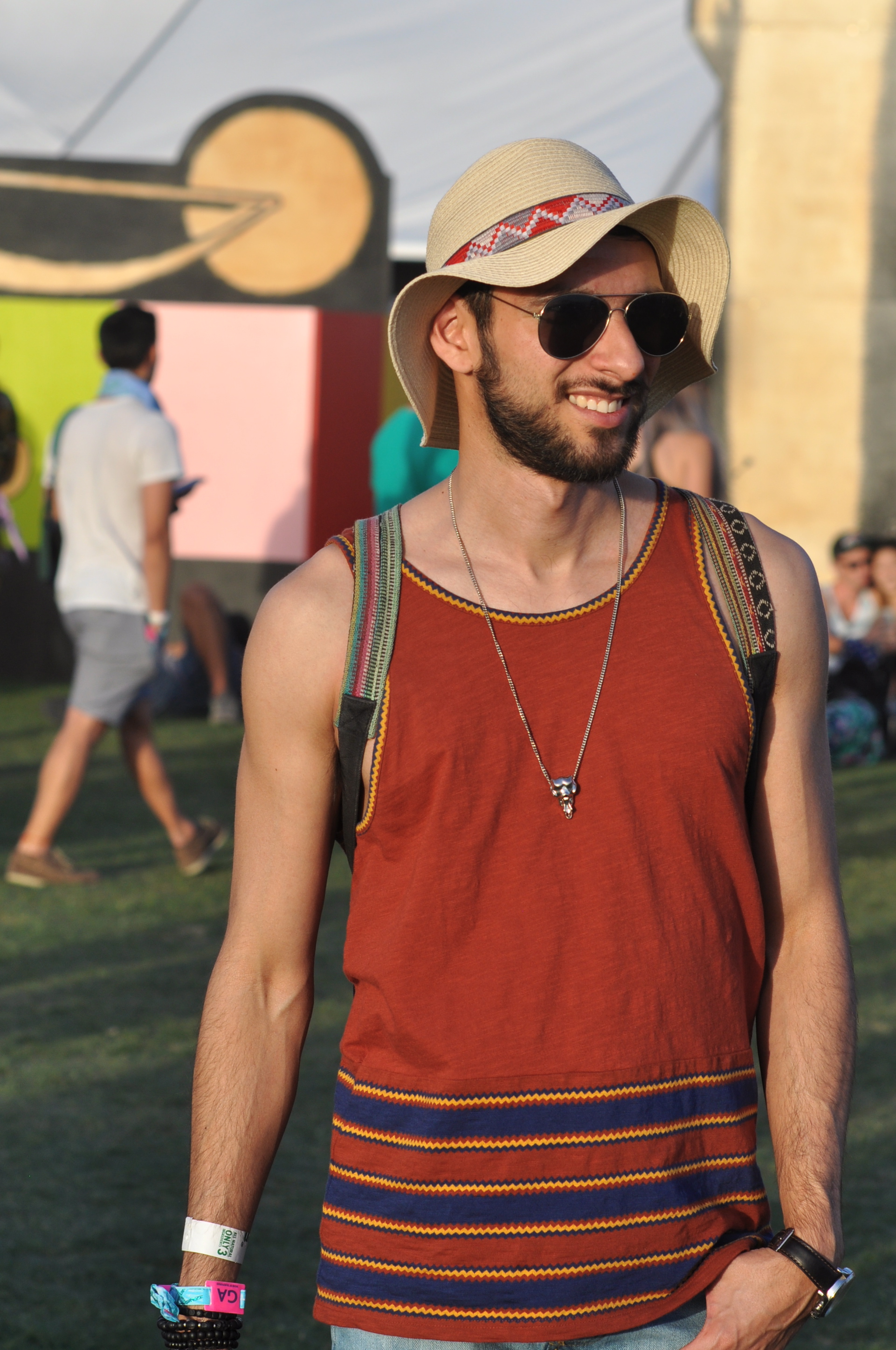 Este año, para el festival de arte y música de Coachella, decidí elegir tres temas principales para regir mis outfits del día a día: un estilo bohemio, la mezclilla y por supuesto, estampados. Para el día uno, me puse una camiseta sin manga tribal de 21 Men junto con unos shorts de mezclilla color azul claro de Topman. Hay algo en esta camiseta que me grita “bohemio” por todos lados, desde el ajuste de la ropa a los patrones y las capas que tiene en la bastilla. Para los accesorios, opté por mi par de botas para el desierto (atinadamente acuñado el nombre) de Clarks junto con un sombrero de paja. Para el día dos, cree un look de mezclilla sobre mezclilla, combinando una camisa de mezclilla oscura de J. Crew que obtuve en rebaja la temporada pasada con un par de shorts de mezclilla desgastados en color gris de Topman. Complementé este look con una gorra de puntitos ya que era un día muy caluroso y para los zapatos utilicé zapatos de bote de Sperry. Para el último día, me fui de lleno sobre los estampados vistiendo una camisa de estampado con unos shorts de estampado que inicialmente parecieran no combinar juntos, pero en un lugar como Coachella esto funciona a la perfección. Mis tenis de cuero y una pulsera con piedrería de Club Monaco terminarían el look de ese día. En general, mis looks eran diferentes, muy cómodos e involucraban algo de riesgo. ¿Sienten que estos riesgos dieron frutos? Quisiera agradecer a mis amigos Joe y Valeria por tomar la mayoría de estas fotografías (y a Joe también por compartir conmigo algunas de las fotos de su cámara ya que no cargué con la mía los tres días) .