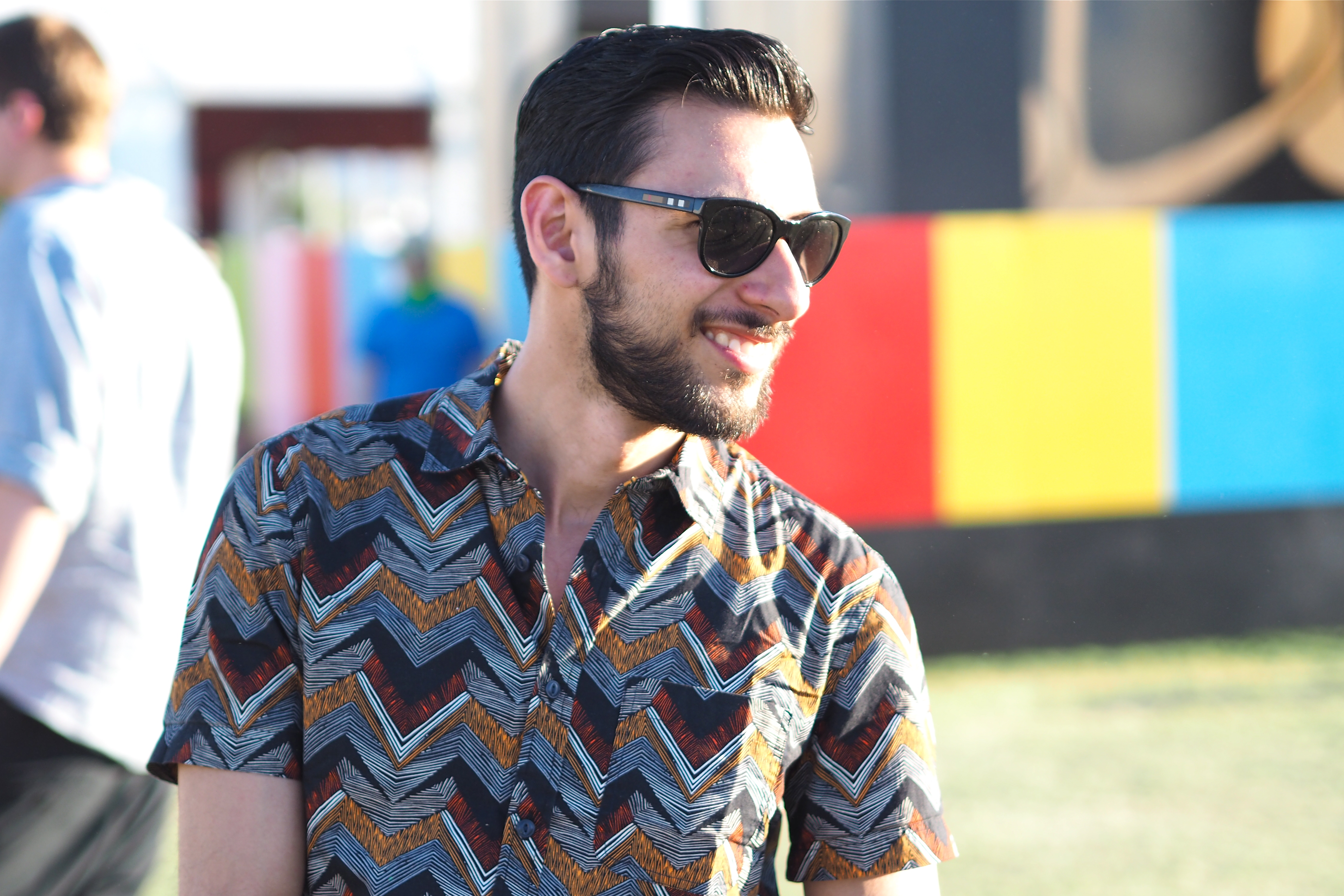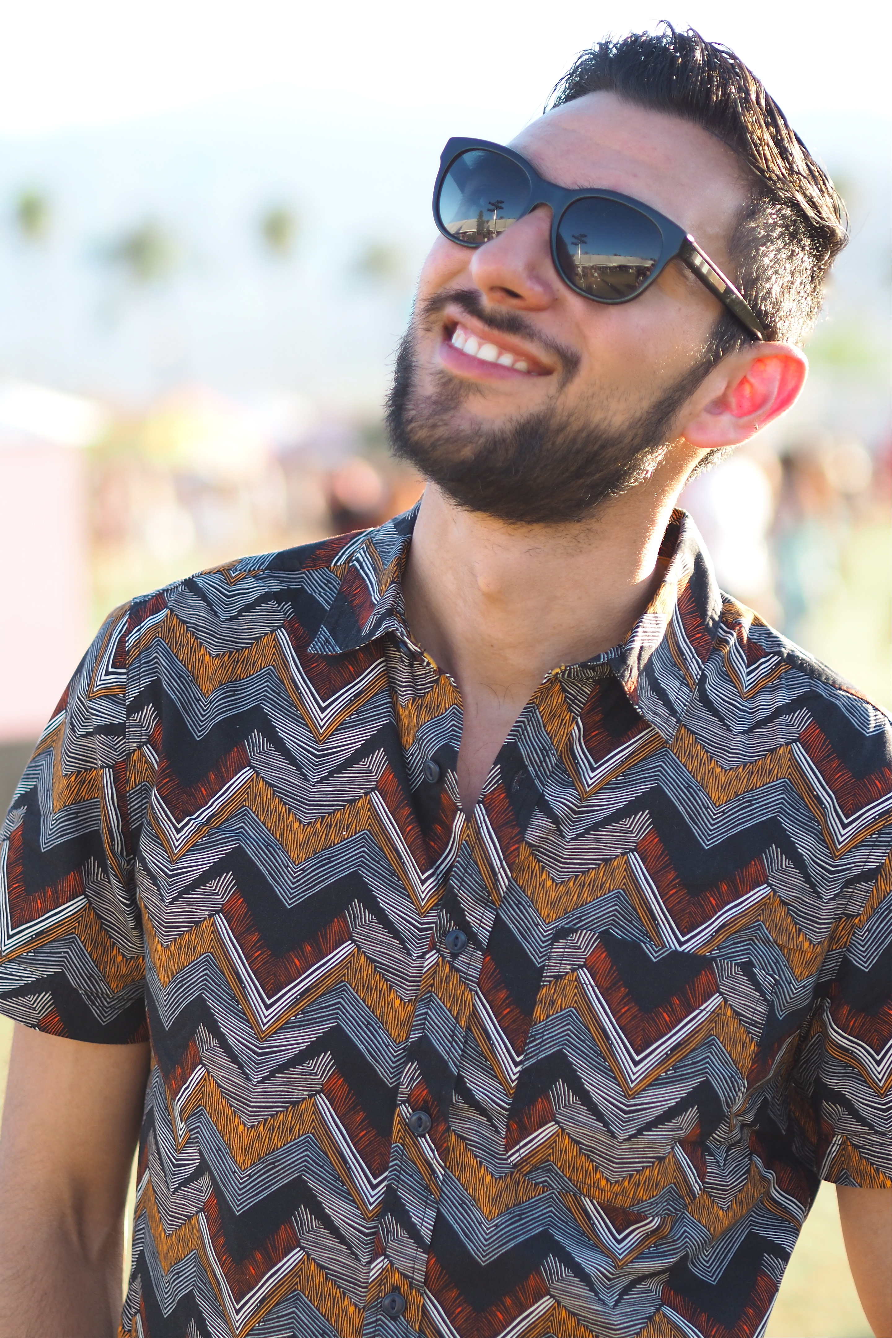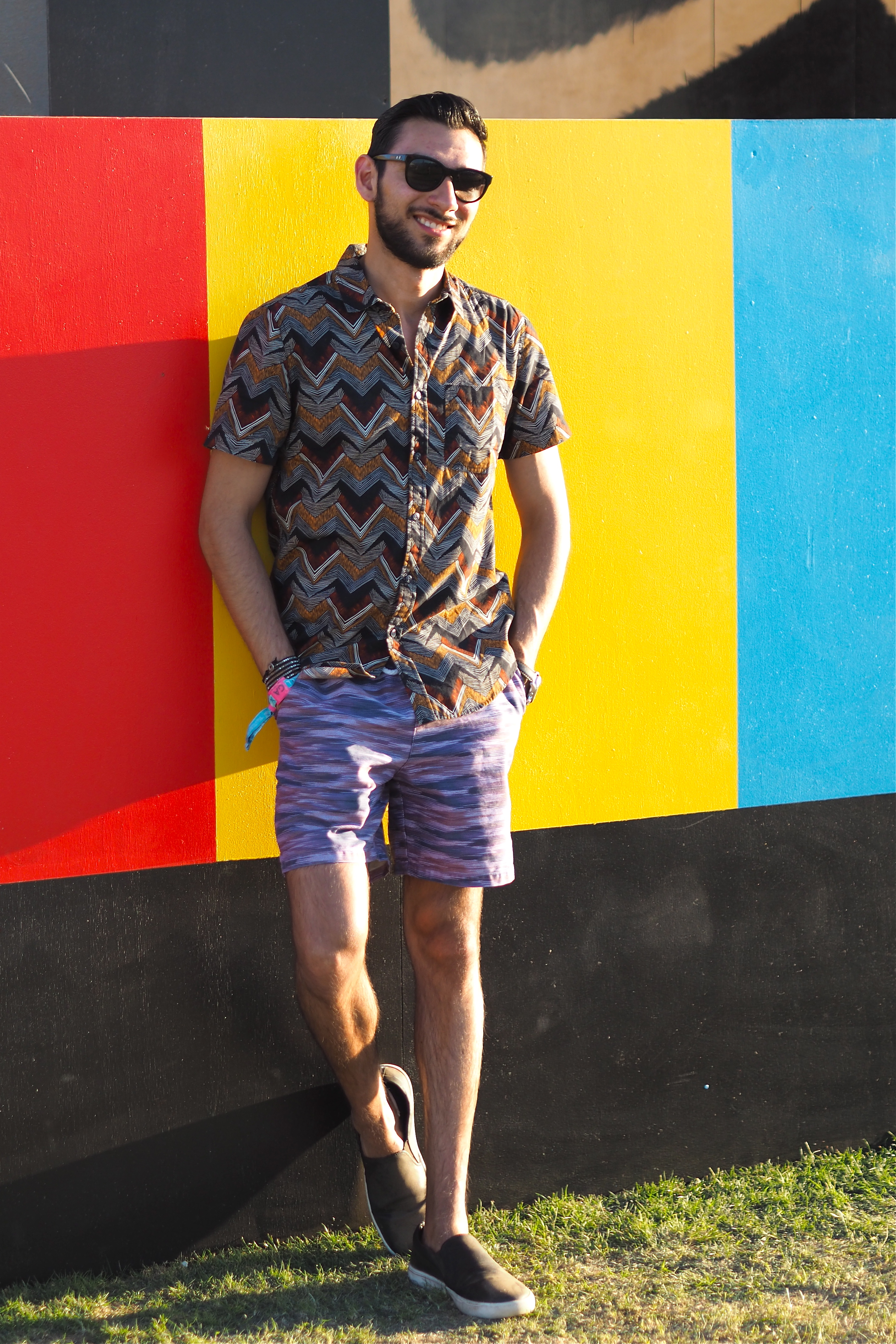 For this year at the Coachella Music and Arts Festival, I decided to choose three main themes for reigning my daily outfits: bohemian style, denim, and of course, prints. For day one, I decided to wear a tribal tank from 21 Men along with light blue jean shorts from Topman. There’s something about this shirt that just screams bohemian to me, from the fit to the colors and also the nice patterns and layering on the hems. I accessorized this look with my pair of appropriately-named Desert boots by Clarks and a straw hat. For day two, I went for a denim on denim look, which combines a dark denim shirt from J. Crew that I got on sale last season with a pair of gray, worn-out jean shorts also by Topman. I complemented this look with a polka-dot snapback since it was a very warm day, and for the shoes I went for Sperry boat shoes. On the last day, I went all-in with prints with a print shirt and print shorts that seem to don’t match at all, but actually work quite well for a place like Coachella. Some leather sneakers and an embroidered bracelet from Club Monaco finish the styling for that day. All and all, my looks were different, comfortable, and I felt risky. Do you think some of these risks paid off? I want to thank my friends Joe and Valeria for taking most of these photos (and Joe also for sharing some of his camera photos with me since I didn’t carry with mine around the three days).