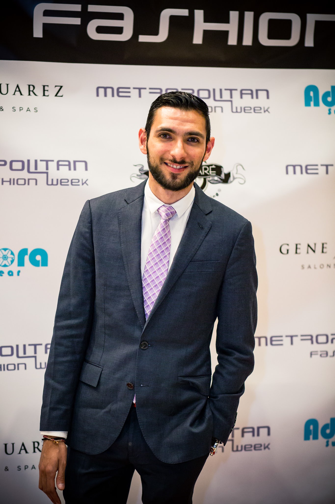 The next two designers to present their work were Olena Dat’s Miau by Clara Rotescu and Ema Savajh, and Claire’s Collection. These two acts consisted mainly of evening gowns, some of which were to die for. My favorite two were a sheer white maxi with an asymmetrical shoulder and pink details on the skirt, along with a beautiful embroidered red halter with pleats. The light hit in just the right places with this last piece, and it brought a cheering ovation from the crowd. Our next act was a second presentation by Suit Supply for menswear, however, this time it was formal suits and tuxedos making an appearance on main stage. I must say that these suits were stunning and my favorite was an all-white ensamble with a black bow tie, bringing back that 50s classic look of Hollywood stars. Last but not least, was a hand painted Marilyn Monroe canvas gown by Anahit Etemadi and fashion designer Julie Danforth. This masterpiece is the perfect mix of fashion and art in a very original way, and the amount of detail and thought put into it is exceptional. This was probably my favorite piece of the whole runway show, and the model walked gracefully and brought everyone to our feet in this gown.