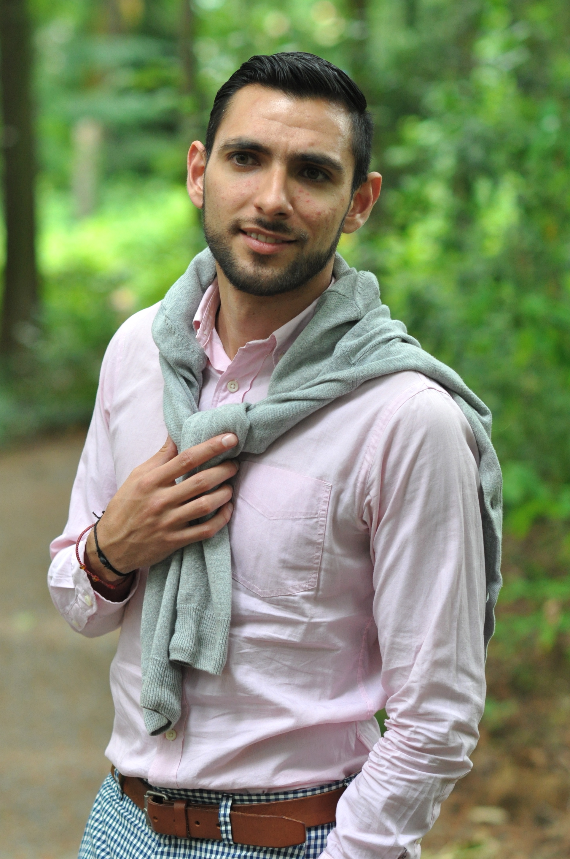 Para esta entrada, he decidido vestir mis bermudas de cuadritos de J. Crew junto con esta camisa color rosa claro, muy ligera de Club Monaco. Estas dos tiendas son mis favoritas para ir a comprar ropa estilo preppy, y van muy bien de la mano. Para el suéter, opté por usar un cárdigan de botones color gris claro de H&M, el cual puede usarse como un suéter normal o simplemente amarrarlo al cuello si empieza a sentirse algo de calor. Por supuesto, no podían faltar mis zapatos de lanchero, en este caso de Sperry Topsider, que estaré utilizando durante todo el verano sin parar. Son realmente cómodos para caminar en ellos y tienen este look antiguo en piel deslavada que me encanta. ¿Qué opinan sobre este look? ¿Les gusta el estilo de estudiante de fraternidad? Quisiera agradecerle a mi roommate Carlos por tomar estas fotos en los hermosos bosques de Redmond.