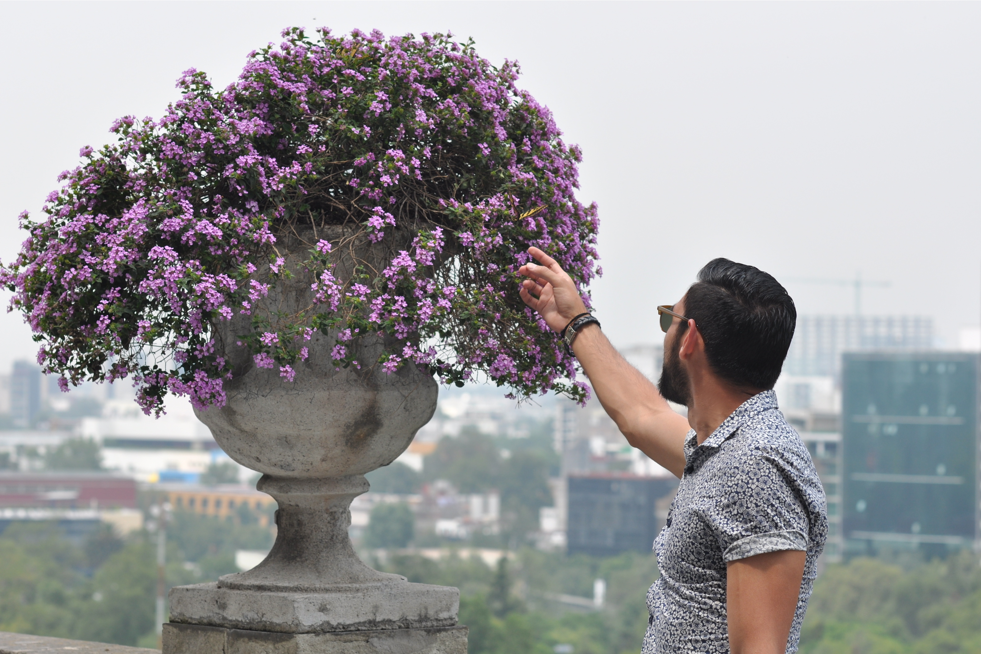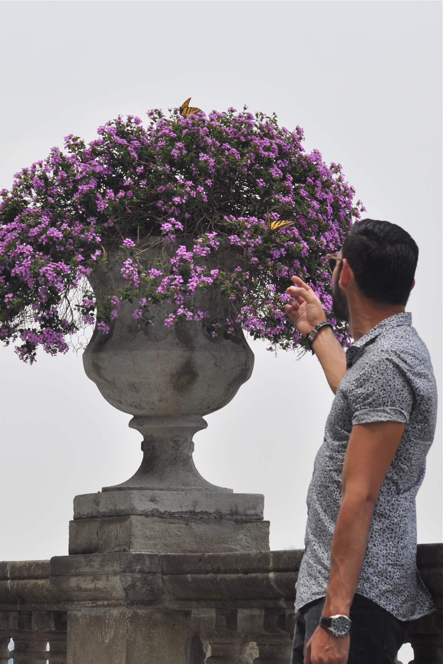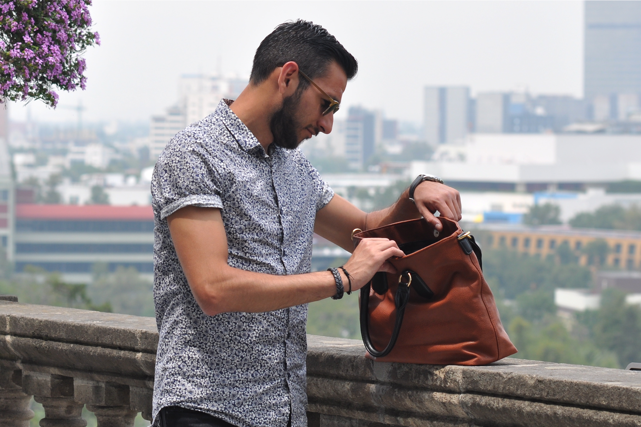 For my visit to Chapultepec Castle, I decided to wear a summer-appropriate, flowery outfit comprised of a blue and white floral shirt from Topman along with some dark denim shorts from H&M. I really liked how these colors contrasted with each other in a very similar way to that of the floor of the Chapultepec Castle’s balconies, which are adorned in checkered black and white marble. The flowers in the shirt looked great next to the huge flower arrangements with the beautiful city in the background. For the accessories, I opted in carrying a leather man purse, or tote as they call them now so popularly, from 21 Men, along with my Topman sunglasses. For the shoes, I went for white sneakers to top the look. Overall I felt this was a great outfit for such a luxurious, embellished building and the photos came out great, thank you Arturo for shooting them all on a lovely and cloudy summer afternoon.