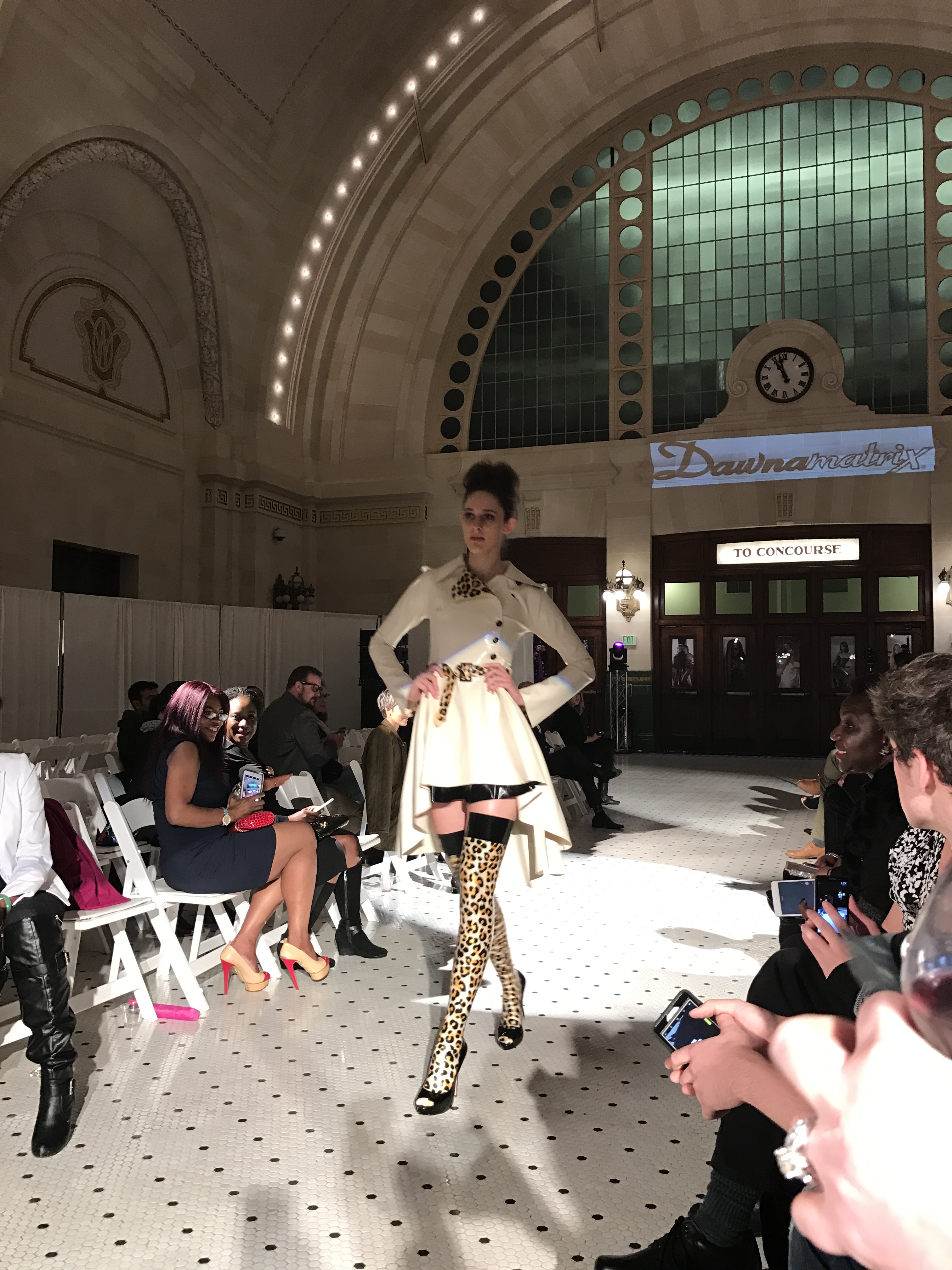 Next in line was the acclaimed designer Daniel Hernandez, winner of the New York Fashion Week Designer of the Year award, and fellow Latin American showcasing his homonymous collection for the first time in the city of Seattle. Daniel is well known for his sophisticated design, use of black leather, and metallic accessories, empowering the everyday woman who could be easily strutting the streets of New York or Paris in one of his eclectic designs. It was no surprise that this was my favorite collection of the night, and it culminated with no one else but CEO Teresa Springer donning one of Daniel’s creations, which she had been wearing during the whole evening. What a big, pleasant surprise! And finally we got to see Dawnamatrix, by Dawn Mostow, showcasing the most luxurious garments made out of latex you’ll ever see. Dawn is well known for having one of her designs shown by Kylie Jenner in one of her infamous photoshoots, and I was just told during this event that she’s now working with Beyoncé. I think that Beyoncé will be really satisfied in wearing one of these designs. Her white trench coat with leopard embellishments is a masterpiece that would definitely come handy in this Seattle weather anytime.