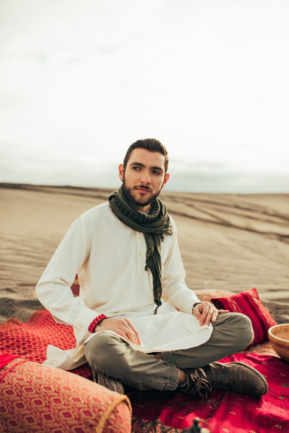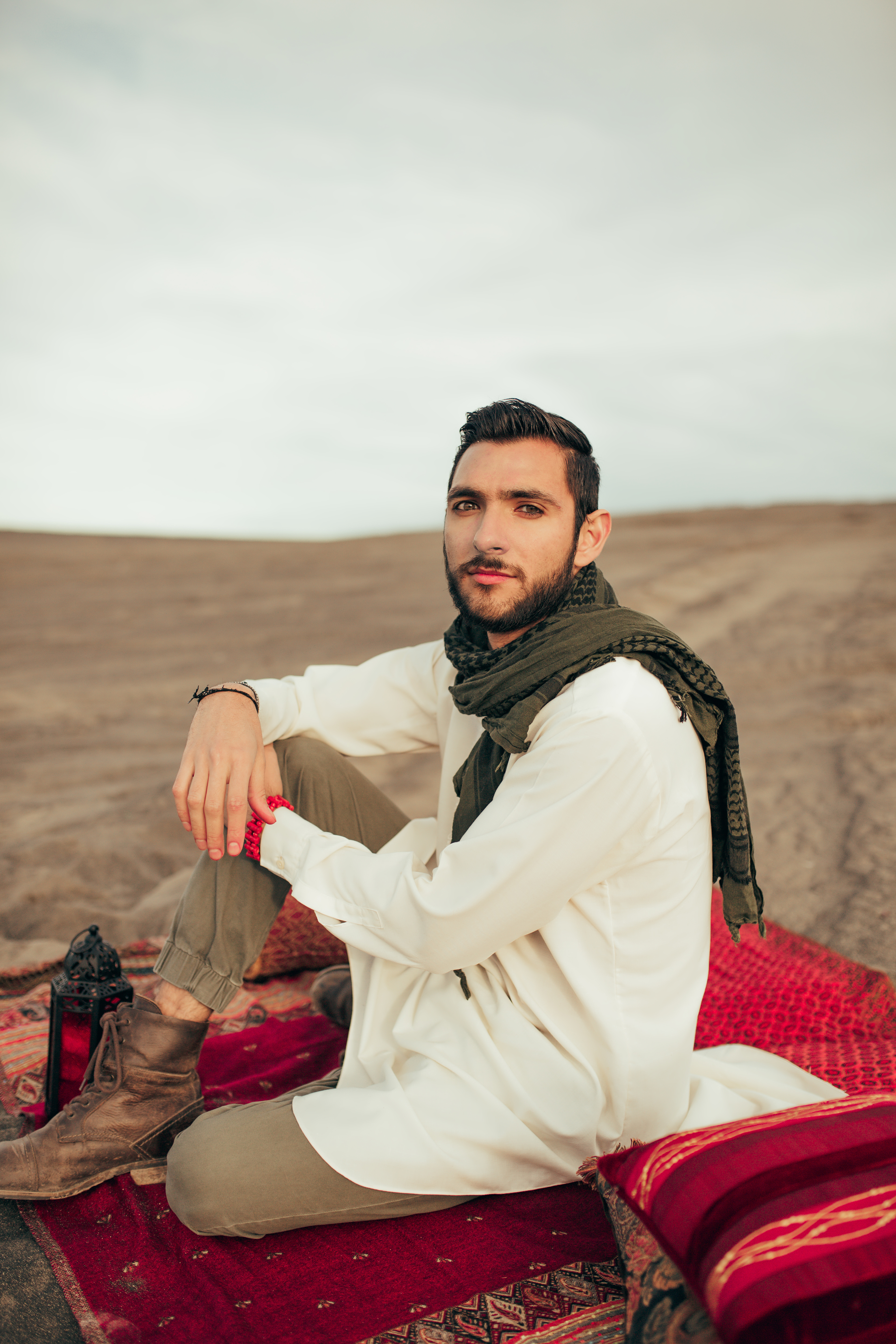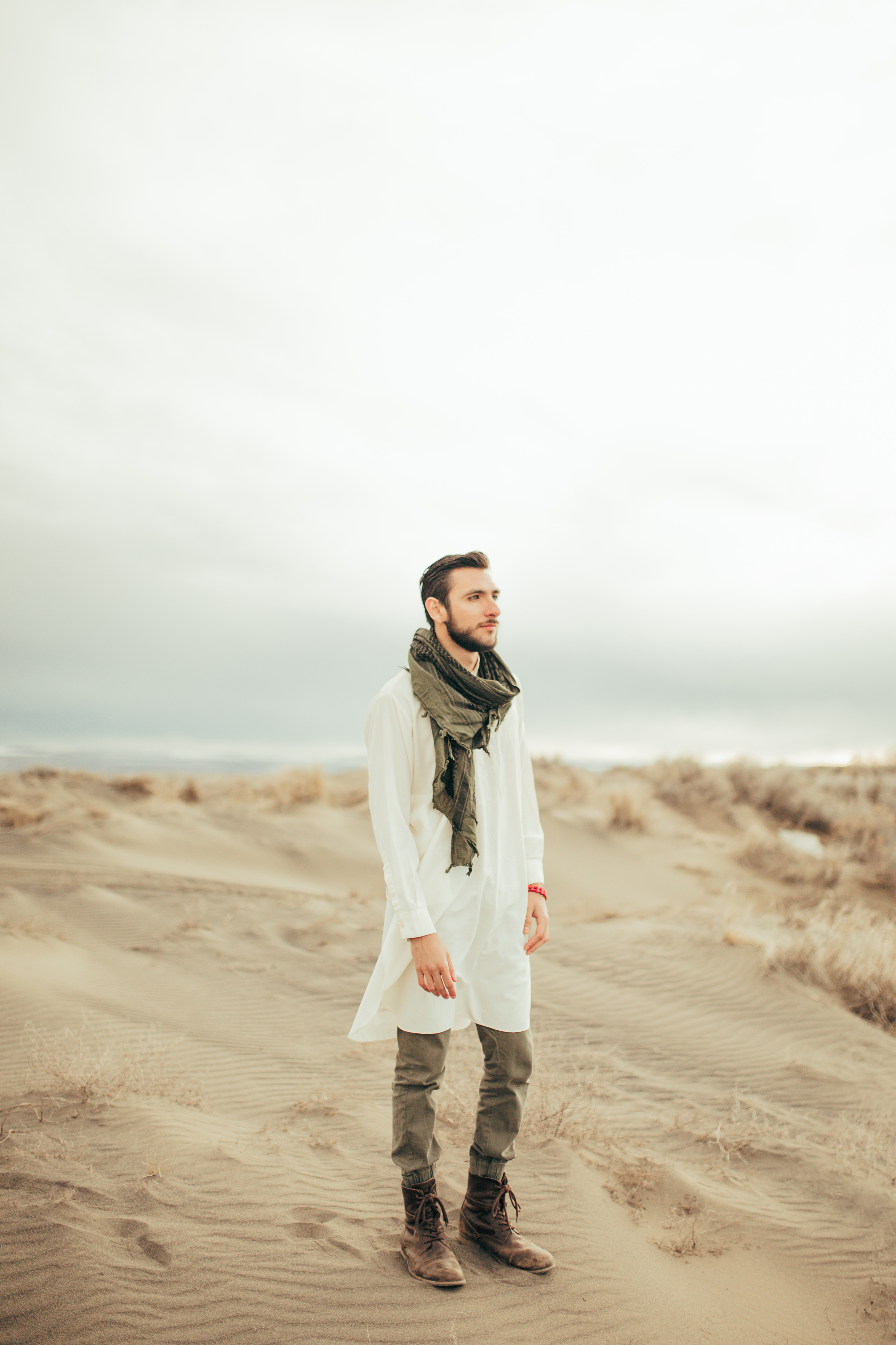 As for my outfit, we decided to explore a little bit more on the Middle Eastern background of the Fulani but with a slightly modern, urban vibe. I’m wearing a kaftan that we got on Etsy for a really nice price. Guys, this website is AMAZING for acquiring some hand-crafted, beautifully made garments from all over the world, and they are really affordable. I ordered mine there, but you can find some similar items down below. To give it a more streetstyle feel, I combined the kaftan with my olive green joggers from The Rail at Nordstrom and a pair of desert boots from Aldo. For the accessories, we got some really nice scarves and bracelets at Goodwill. You remember my post about thrift shopping? Well, these are some of our great finds there. And finally, in the last picture, you can see me wearing a faux-leather motorcycle jacket from 21 Men. What do you think? Did I pull off the Middle Eastern look well, but with a modern touch? I want to really thank the amazing Dillon Ivory for this incredible photography. It was not just taking the photos, he went through a whole journey with us and we had an incredible time together. You’re awesome Dillon!