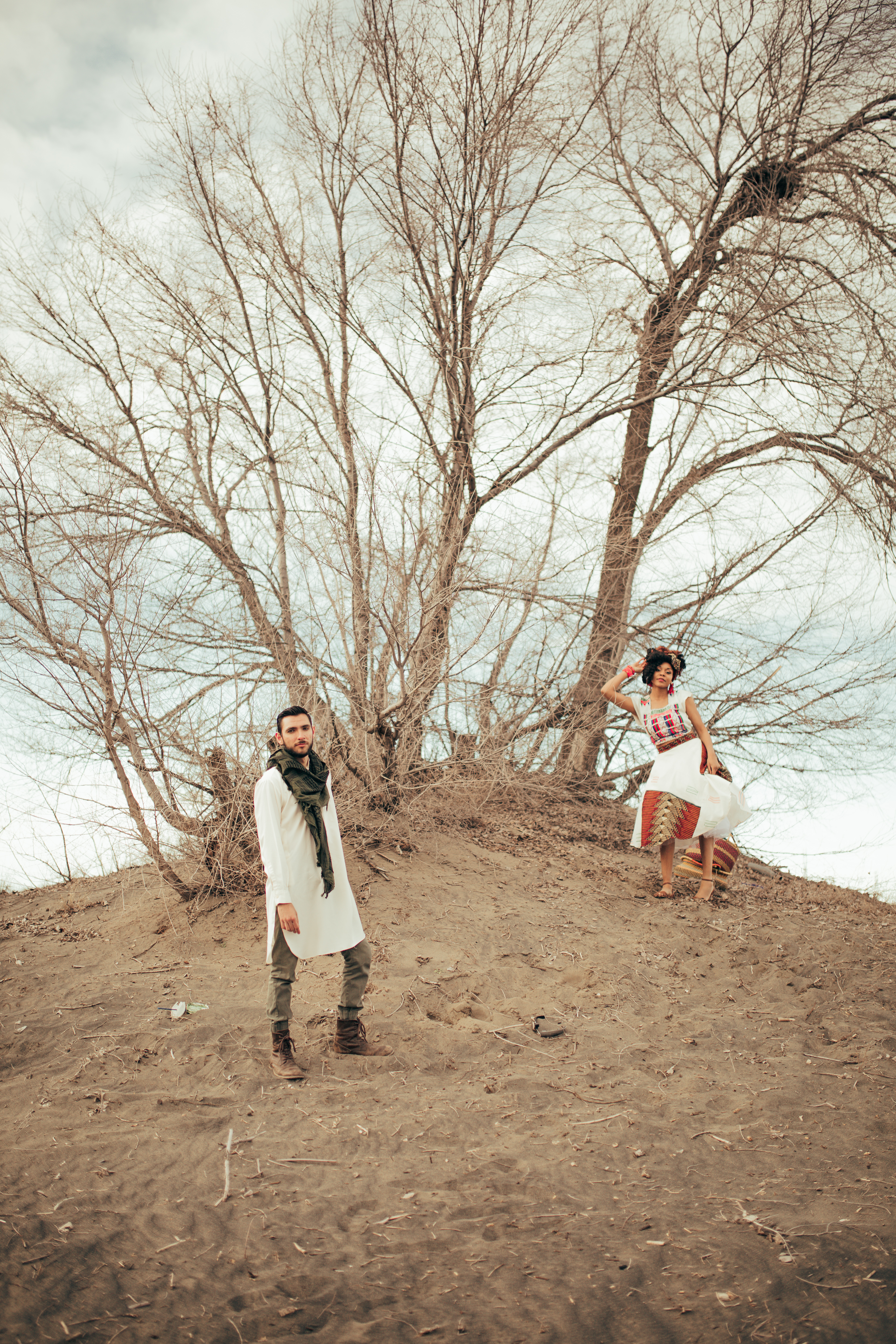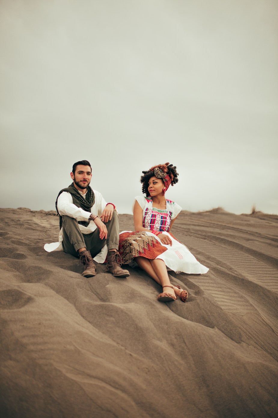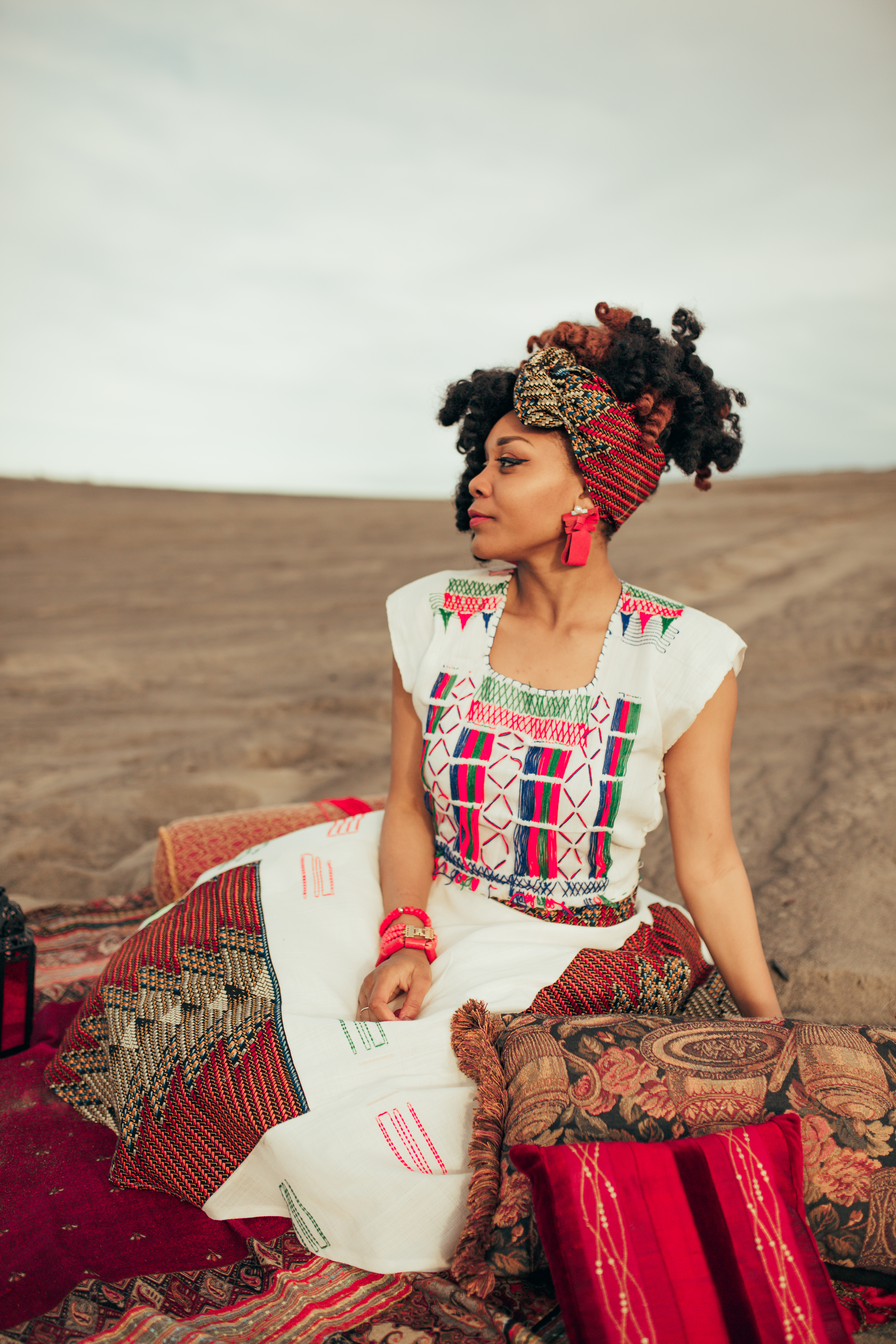 First of all, I want to talk about the origins of this collaboration. Nini has been doing a collection of posts called the Fusion Series in her own blog for a while, where she explores combining multiple, different cultures into one single story. I love the idea of bringing the most representative aspects of two cultures together, and some of her posts have been nothing but sheer perfection. So when she contacted me to collaborate in one of her projects I was extremely excited. You see, Nini is from northern Nigeria, and for her next endeavor, she wanted to represent her own culture in a post: the Fulani culture. The Fulani people are a Muslim ethnic group that have been widely dispersed over the world, but have roots from North Africa and the Middle East. So the idea was to combine the traditional Fulani outfit with some of its Middle Eastern origins, and when Nini offered me the opportunity on collaborating with her in something that meant so much because of her own background I fell extremely honored and excited. As for the location, we wanted a place that would go along with these two different cultures, so we decided to shoot in the sand dunes of Moses Lake, Washington, since the arid, desert-like Central Washington would play well with the theme. It was a dark day, but in the end the sun finally gave us some rays of light before setting down.