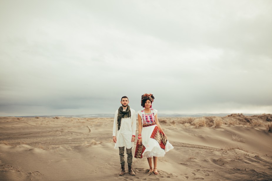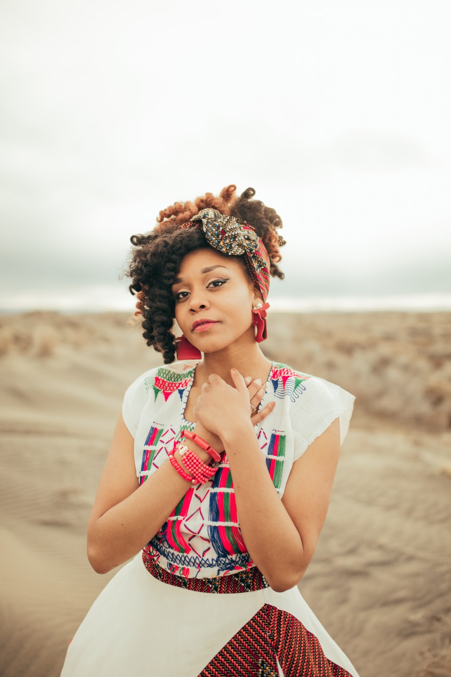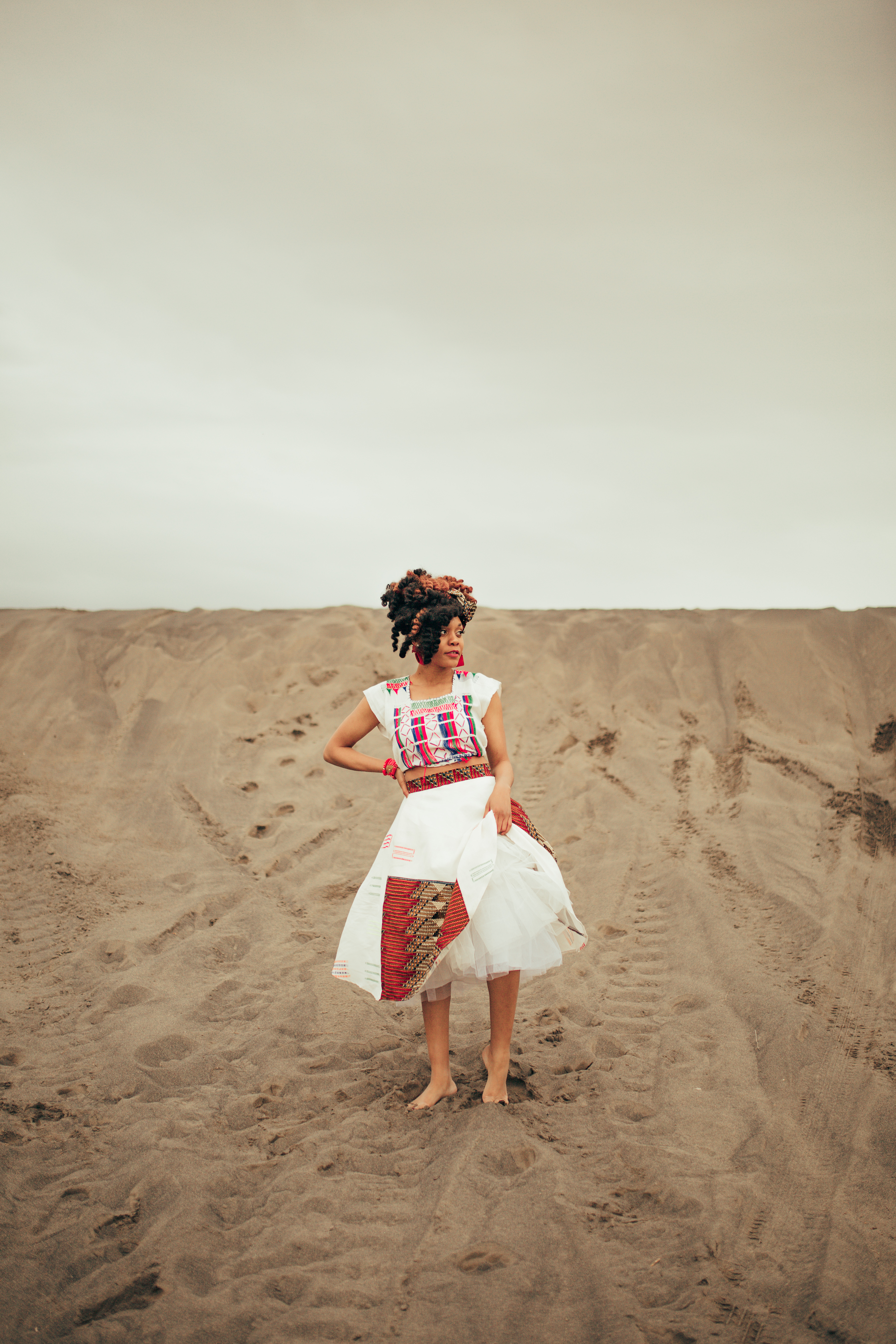 First of all, I want to talk about the origins of this collaboration. Nini has been doing a collection of posts called the Fusion Series in her own blog for a while, where she explores combining multiple, different cultures into one single story. I love the idea of bringing the most representative aspects of two cultures together, and some of her posts have been nothing but sheer perfection. So when she contacted me to collaborate in one of her projects I was extremely excited. You see, Nini is from northern Nigeria, and for her next endeavor, she wanted to represent her own culture in a post: the Fulani culture. The Fulani people are a Muslim ethnic group that have been widely dispersed over the world, but have roots from North Africa and the Middle East. So the idea was to combine the traditional Fulani outfit with some of its Middle Eastern origins, and when Nini offered me the opportunity on collaborating with her in something that meant so much because of her own background I fell extremely honored and excited. As for the location, we wanted a place that would go along with these two different cultures, so we decided to shoot in the sand dunes of Moses Lake, Washington, since the arid, desert-like Central Washington would play well with the theme. It was a dark day, but in the end the sun finally gave us some rays of light before setting down.