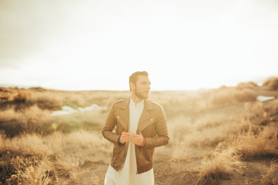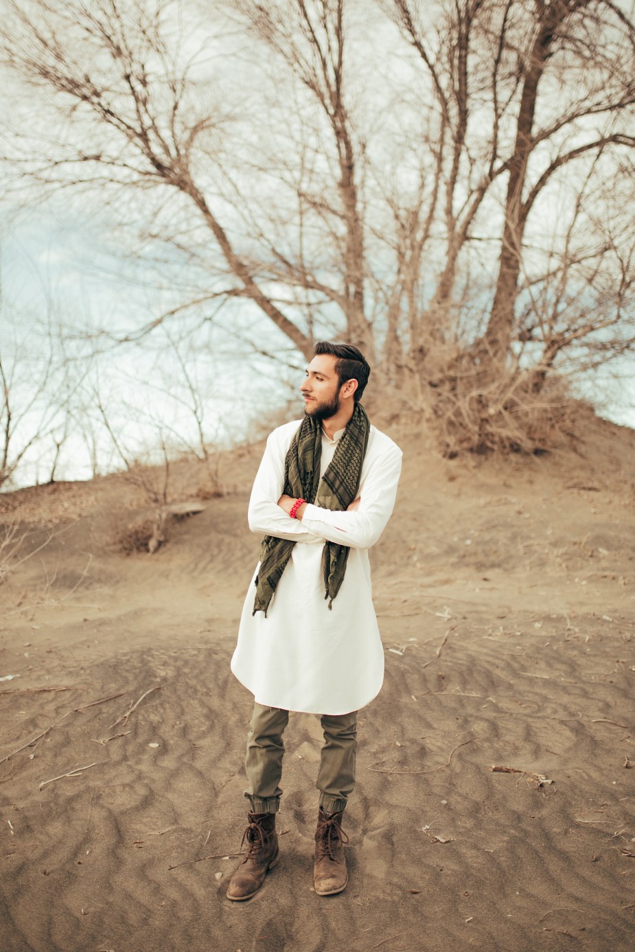 Para mi atuendo, decidimos explorar un poco más el bagaje del Medio Oriente de los Fulani pero con una vibra un poco más moderna y urbana. Estoy vistiendo un kaftan que conseguimos en Etsy a un súper buen precio. Amigos, les recomiendo este sitio para comprar artículos muy hermosos, hechos a mano, de todas partes del mundo y a un precio muy razonable. Yo ordené mi vestimenta ahí, pero pueden encontrar otras piezas similares en los links del final. Para darle un toque más callejero, combiné el kaftan con mis joggers color verde olivo de The Rail at Nordstrom y con un par de botas para el desierto de Aldo. En cuanto a los accesorios, conseguimos unas mascadas y unos brazaletes muy buenos en Goodwill. ¿Se acuerdan de aquel post que escribí acerca del thrift shopping? Bueno, estos son algunos de los artículos que encontramos ahí. Y finalmente, en la última foto me pueden ver utilizando una chamarra de motociclista en piel falsa de 21 Men. ¿Qué opinan? ¿Creen que me salió bien el look del Medio Oriente, pero con un tinte un poco más moderno? Quisiera agradecerle al increíble Dillon Ivory por estas impresionantes fotografías. No sólo fue el tomar las fotos, sino que sobrevivió al viaje con nosotros y nos la pasamos muy bien. ¡Eres lo máximo Dillon!