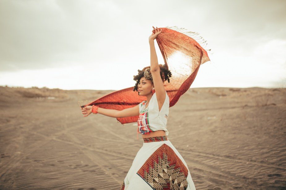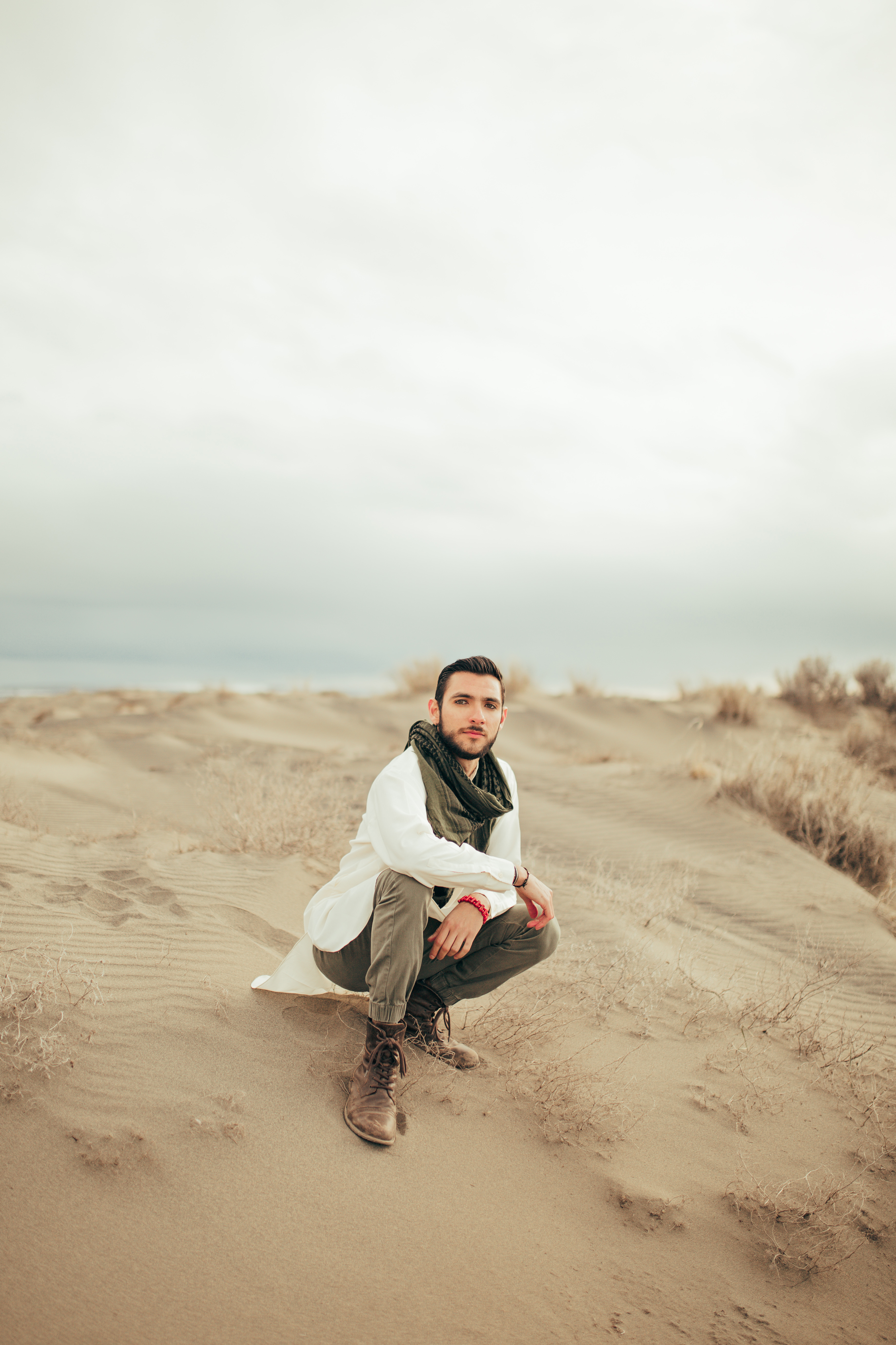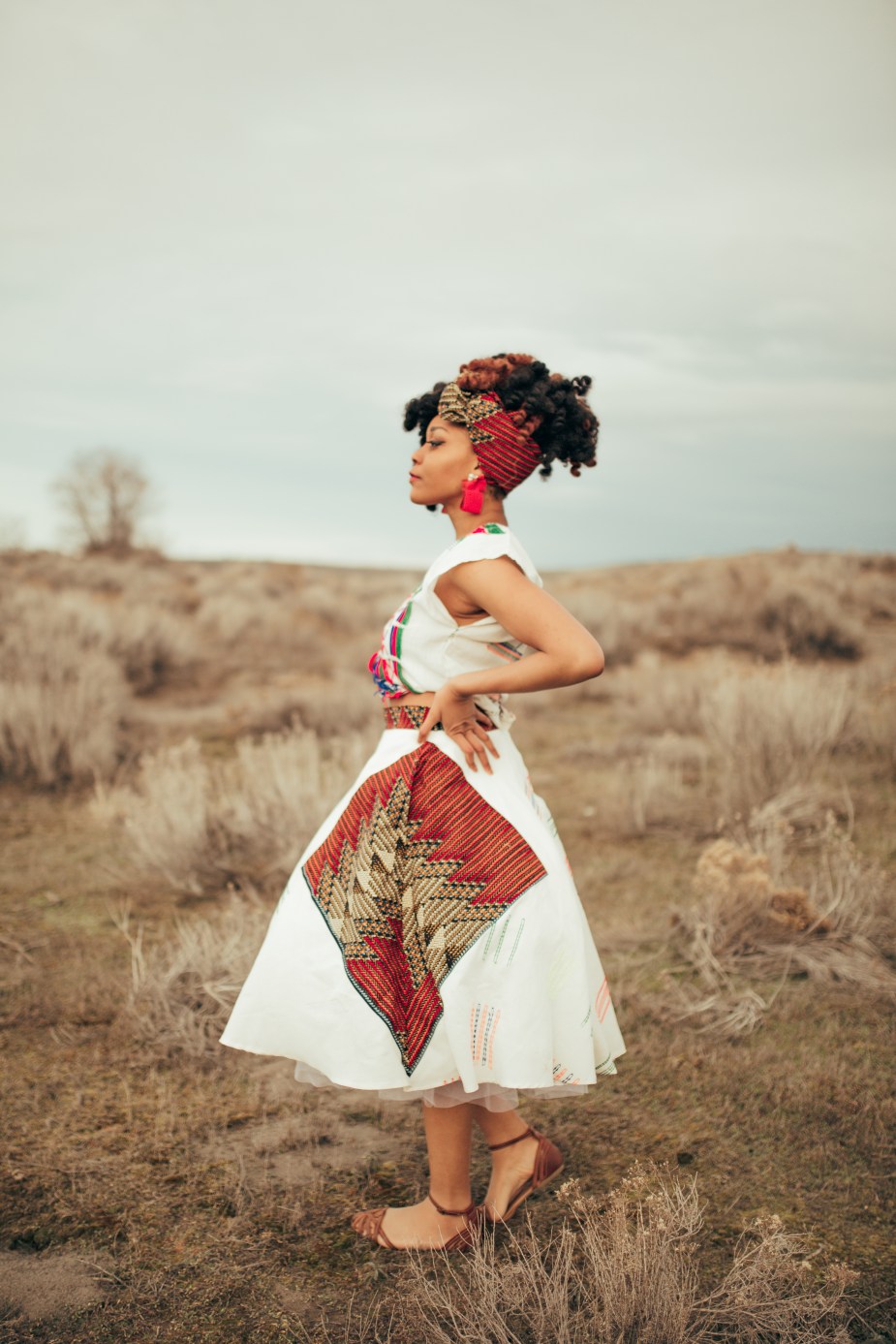 Primero que nada, quisiera que habláramos un poco sobre el origen de esta colaboración. Nini lleva ya algo de tiempo creando una colección de posts llamada Fusion Series en su propio blog, donde explora combinaciones de múltiples culturas diferentes en una misma historia. Me fascina la idea de traer los aspectos más representativos de dos culturas en la misma imagen y, algunos de estos posts han sido meramente perfección. Así que cuando me contactó para ofrecerme una colaboración en uno de sus proyectos me sentí bastante emocionado. Verán, Nini es del norte de Nigeria, y para su siguiente propuesta, quería representar su propia cultura en un post: la cultura Fulani. Los Fulani son un grupo étnico musulmán que se han dispersado por gran parte del mundo, pero que tienen sus raíces en el norte de África y en el Medio Oriente. Entonces la idea era combinar un traje típico tradicional Fulani con algunos de sus orígenes del Medio Oriente, y cuando Nini me presentó la oportunidad de colaborar en algo que significa tanto para ella debido a su propio bagaje cultural me sentí muy honrado y contento. Para la locación, queríamos un lugar que encajara bien con estas dos diferentes culturas, así que decidimos hacer la sesión de fotos en las dunas de arena de Moses Lake, Washington, dado que el árido y desértico centro del estado de Washington jugarían bien con el tema. Era un día algo oscuro, pero al final el sol nos regaló un par de rayos antes de ponerse.