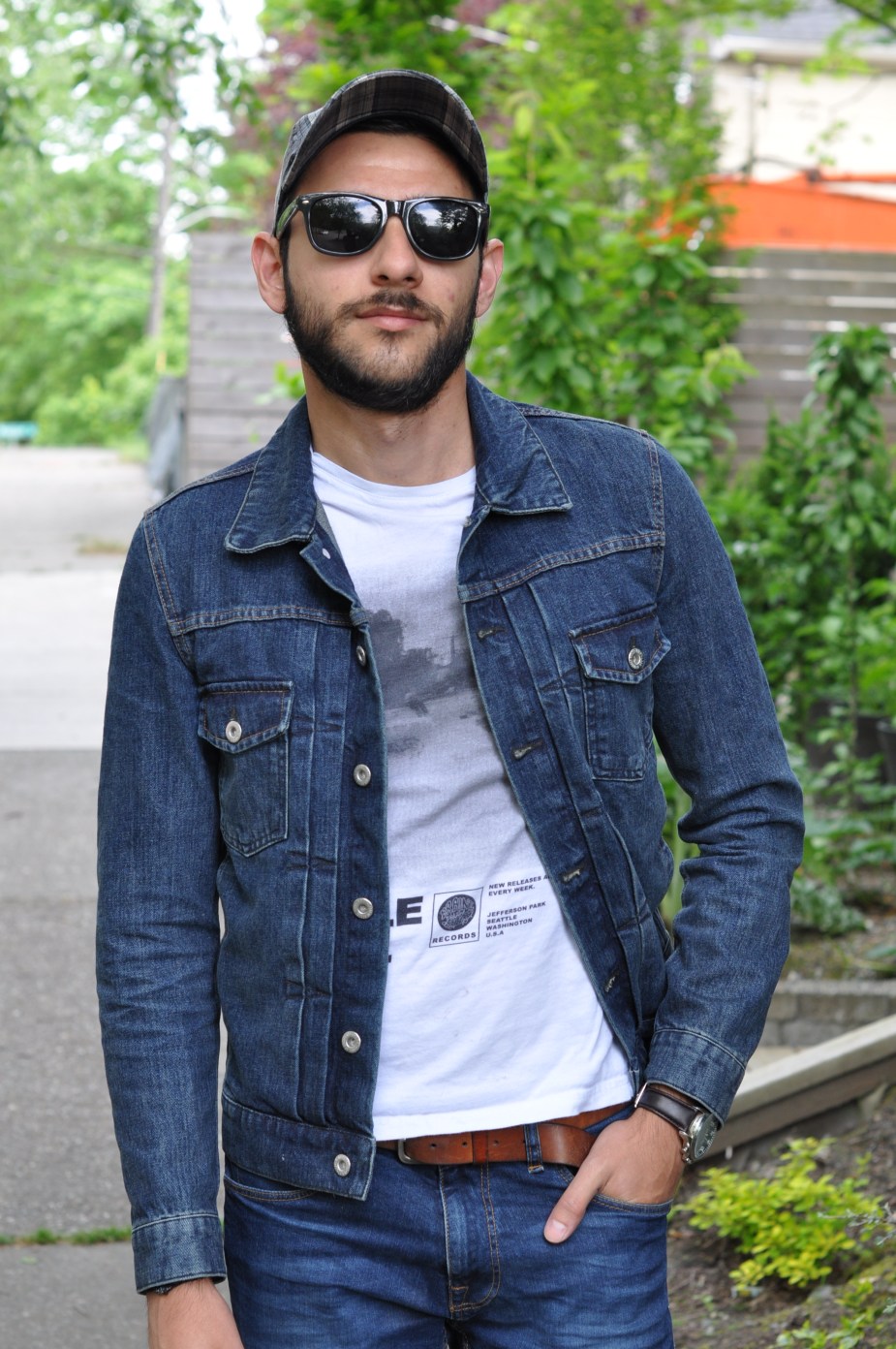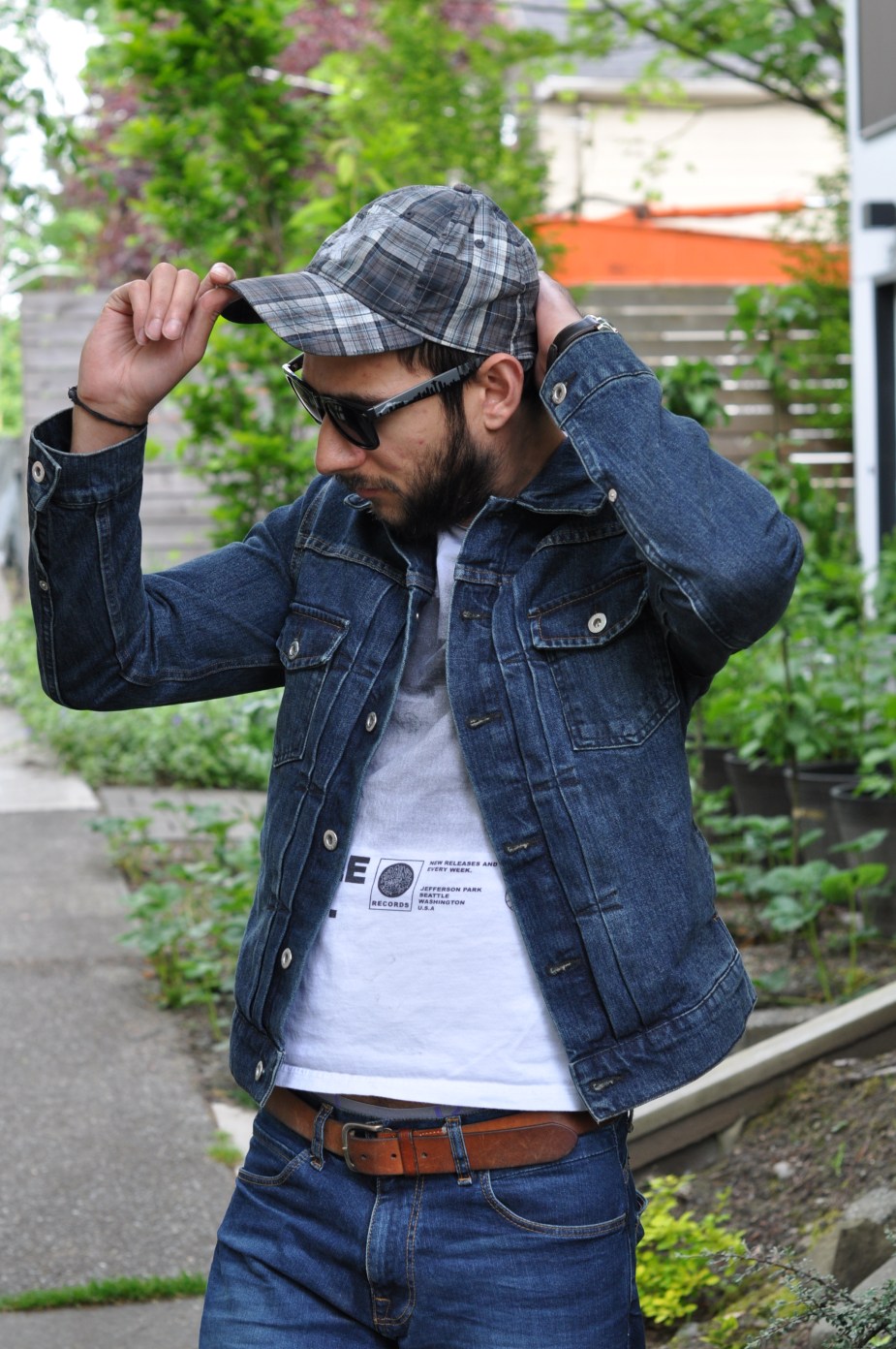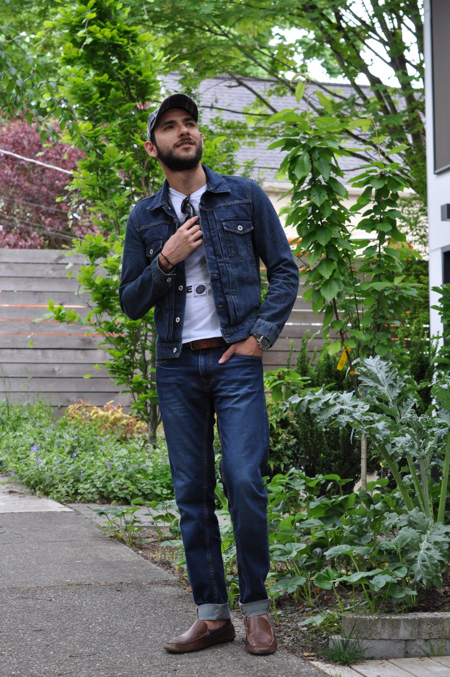 For this post, I want to show you what my denim on denim take on a 90s look would look like in 2017. The first thing is that, as I mentioned earlier, raw denim is the one that’s making a big comeback. For that, I got to choose my slim fit, 1975 denim pants from Zara along with a raw denim jacket from H&M. The main characteristic of raw denim is that is has not undergone the usual washing and distressing processes of denim, and it comes off with a stiff, deep blue color and a distinctive sheen. Up until the 70s all jeans were raw denim, and then the fad went away for a while. However it was back during the 90s, and today it’s back on trend (seems like every 20 years we go back to the same fads). I paired this combination with a printed tee from Topman that has a Seattle theme on it (because Seattle was HUGE in the 90s with the grunge movement) and a plaid hat from American Eagle. For the shoes, I went for brown moccasins, and I topped the look with some sunglasses with the Seattle skyline. What do you guys think? Are you ready to try your 90s comeback, denim on denim look? Thanks to my roommate Carlos for taking these photos, love how much green there’s outside our place LOL.