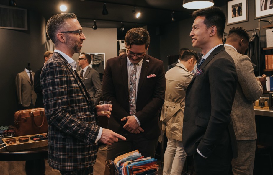 Hello folks! How’s everyone doing? Last week, the Seattle Gents gathered once again in a very special collaboration with Beckett & Robb, a tailored custom suit maker that is revolutionizing the way in which couture menswear is made. We met up at their downtown Seattle flagship store, and were served to a nice mix of drinks, music, and of course, fashion. We also got to try out some supplies from The Art of Shaving. In my case, I got the signature beard wash and conditioners made from peppermint oil. It was really awesome to see much higher involvement from the menswear fashion community this time; the turnout was great and we overall had an amazing time together.