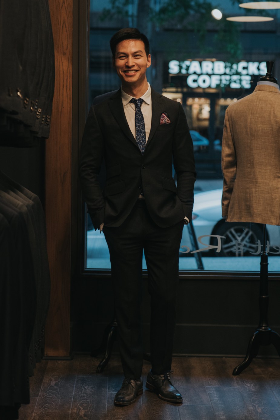 About 5 weeks after that meeting, I got an email message saying that my suit had arrived. I must mention that during all this time I was being notified of which part of the process my suit was undergoing, from cutting, to pressing, to final adjustments, etc. I was always up to date with my suit’s status! I was extremely satisfied once I was able to see the finalized result, and I’d definitely do this another time because it was so much fun. I paired my custom suit with a stone textured tie from Topman and a double pocket square combination from Club Monaco. For the shoes, I went for my brown Chelsea boots from Aldo and a tie bar to top off the look. What do you guys think? Considering getting one of these for yourself as well? There are plenty of Beckett & Robb locations so I suggest you look for one of them online and see if you can make it to one, I definitely recommend it.