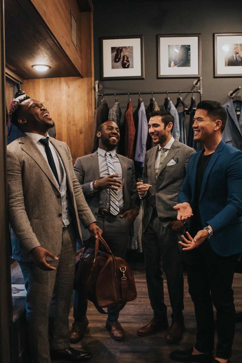 ¡Hola amigos! ¿Cómo están? La semana pasada, los Seattle Gents nos reunimos una vez más para una especial colaboración con Beckett & Robb, una tienda de trajes hechos a la medida que está revolucionando la forma en que la ropa formal de hombre se hace y diseña. Nos vimos en su tienda insignia en el centro de Seattle y, fuimos bienvenidos con una mezcla de bebidas, música y sobre todo, mucha moda. Tuvimos la oportunidad además de probar algunas muestras de The Art of Shaving. En mi caso, pude obtener muestras de sus ya conocidos aceites y acondicionadores para barba hechos con aceite de yerbabuena. Fue increíble el ver a la comunidad de la moda masculina tan involucrada para este evento; asistió bastante gente y en general nos la pasamos muy bien juntos.