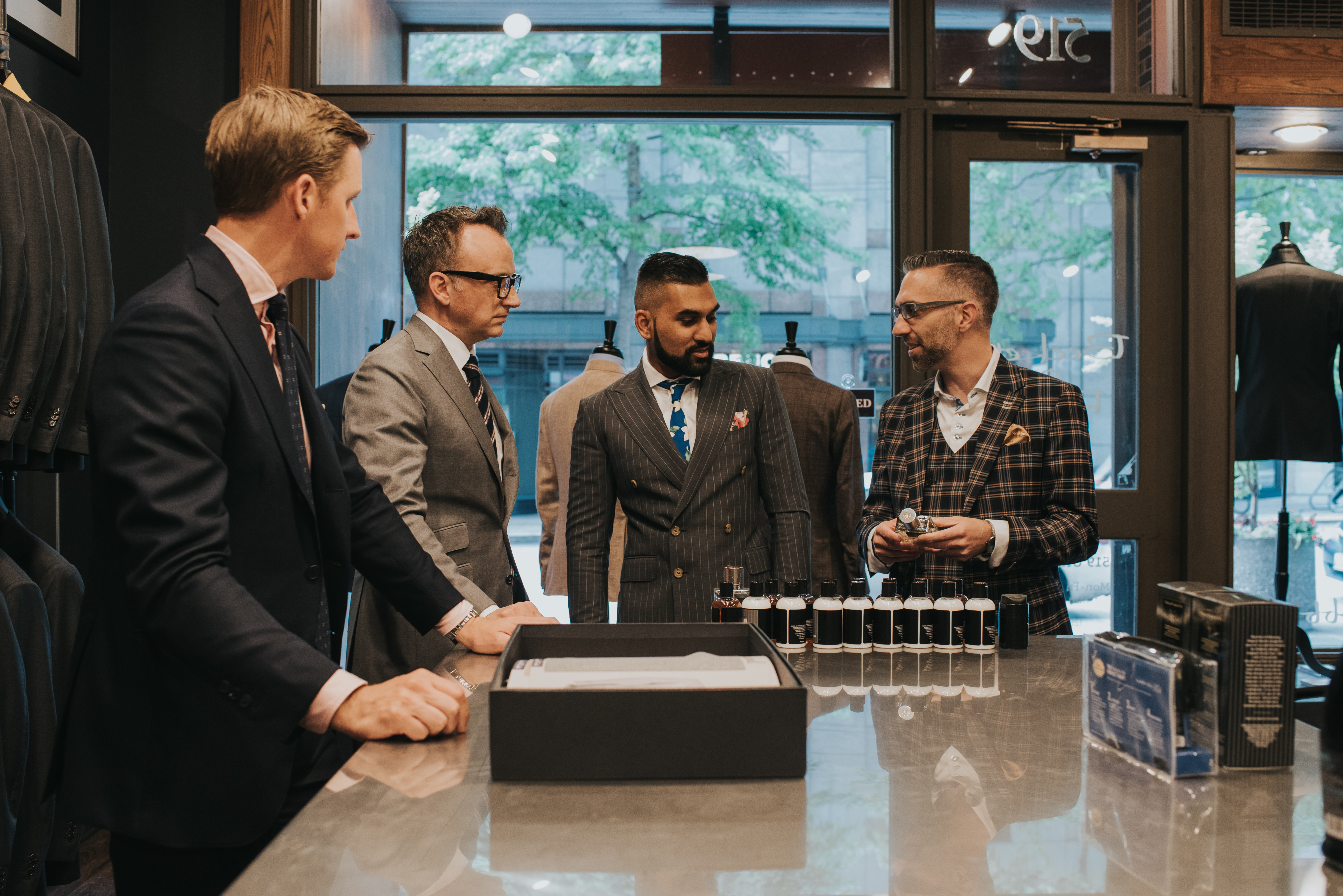 Hello folks! How’s everyone doing? Last week, the Seattle Gents gathered once again in a very special collaboration with Beckett & Robb, a tailored custom suit maker that is revolutionizing the way in which couture menswear is made. We met up at their downtown Seattle flagship store, and were served to a nice mix of drinks, music, and of course, fashion. We also got to try out some supplies from The Art of Shaving. In my case, I got the signature beard wash and conditioners made from peppermint oil. It was really awesome to see much higher involvement from the menswear fashion community this time; the turnout was great and we overall had an amazing time together.