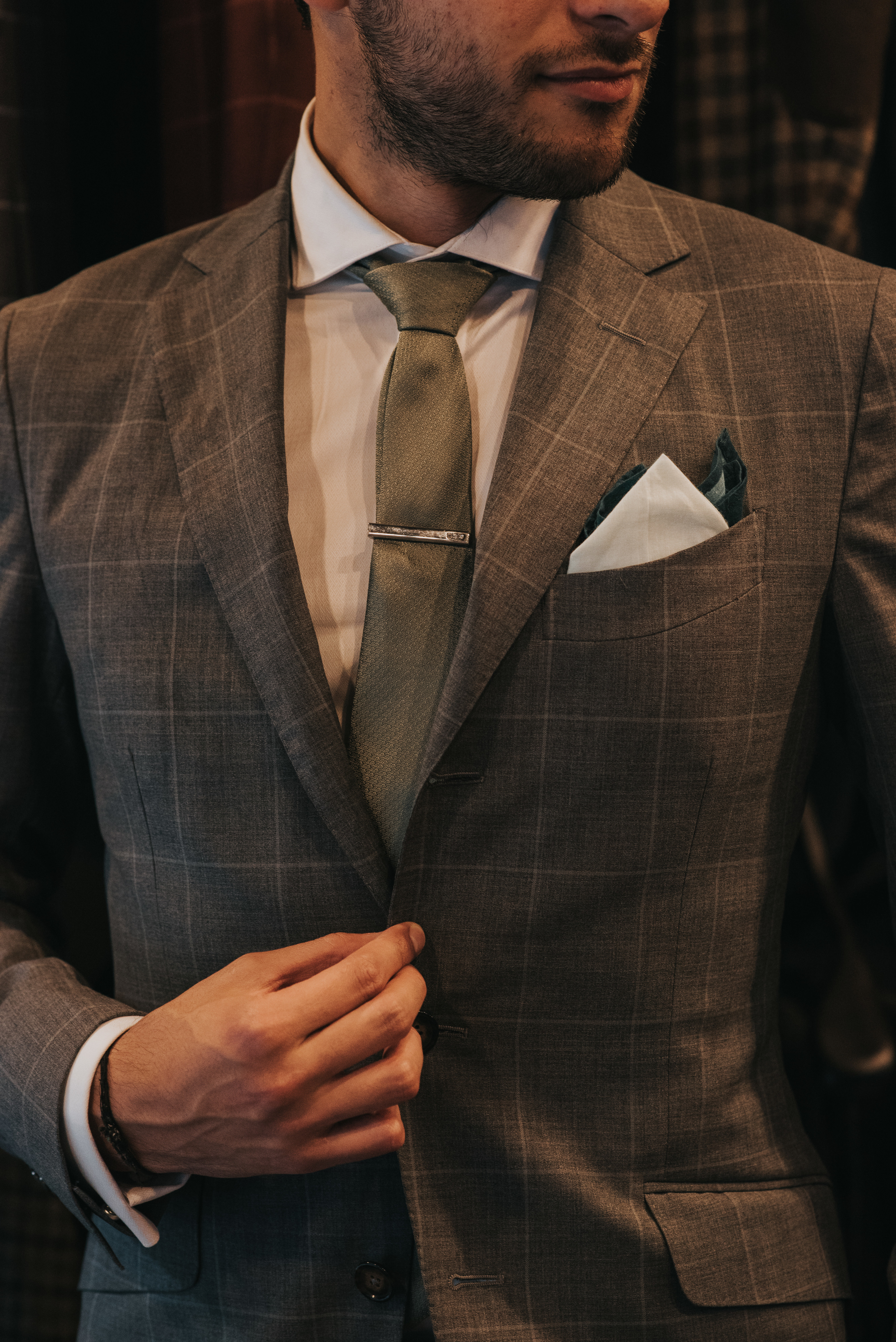 For my meet up with the Seattle Gents, I decided to wear my custom two-piece gray-patterned suit that I got a few weeks ago precisely from Beckett & Robb. It all started about a month and a half ago, when I made an appointment at their downtown store to get my measurements and design the suit. It was my first time buying a custom suit, and Scott, who manages the Seattle location, made sure that my first time designing a suit was pleasant and memorable. From choosing the fabric, to choosing the suit’s style, number of buttons, type of lapels, cuffs, inside layer fabric, among other tiny details, Scott guided me through the complete design of a suit, and after getting the measurements the suit went off to be cut and assembled in Europe.