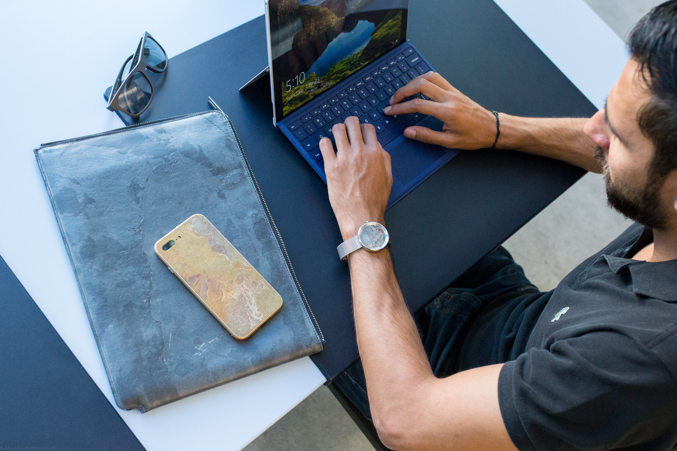 Today I want to talk about the collaboration I did with our friends from Roxxlyn, a luxury stoneware brand from Germany, which I was introduced to by my friend Marcus from Thurston Threads. You might remember Marcus from my interview last year with him, where we talked about how I created this blog. Well, a few weeks back he told me about this brand he wanted to collaborate with and how he needed someone to shoot some styling photos. When he asked me whether I wanted to collaborate and he explained what this brand does, I was totally intrigued and completely interested in helping out. You see, Roxxlyn incorporates real stone into their products. By adding a thin layer of stone to each one of the accessories they produce, they bring the meaning of luxury brand to another level, and for this I got to try a watch, a cell phone case, and a briefcase. Marcus himself got a chance to interview Andreas Plassman, the Director of Sales and Marketing for the brand, and you can check out his interview on this post, where he describes the idea behind this brand and its creation. It’s written in both English and German, so enjoy the read! Also I want to say I feel so honored to have been chosen by him to style this shoot. Danke schön, Marcus!