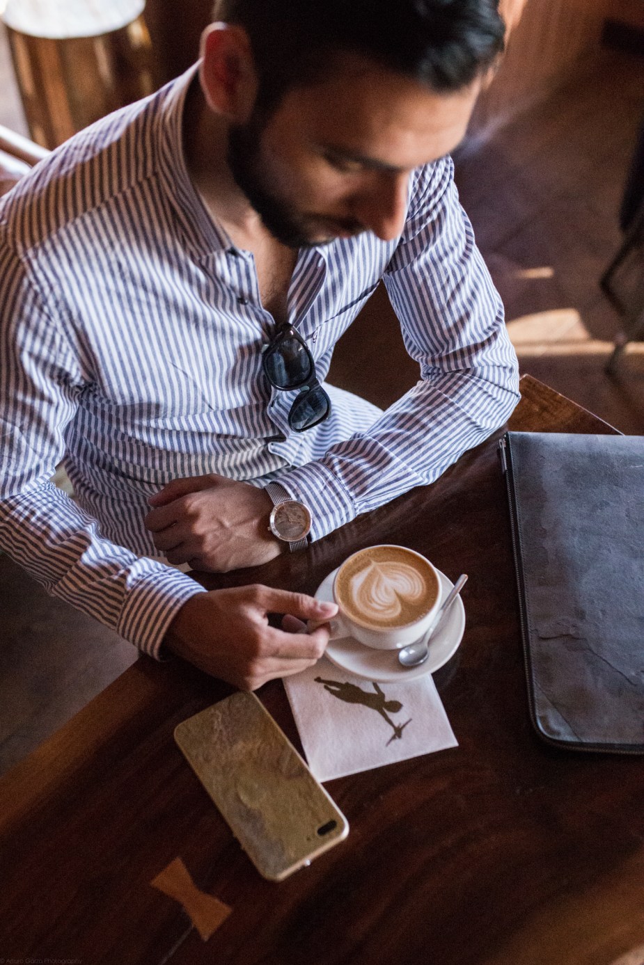 Como les explicaba anteriormente, estas recientes semanas he estado muy ocupado y es por eso que hoy les quiero enseñar en el blog cómo se ve un escenario real en la vida de un blogger. Y no de cualquier blogger, sino de un blogger de Seattle. Aquí pueden ver como los tres productos que me dieron a probar combinan con 3 looks completamente distintos. Debo admitir, cuando estaba eligiendo qué ponerme para este blog post me inspiré en mi día a día, donde quizás me encuentre haciendo algo de trabajo y descansando en un café, y después tengo que cambiarme rápidamente y prepararme para una sesión de fotos y luego me cambio otra vez a un look más cotidiano. Todo esto mientras recibo múltiples llamadas en mi celular, trabajo un poco en mi blog, manejo por la ciudad, etc. Básicamente, lo que hago todos los fines de semana o los días entre semana después del trabajo y, quería ver además si los productos y accesorios que estaba usando me estaban siendo de utilidad. Verán, la clave para elegir los accesorios adecuados es 1) asegurarse que los accesorios se ven bien con el outfit que decidiste ponerte y 2) mantener los accesorios de manera que son funcionales. Por ejemplo, si te vas a poner un reloj con camisa de manga larga, asegúrate de que puedes levantarte la manga fácilmente para ver la hora, o si vas a usar una carátula de celular, la cual se va a ver igual todos los días, escoge un color más neutro y deja que otros elementos de tu outfit la hagan resaltar. Finalmente, procura que los accesorios sean ligeros. Nadie quiere andar cargando con un reloj súper pesado o si decides poner tu laptop en un portafolios antes de meterla en tu mochila cerciórate que no le agregue mucho peso.