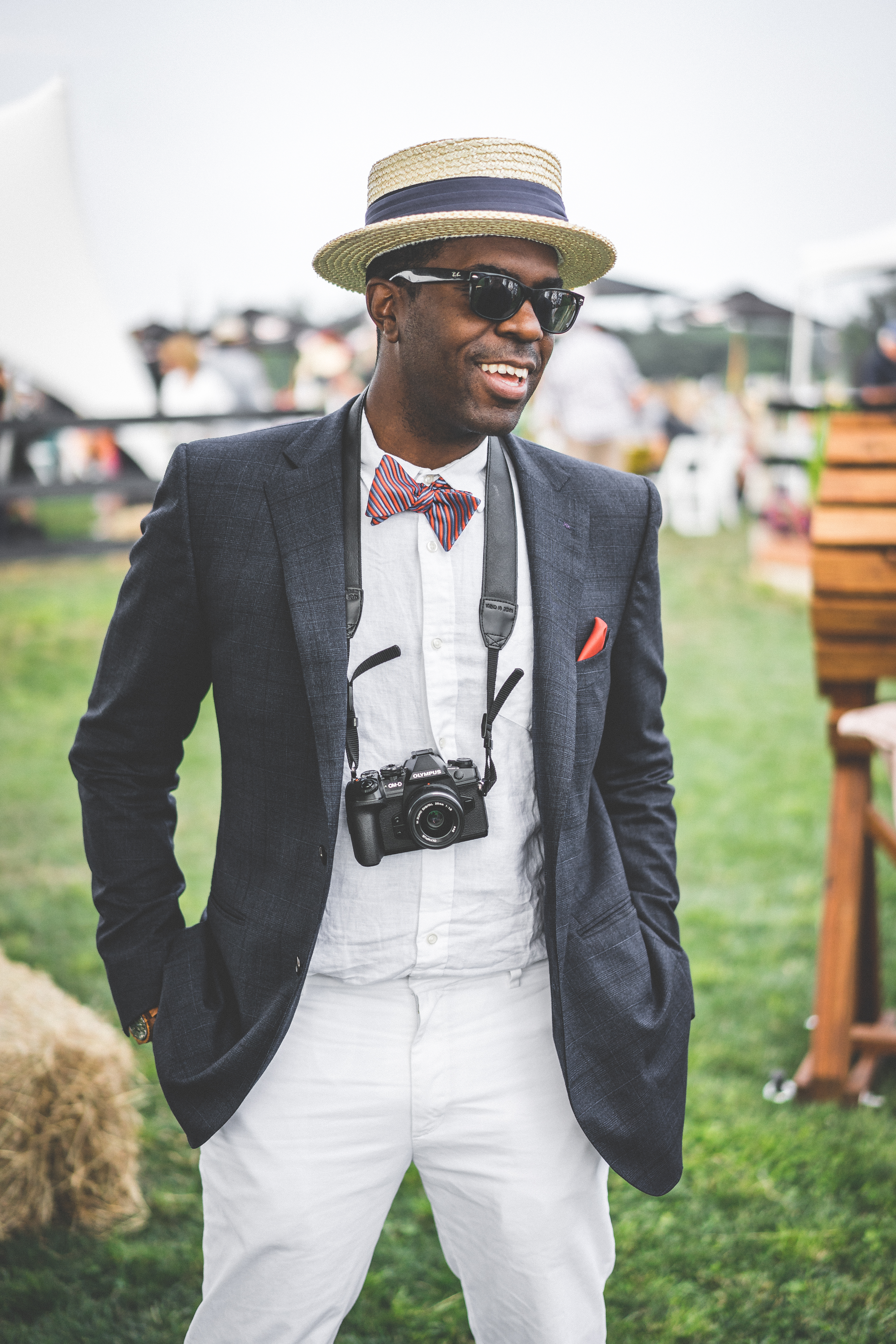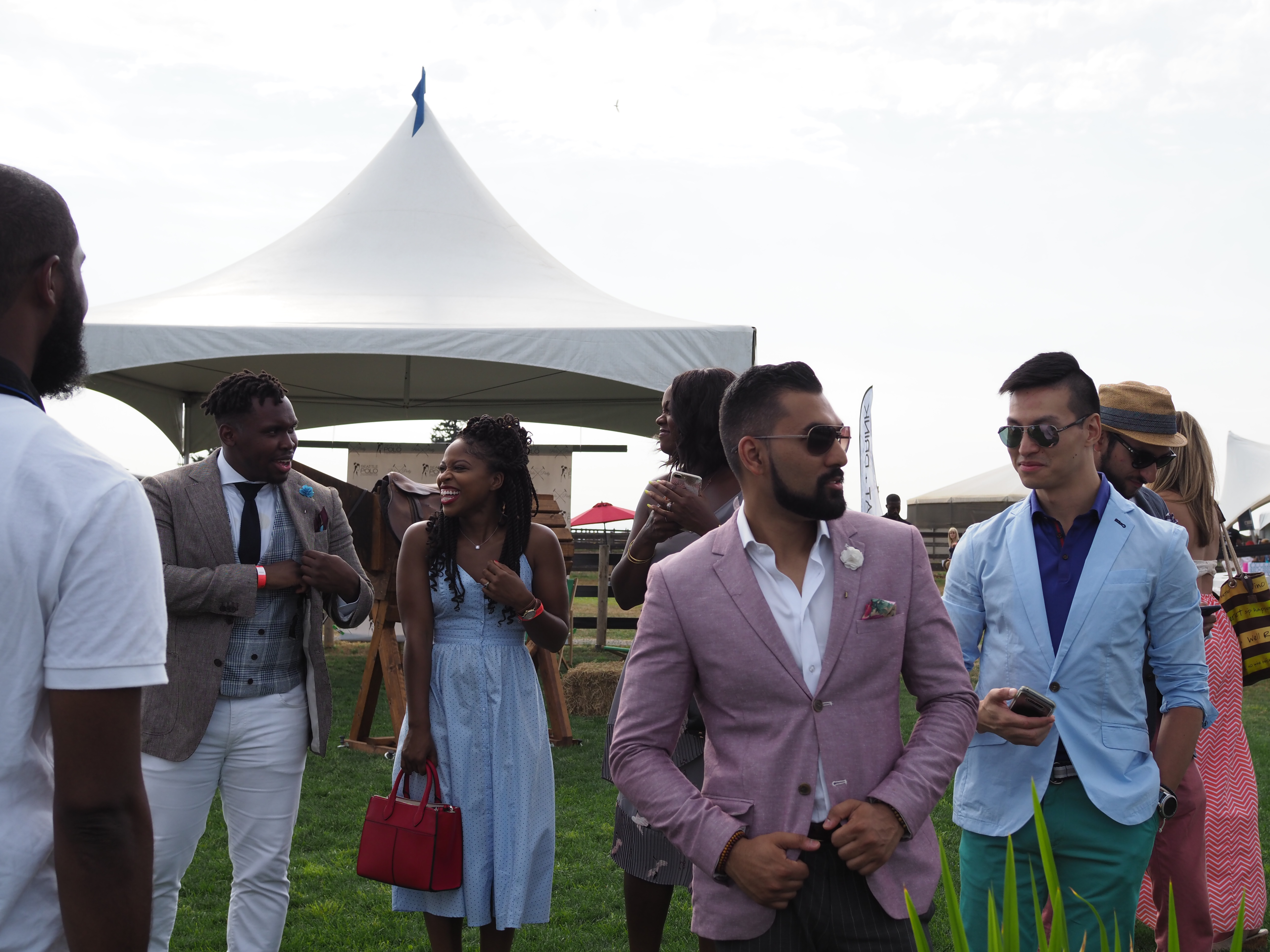 For my field day out with the gents, I decided to go for a very classy, summer look. Since we were not going to be in the city, I had to go for a more outdoorsy vibe that would still look good but also suit the location and event. I didn’t know what people would wear, but I was inspired by other classic outdoor events such as the Kentucky Derby to find the right outfit, which consisted of a combination of a navy blue stretch cotton blazer with harbor pink chinos from J. Crew (of course, J. Crew was the best option to dress for a polo event). One thing that really had to be on point were the accessories, so I went for a straw hat also from J. Crew, a purple pocket square from Club Monaco, and a red bow tie from H&M. For the shoes, I wore my 1601 loafers from Nordstrom and I topped the look with my Burberry sunglasses. What do you guys think? Isn’t it nice to go to summer events outside of the city where people are dressed so nicely from time to time? I want to thank both Antonio Smith and Ben Murphy for taking the photos at this event. They turned out great!