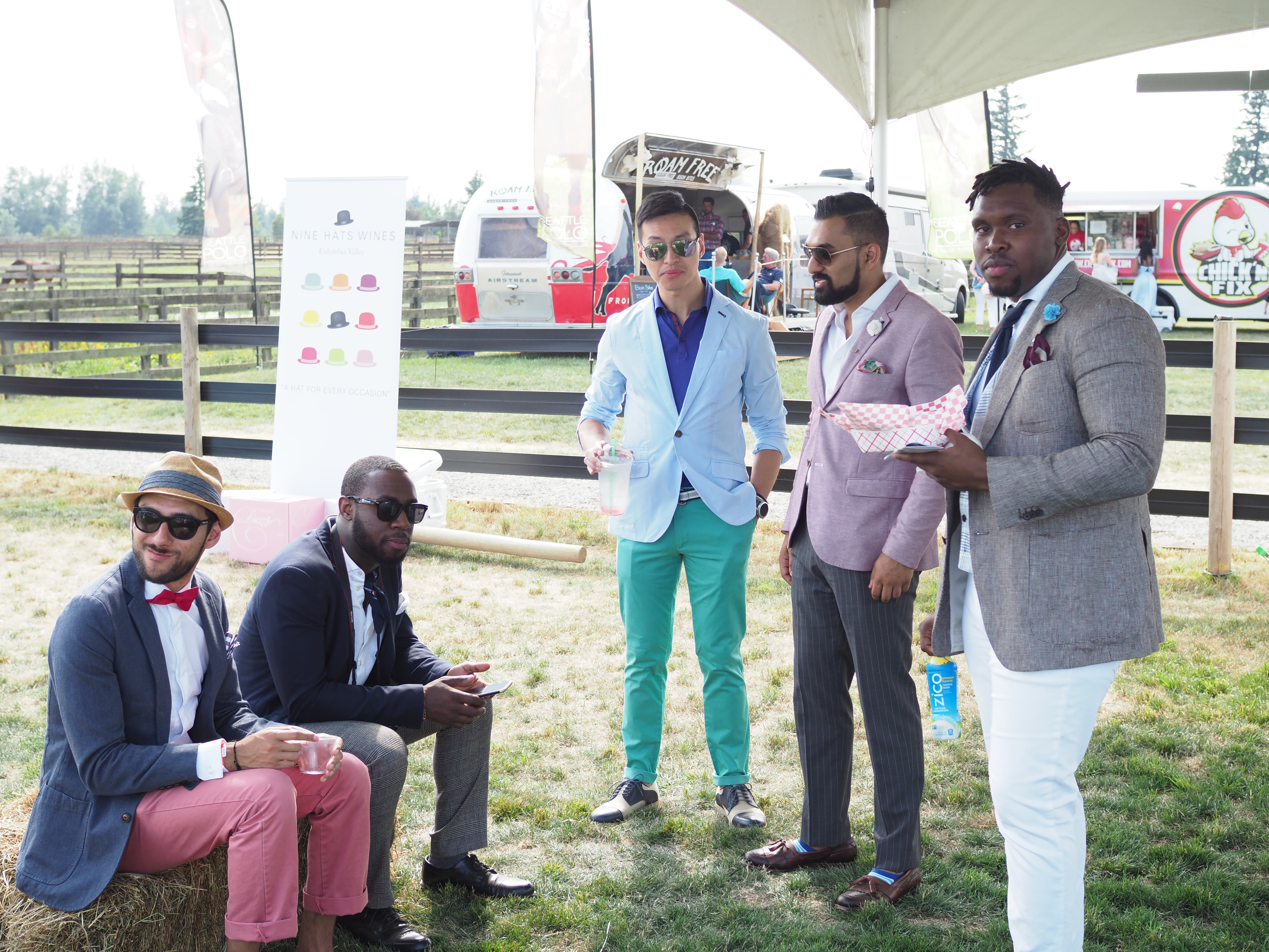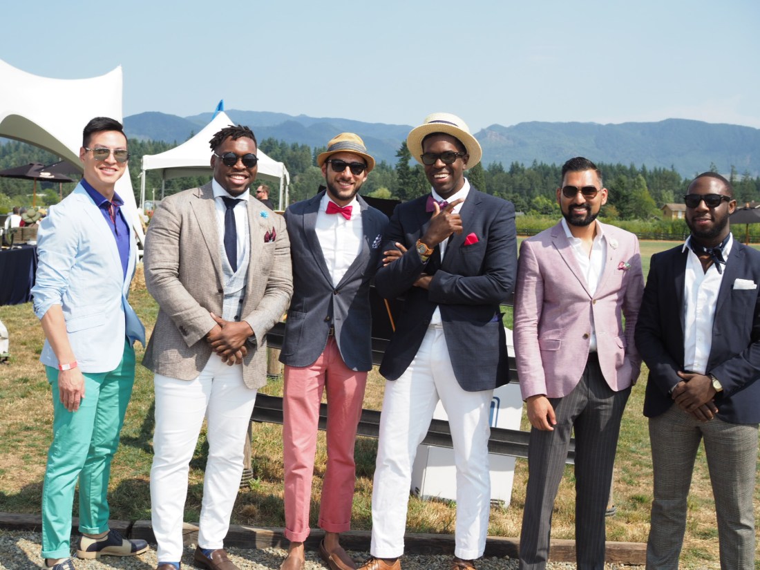 Now moving on to today’s fashion post, I want to talk about a really cool event that my friends, the Seattle Gents and I, got invited to a couple of weeks ago, called the Seattle Polo Party. I have to say, before going to this event I didn’t know much about polo in general, even though I love sports and I love watching them on TV. This was the one that I had no experience with at all, and that every time I saw it on TV I would just change the channel. So I was really excited to go to my first polo match, and it was a great opportunity to hang out with my squad and meet some other bloggers. We drove to the Seattle Polo Club in Enumclaw, WA, where the beautiful Mount Rainier served as our backdrop and the sky was only partly cloudy, compared to the smoky, hazy Seattle. Overall we had an amazing time, we ate some fried chicken, had a few summer drinks, and enjoyed a complete polo tournament. Props to Seattle Polo Party for organizing such a fun event, and as always it’s so good to hang out with the guys in style. Look at how much fun we had!