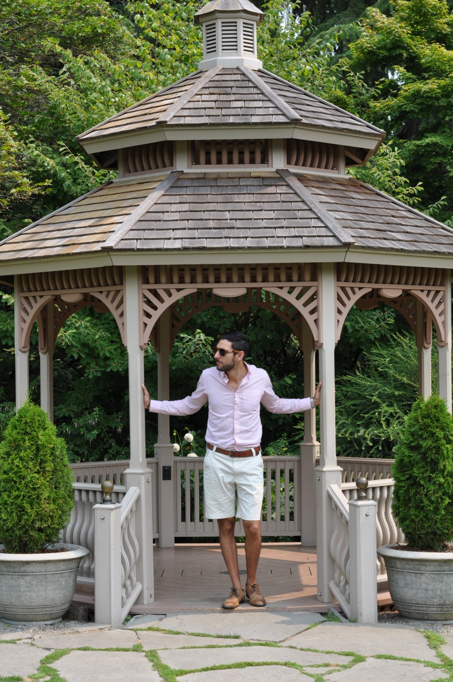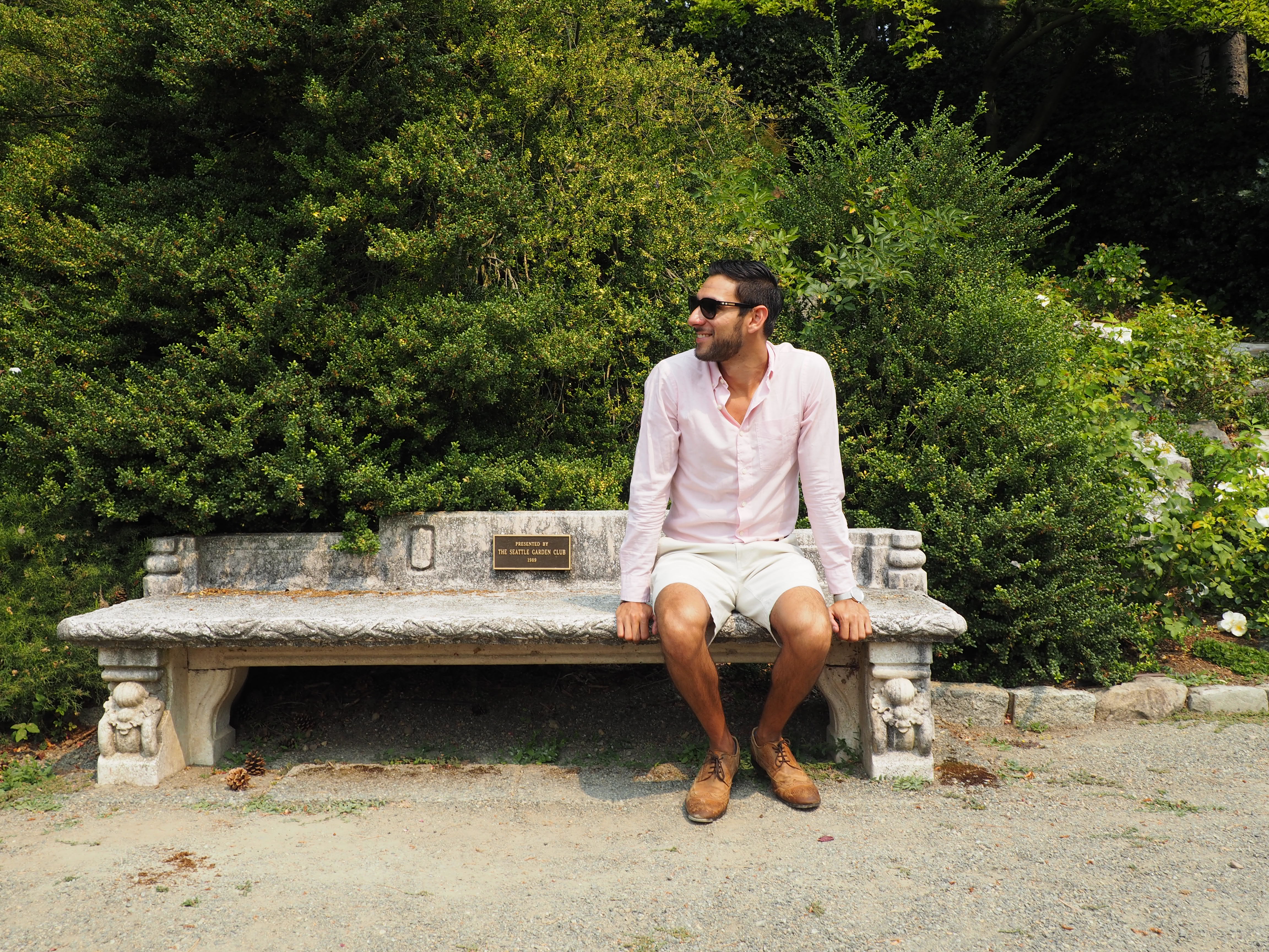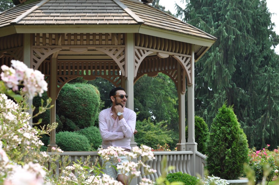 For my meeting with the interns at the rose garden, I decided to wear a summery look comprised of a rose button-down from Club Monaco and some white bermuda shorts from Moschino. Since we were going to shoot outside, I wanted an outfit that would be cool but also a bit neutral, so that the flowers from the garden could stand out even more in the photos. For the shoes I went for my brown dress shoes from Aldo and for the accessories I was sporting some wooden sunglasses and my Roxxlyn watch. Most of the photos were taken by me, with the exception of the ones I’m in and a few others that the girls took with my portable Olympus camera while I was shooting with the Nikon. You can even see some behind the scenes in one of the photos! What do you guys think? Are you ready for fall as well? Thanks to my beautiful models for looking damn stunning in each one of these photos and for keeping the tradition going. Can’t wait to see you all soon in Seattle!