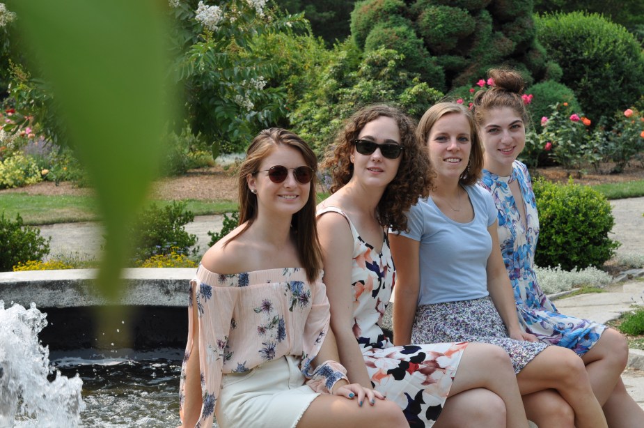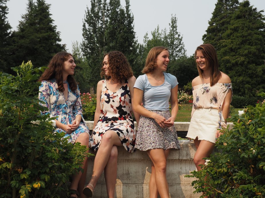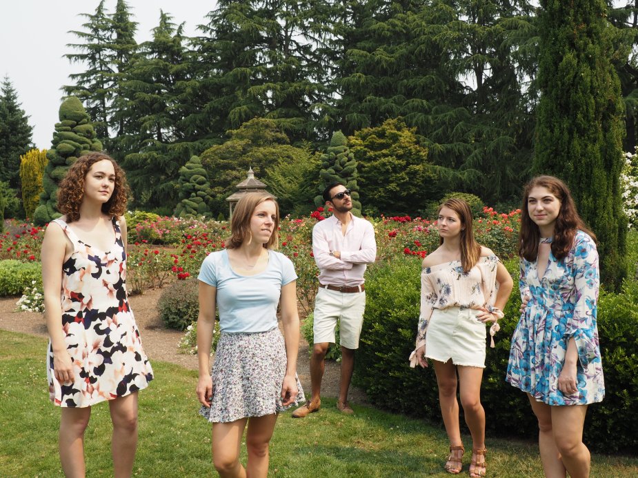For this awesome adventure, the interns and I met on a Sunday morning at the rose garden in the Woodland Park Zoo in north Seattle. When we decided this was going to be the setting I was kind of skeptic, since I didn’t know the place and thought that a zoo might be too crowded to do a photoshoot. However, the day turned out perfectly and the interns delivered #ChannelYourInnerGigiHadid. Not only was the park almost empty that day (waking up early does have its rewards sometimes) but there were so many beautiful backgrounds to shoot at that I was extremely pleased with the results. Here you can see Emily, Elise, Jacey, and Teal rock some beautiful summer garments in a matching gorgeous environment.