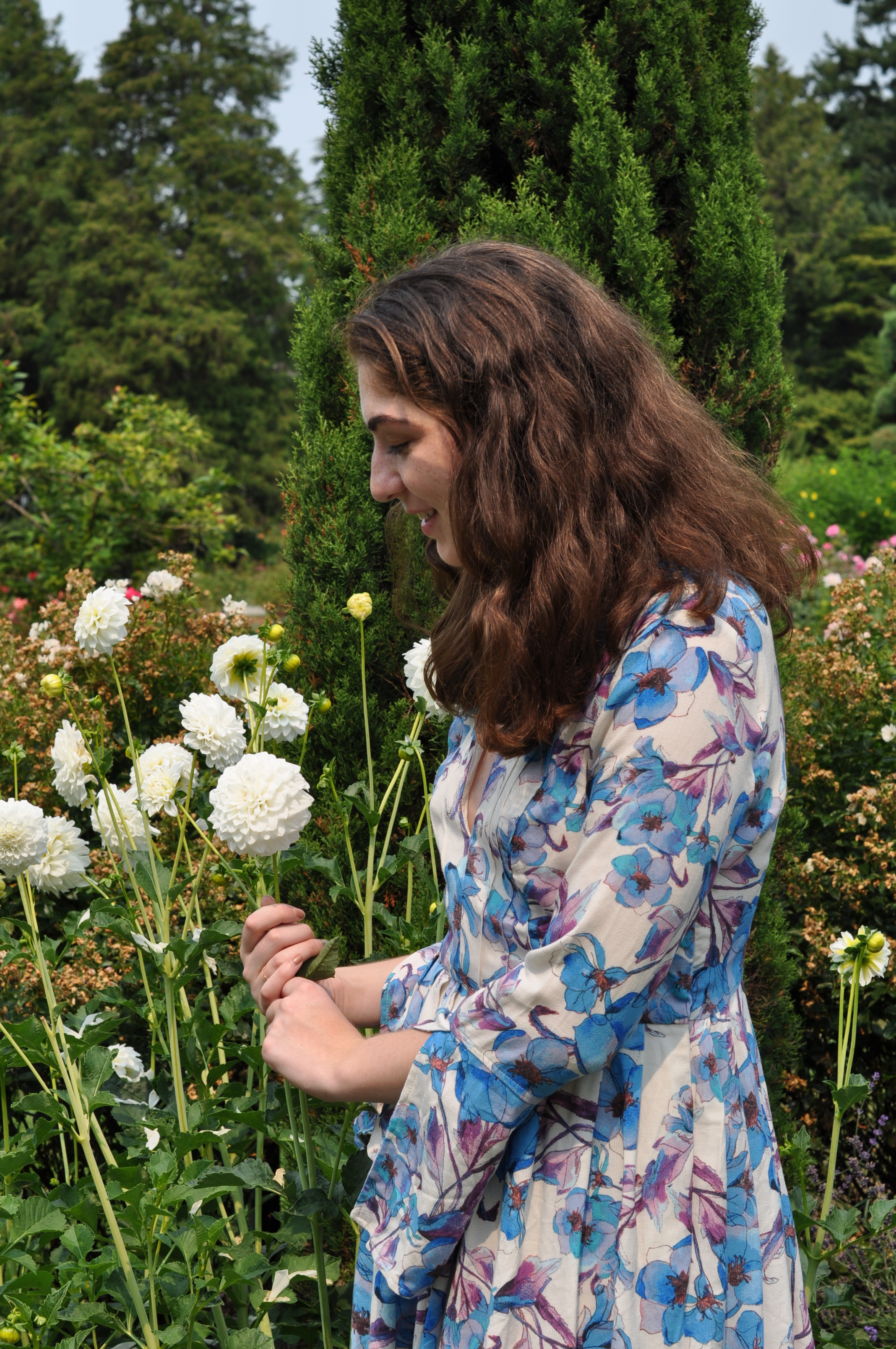 Antes de que demos la vuelta a la página para comenzar el otoño, quisiera dedicarle un último post al último día de verano en el blog dada la cadencia con la que posteo, y que gira alrededor de una tradición que se formó el año pasado llamada Intern Vogue Edition. Quizás recuerden un post del verano pasado que escribí acerca de moda para interns con ayuda de mi increíble grupo de interns en la Bloedel Reserve. Bueno, este año, casi el mismo grupo de interns (con la excepción de Henry quien se encontró fuera este verano pero que fue reemplazado por Jacey) y yo fuimos una vez más a un hermoso jardín de la localidad a tomar fotos para el recuerdo con increíbles panoramas llenos de flores, un bello mirador de madera, fuentes, y por supuesto, ¡nada podía combinar con esta escena mejor que patrones florales y colores pasteles! Así que decidimos que esos serían los dos temas que regirían nuestros atuendos.