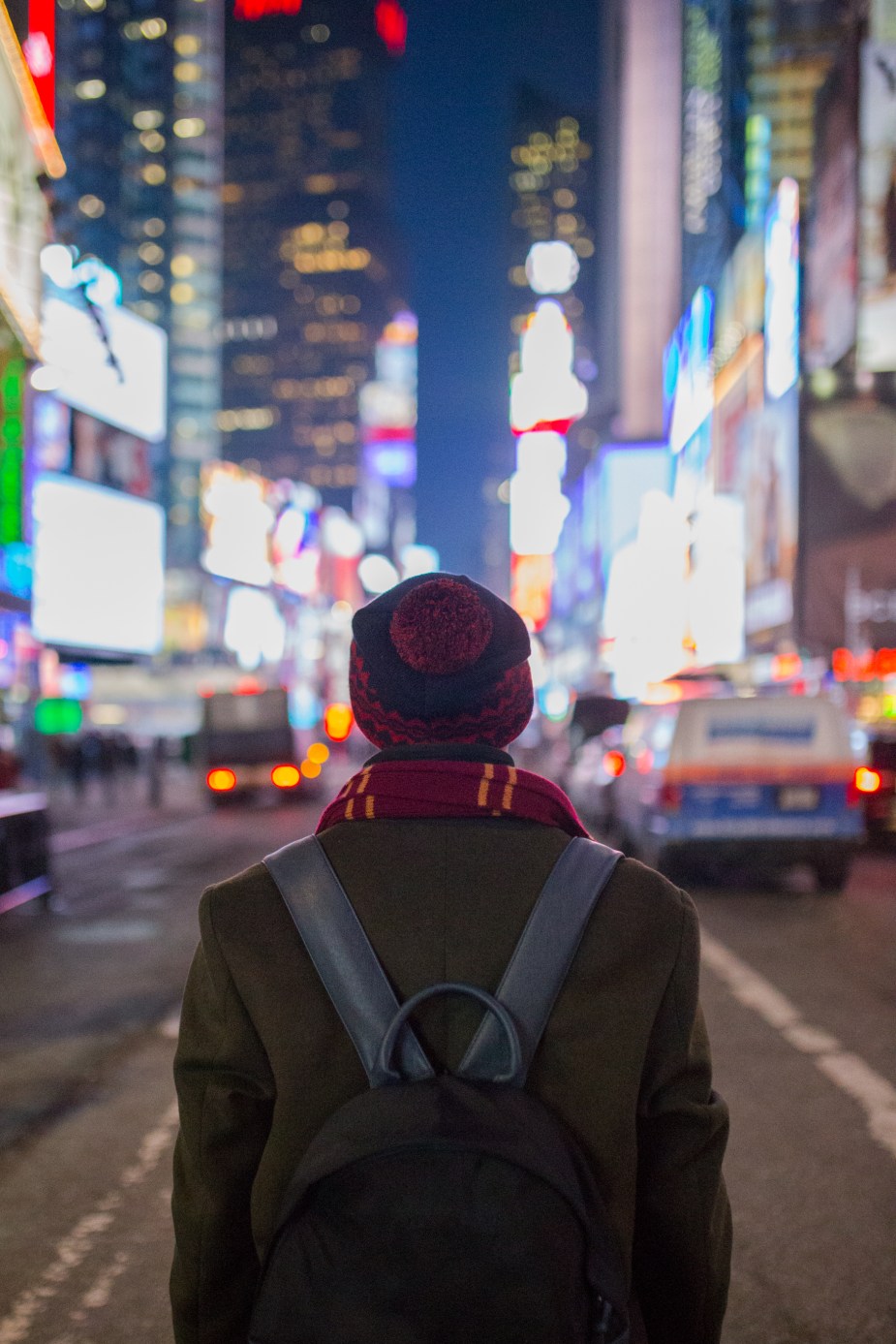 In the afternoon that same day, Arturo and I attended another runway show called Couture Fashion Week. What was special about this event was that, in contrast to The Shows from Day 1, there is no ready-to-wear in these fashion shows, it’s all about fantasy gowns, artistic materials, and a bit more room for moving fashion forward. Here we saw a show by Vietnamese designer Valentines Van Nguyen, which featured big circular dresses in beautiful, colorful prints. Some of the pieces here were astonishing, with some of my favorite being a full-skirt dress in blue with some imprints of yellow butterflies, and a very interesting top and skirt made out of real horn, with embedded flowers, and embroidery all around the top. It was mesmerizing, and the models walked beautifully down the runway as the 20-piece collection made its way from start to end with a big finale look which featured high-shoulder pads and a beautiful blue and red print. I was really happy to see this show because it reminded me of how fashion is supposed to try and break boundaries and go beyond what’s marketable. It was a deep breath of fresh air and I had a great time in the gorgeous venue, which was the Crowne Plaza hotel. Also during this show I was able to meet up with my friend Melissa Lim, from Melissa in Paris, which was also in New York and I was super happy to have met with. Later after the show, Arturo and I walked the busy streets of Times Square at night and we shot these beautiful city views in my Scandinavian outfit. Thank you Arturo for the photos, I had a blast with you (and next post will feature more photography from him on Days 3 and 4, so keep posted to the blog!)