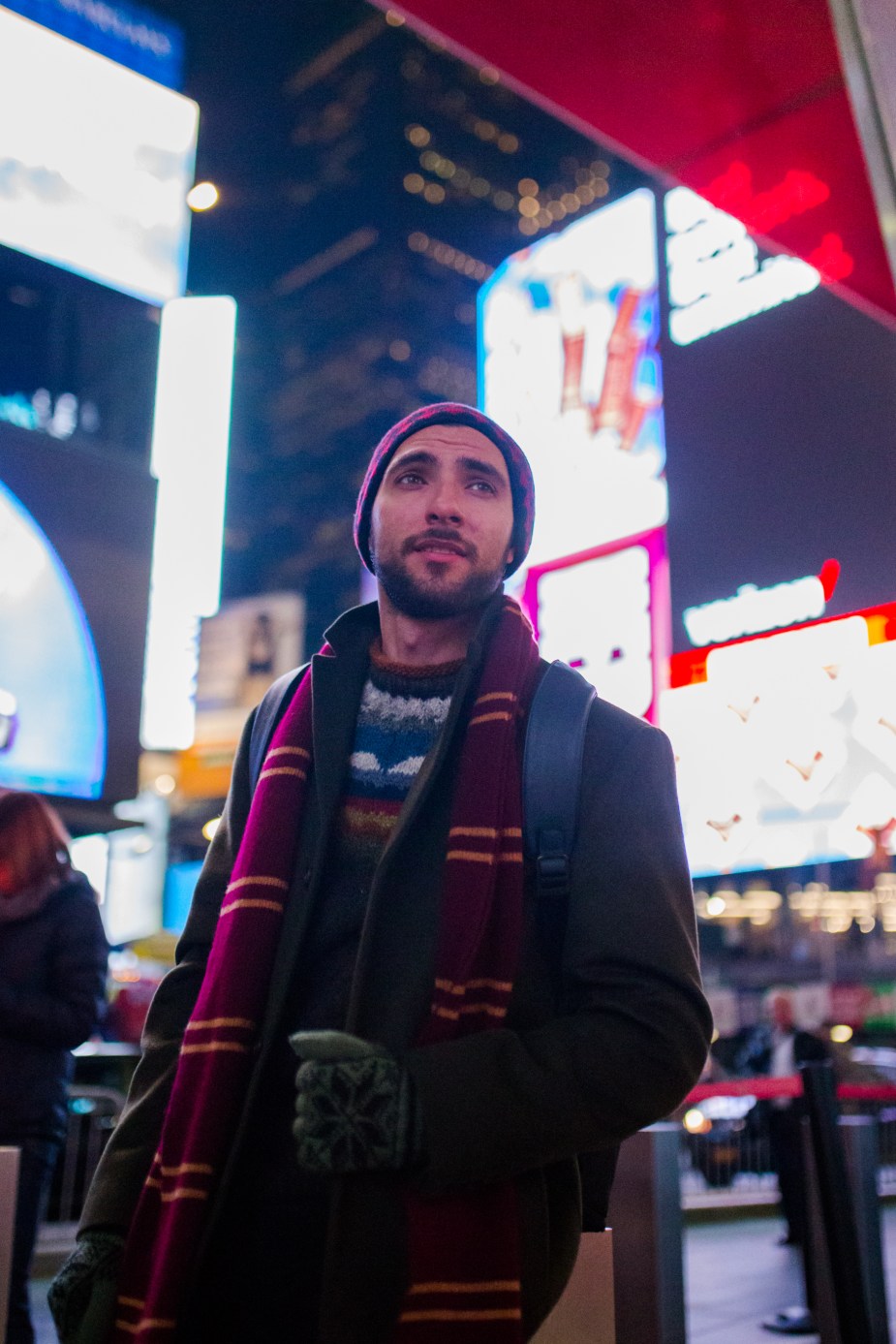 En la tarde de ese mismo día, Arturo y yo fuimos a un show de moda llamado Couture Fashion Week. Lo que hace de este evento tan especial, es que en contraste con los espectáculos de The Shows del día 1, no hay moda ready-to-wear en estos shows, es más sobre los vestidos de fantasía, usar elementos artísticos, y tratar de mover la moda a la vanguardia. Aquí vimos un show de una diseñadora vietnamita llamada Valentines Van Nguyen, la cual giraba en torno a vestidos largos con faldas grandes hechos en telas muy llamativas y coloridas. Algunas de las piezas realmente me impresionaron, siendo algunas de mis favoritas un vestido de falda con crinolina en color azul con unas mariposas en tonos amarillos, y un top con falda muy interesante hecho con cuerno de verdad, con flores embebidas, y mucha piedrería alrededor de la parte superior. Fue algo súper sorprendente y las modelos caminaron la pasarela mientras que las 20 piezas de la colección fueron apreciadas de principio a fin, terminando con un look final con hombreras en una tela azul con rojo muy bonito. Me hizo muy feliz ver este show ya que me recordó que la moda debe de tratar de romper con los esquemas de lo que se puede vender o no. Fue una bocanada de aire fresco y además el lugar estaba hermoso, fue en el hotel Crowne Plaza. Además durante este show tuve la dicha de reunirme con mi amiga Melissa Lim, de Melissa in Paris, la cual también se encontraba en Nueva York y me dio muchísimo gusto verla. Después del show, Arturo y yo aprovechamos para caminar las ajetreadas calles de Times Square de noche y tomamos estas hermosas imágenes de la ciudad con mi look escandinavo. Muchas gracias Arturo por las fotos, me la pasé increíblemente bien contigo (y el siguiente post va a tener todavía más fotos tomadas por él en los días 3 y 4, así que manténganse al pendiente del blog).