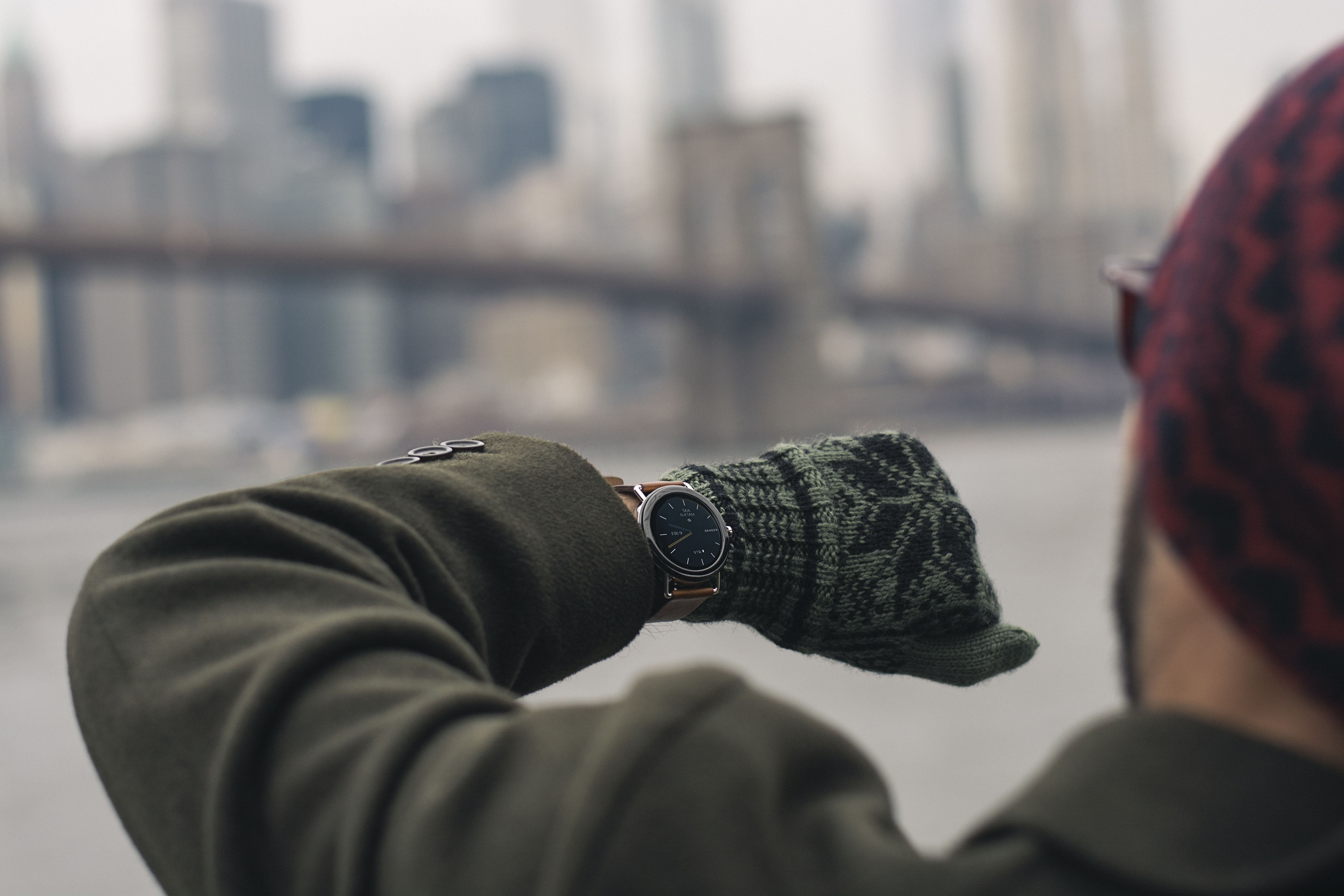 Una cosa más que les quería platicar es que finalmente me convencí a mí mismo de comprarme un smartwatch. Me tomó un tiempo decidirme por hacerlo ya que realmente no estaba convencido por ninguno de los smartwatches que se encontraban en el mercado, particularmente por el diseño estético. Pues este reloj de Skagen, una compañía de tecnología danesa, es exactamente lo que estaba buscando. Empezando porque es redondo, ya que siempre he preferido los relojes redondos sobre los cuadrados, y tiene muchas habilidades que realmente me gustan, como Google Fit para mantener registro de mis pasos y ejercicio, notificaciones de mis aplicaciones (inclusive con un pequeño teclado que puedes usar para responder al mensaje desde el reloj) y mi característica favorita, carátulas configurables, así que yo configuré el mío para tener una carátula análoga. Esto me encantó ya que puedo sentir como si tuviera un reloj común y corriente, clásico pero con todas las funcionalidades que me gustan del smartwatch. Además puedes bajar cualquier aplicación de la Google Play Store, la cual tiene cientos de aplicaciones hechas para hacer de tu experiencia algo todavía mejor. Y una cosa más que realmente me gustó de este reloj es que es muy fácil de cambiarle el extensible, así que me compré uno como el que ven en estas fotografías, de piel, y uno de plástico para poder usarlo en el gimnasio. Esta fue la manera perfecta de registrar todo lo que caminé en la Gran Manzana durante mi viaje, ¡lo cual terminó siendo alrededor de 39 km en 4 días! Quisiera agradecer a Nick por tomarme estas fotografías con mi reloj en las orillas del río en Dumbo, y por haber hecho un trabajo excelente. ¡Me encantaron las fotos!