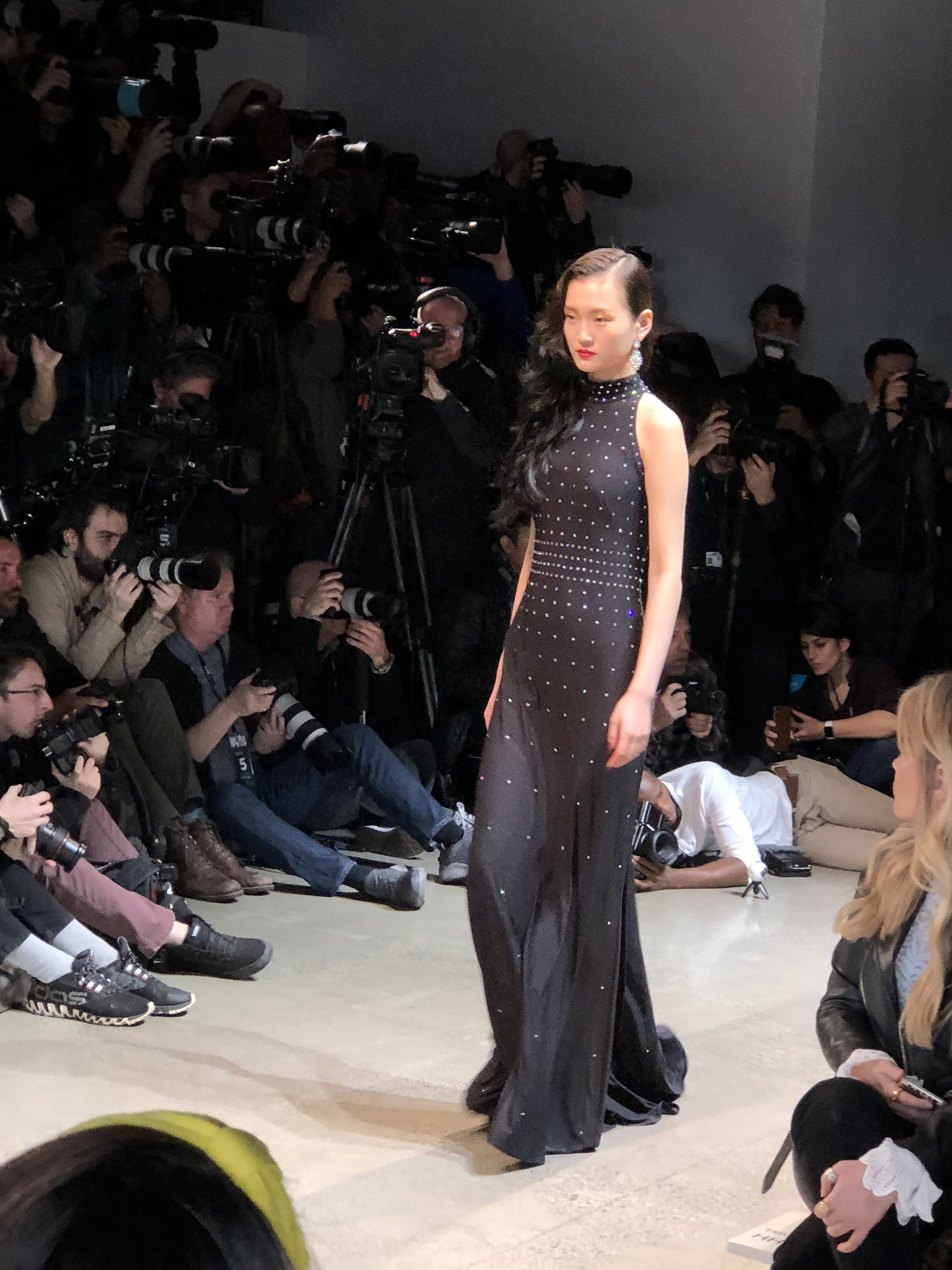 Before the next event, which was another runway show, we had a small lunch break and an opportunity to do Q&A with the creative directors and editors of Art and Commerce that circled around editorial photography. With the advent of social media, the editorial world has been hit like a storm in the way people consume and appreciate printed photography. It was really interesting to see their point of view, since me as a blogger, I rely way too much on social media, but I sometimes see that some of the photos that take me the longer to produce don’t have the impact I expected. It is a new world with new rules, and we’re slowly learning how to use it everyday. After lunch, it was time for acclaimed fashion designer Tadashi Shoji, in Gallery 1 of the Spring Studios, to wow us with his magic. Everyone was really happy to see Shoji’s new collection, since his previous runway shows have always been packed with glamorous looks and very sleek evening wear. Some of my favorite pieces were definitely the gowns, which were elegant, beautifully tailored, and really flattering to the models. In this collection, we can see Shoji’s impeccable eye for detail, the draping, pleating, and tailoring of these dresses was executed to perfection. His collection also targets every occasion for the busy woman, from cocktail dresses, to nightgowns, to formal wear, it suited everyone and every time. I wasn’t able to meet Tadashi in person, but one of my highlights of the whole trip was that he actually replied back on my Instagram story telling me that he hoped I enjoyed the show. I definitely did!