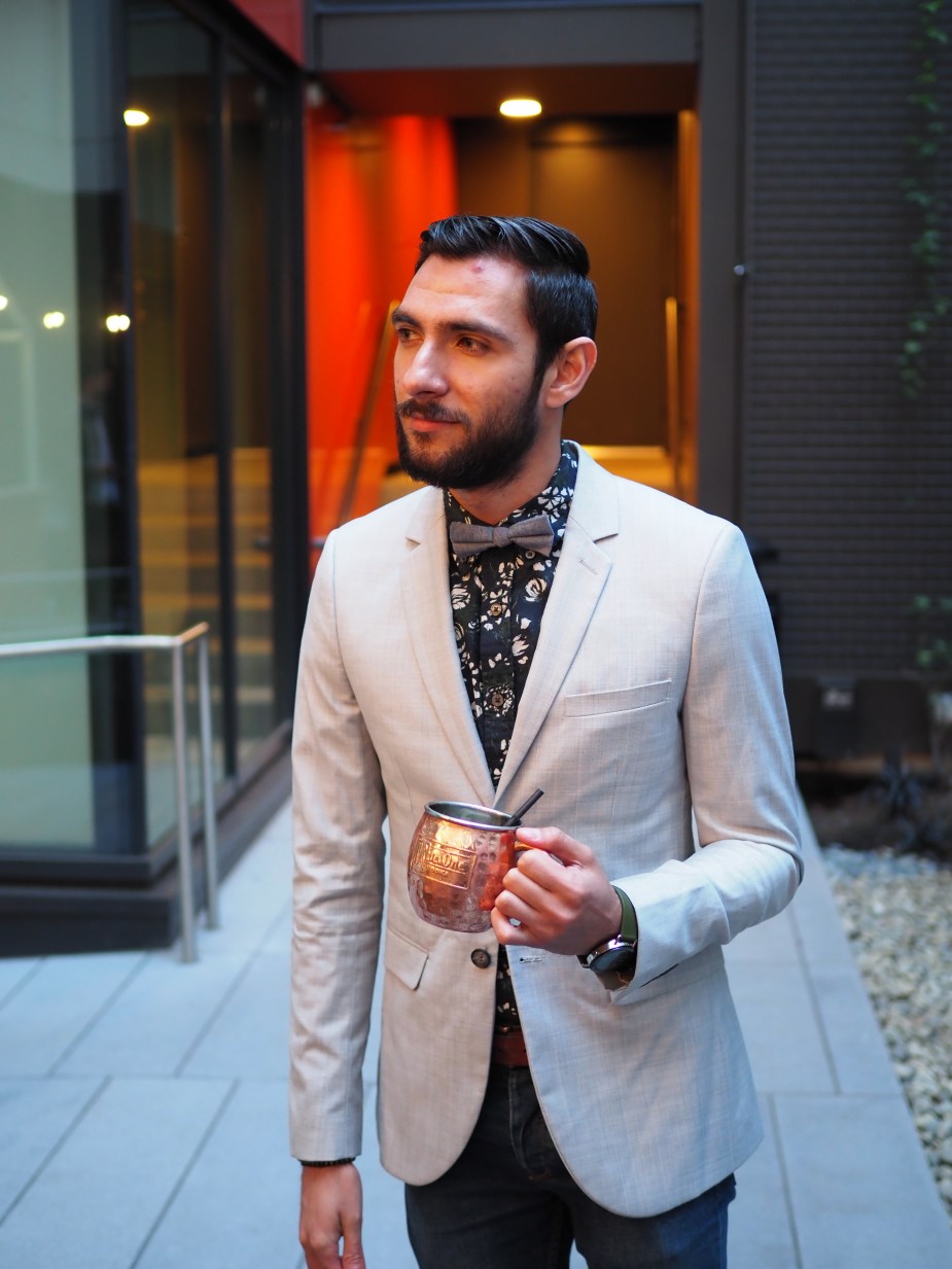 For this special evening, I decided to wear a full-on spring combination comprised of a gray blazer from Topman and a floral blue button-down from Club Monaco. I paired these two with my favorite jeans from Topman and completed the look with a baby blue bow tie, also from the same store (you can tell I like Topman right?) For the shoe, I went for a brown Chelsea boot from Aldo and my colorful, Fair Isle socks are from J. Crew. This was the perfect ensamble for the evening, since as the sun went down it actually turned from warm to cool, and I was able to enjoy the night by having one of my favorite drinks: a Moscow Mule. What do you guys think? Are you all ready to incorporate some of these tips in your spring fashion? I want to thank Antonio for taking the following photos and Avi and Endurance for organizing such a fun event.