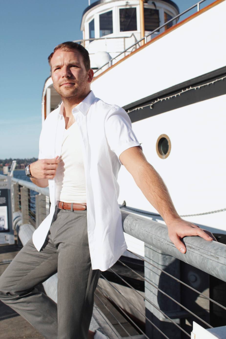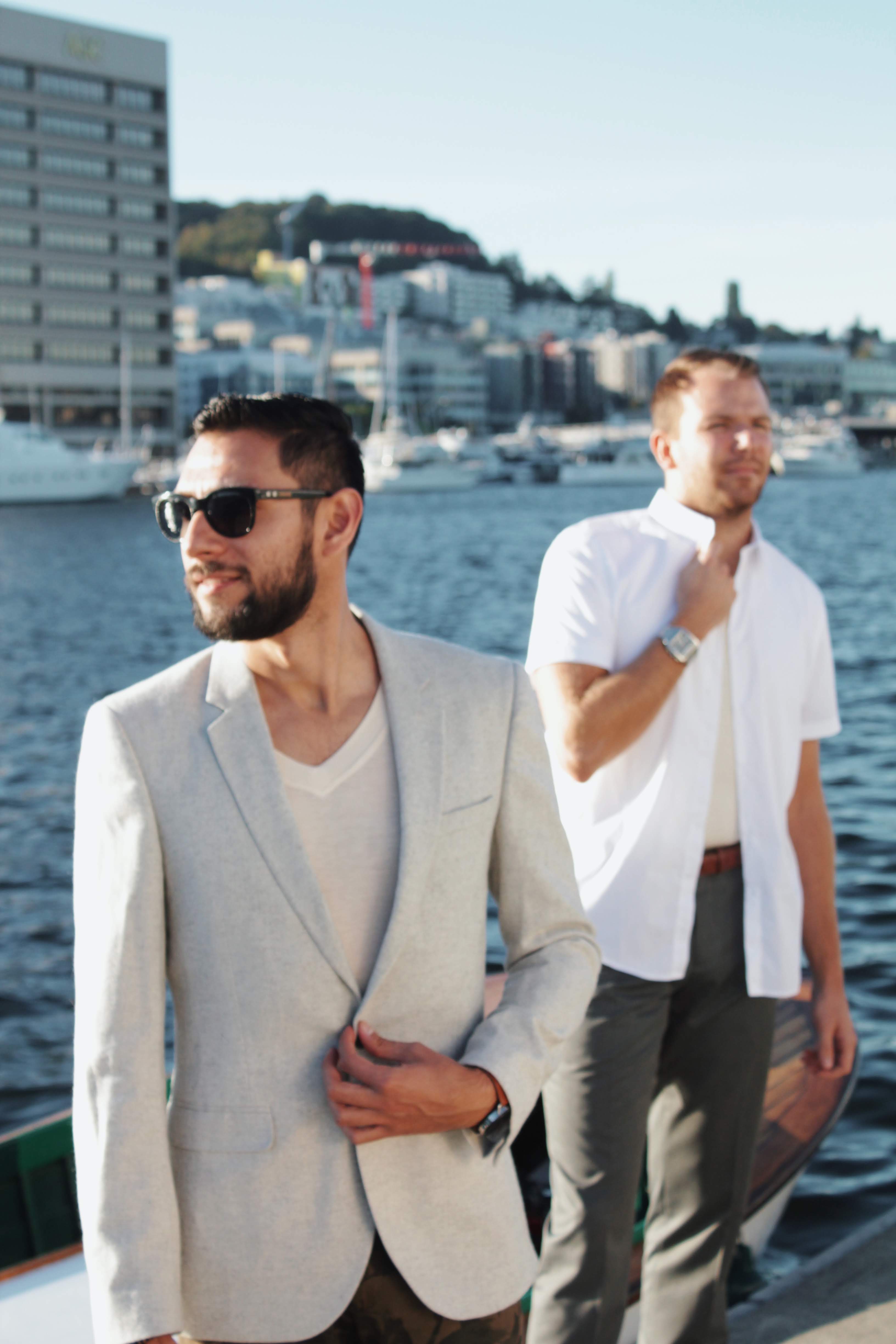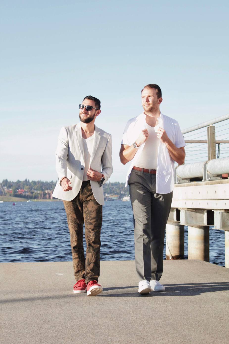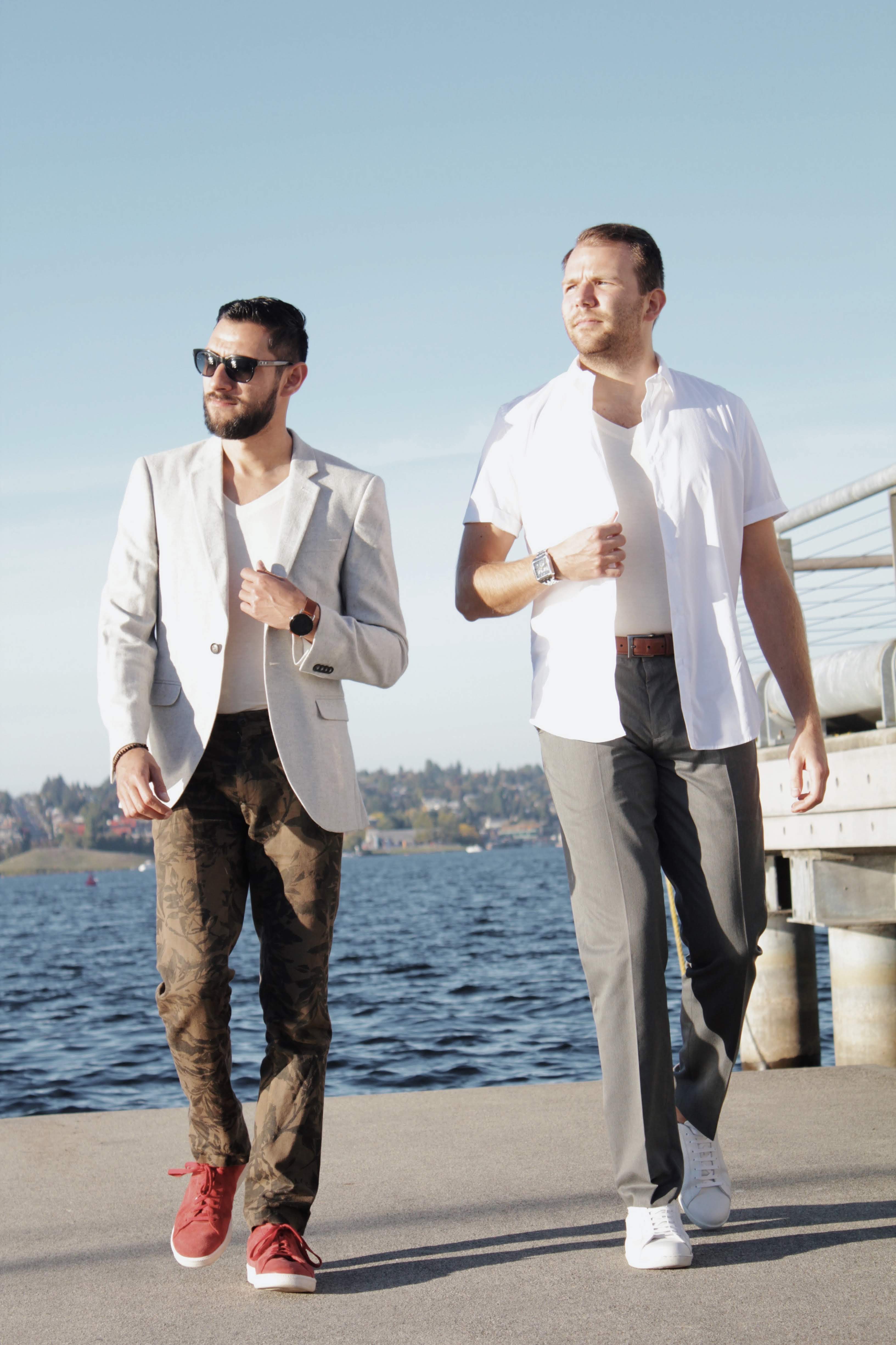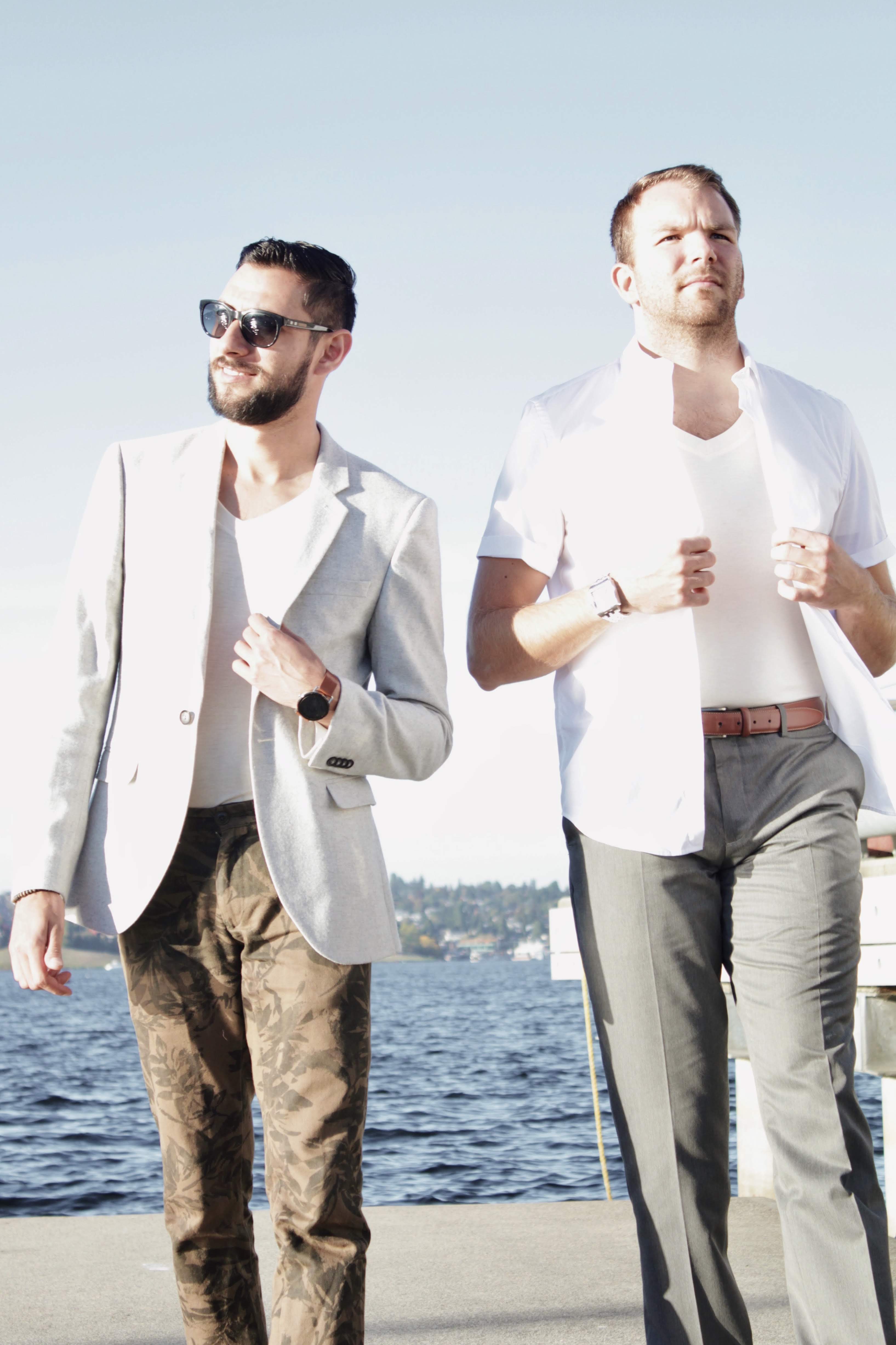 For our collaboration with NVSBL I decided to try the light yellow undershirt, since it goes well with my skin tone and I wanted to use it as a regular shirt. Since these shirts are made with such nice, quality fabrics, then you can wear them as a regular shirt or as an undershirt, which is a really cool thing. I paired up the yellow NVSBL shirt with my camouflage pants from Club Monaco, since it’s already fall and this pattern goes really well with the season. Then I placed a white blazer from Topman as the outerwear. For the accessories, I opted for my Burberry sunglasses along with my Skagen smartwatch. Finally, for the shoes I went for my red pair of Nike’s, which give a really nice pop of color to the whole outfit. In Raf’s case, you can see how he paired the undershirt with a plain white shirt and some olive chinos. You can see the versatility of the clothes, since we’re wearing the exact same model of undershirt! What do you guys think? Next time you’re looking for an undershirt, make sure you give these ones a try. Also, I want to thank Trigga and Stais for taking these amazing pics by the beautiful MOHAI in South Lake Union, and Antonio for the creative direction and overall support.