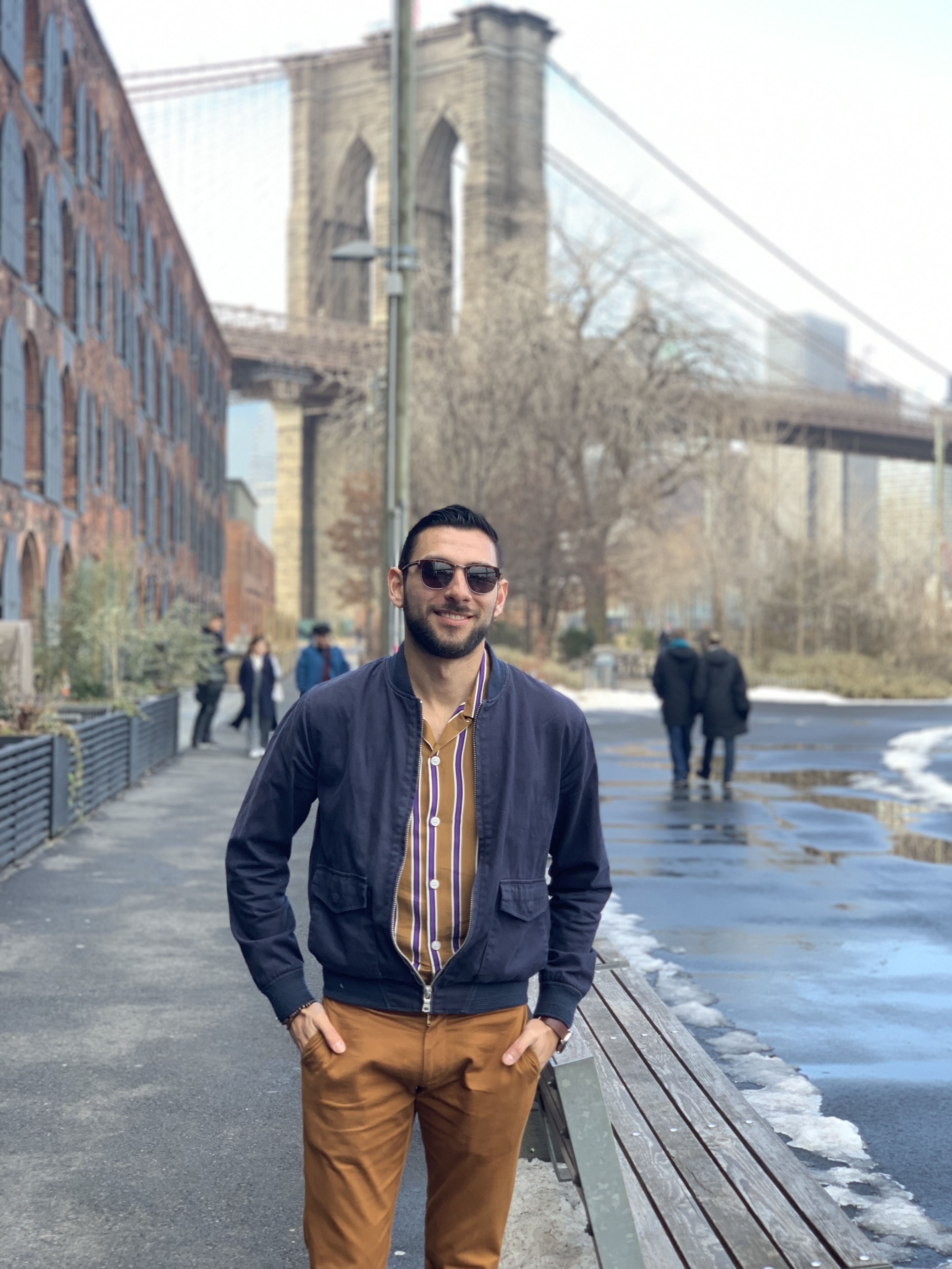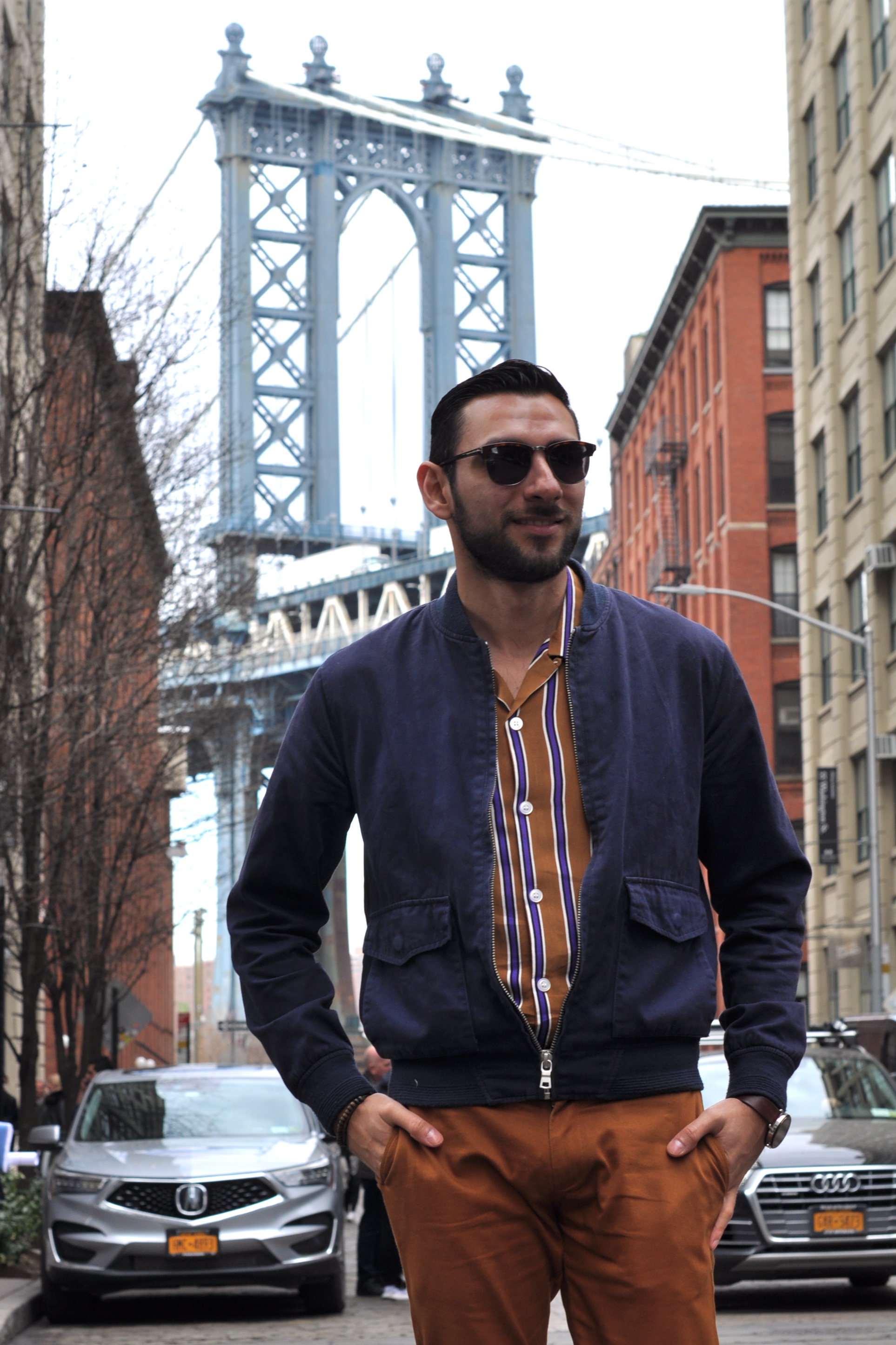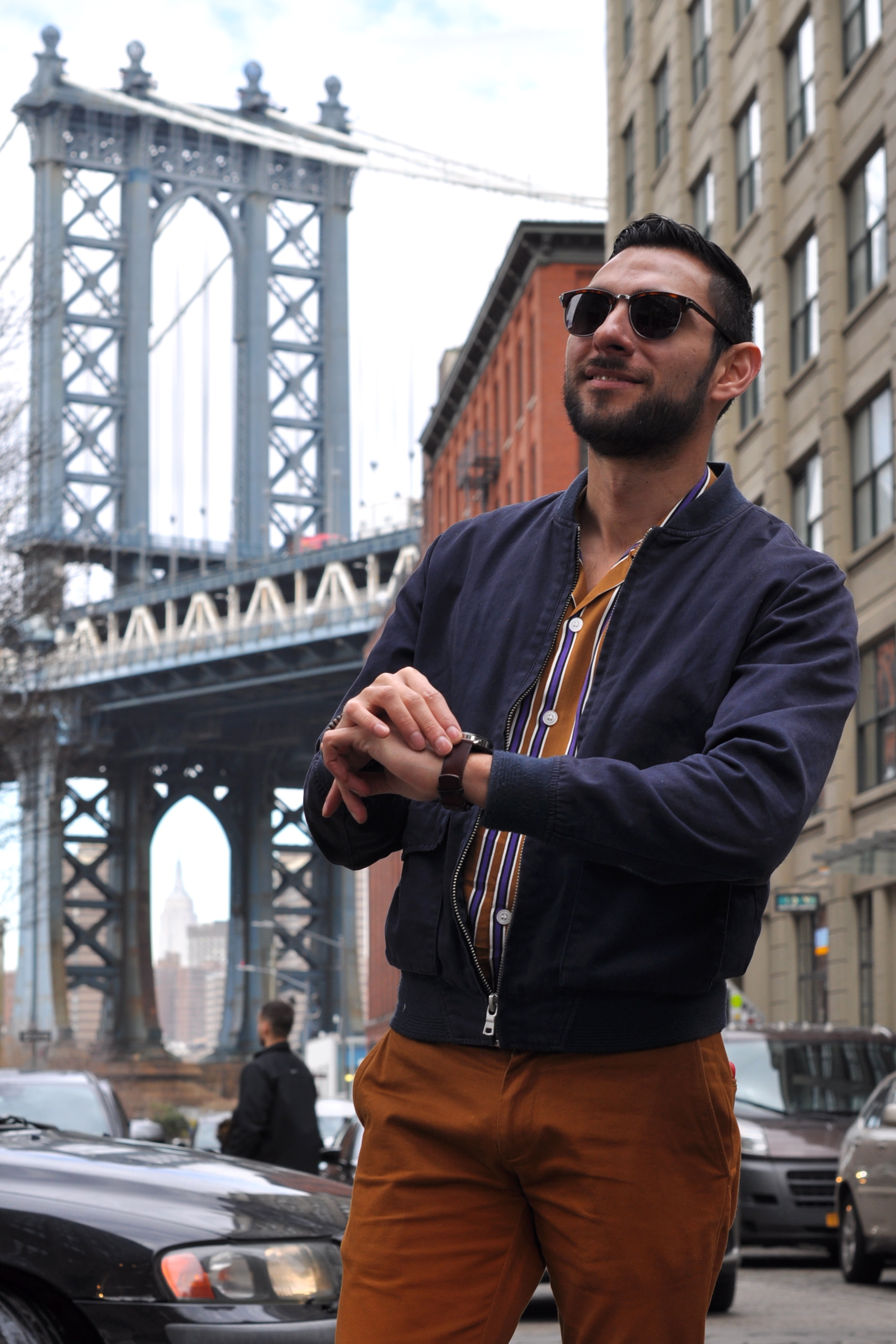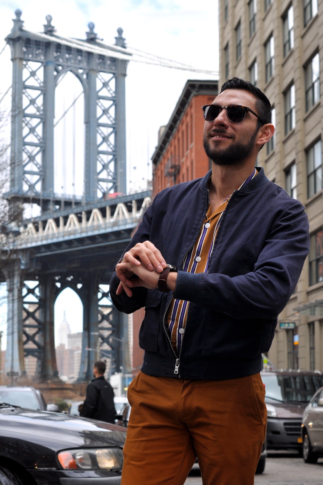 En nuestro penúltimo día, fuimos a Brooklyn, un área de Nueva York que recientemente ha crecido muchísimo y que se ha convertido en una de mis zonas preferidas para caminar y pasear por la ciudad. Vimos algunos lugares insignia de NYC como son Dumbo y el Brooklyn Bridge Park, y pudimos tomar el subterráneo a otro lugar que nunca había visitado previamente: Coney Island. Para mi aventura en Brooklyn, quise irme por un look más hipster y urbano, que consistió en una camisa de rayas en color café claro y morado de Topman junto con unos pantalones cafés de J. Crew. Sobre este look me puse además una chamarra de bombardero de Topman ya que ese día no hacía tanto frío (de hecho, llegamos casi a los 15 grados esa tarde). Además, complementé este atuendo con un par de lentes de sol de TOM FORD, uno de mis diseñadores favoritos y este es el primer artículo que poseo de cualquiera de sus colecciones (aún sueño con algún día tener un traje TOM FORD de todas formas). El look era simple y estaba bien pulido, así que creo que contrastó muy bien con los edificios de ladrillos y las bodegas que conforman el área alrededor del puente de Brooklyn.