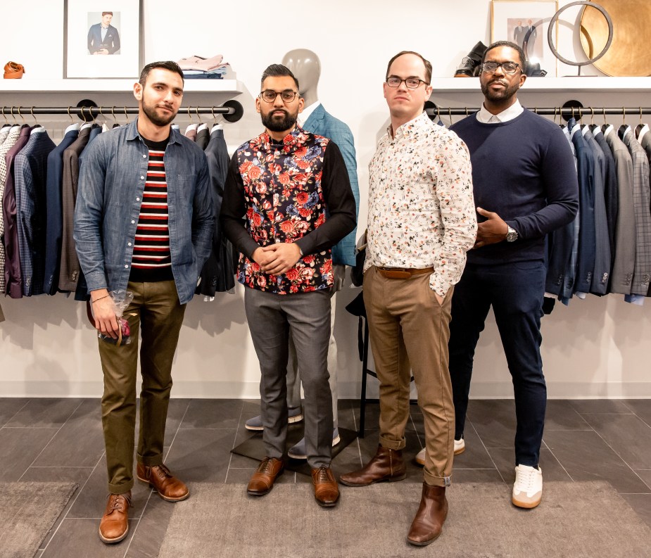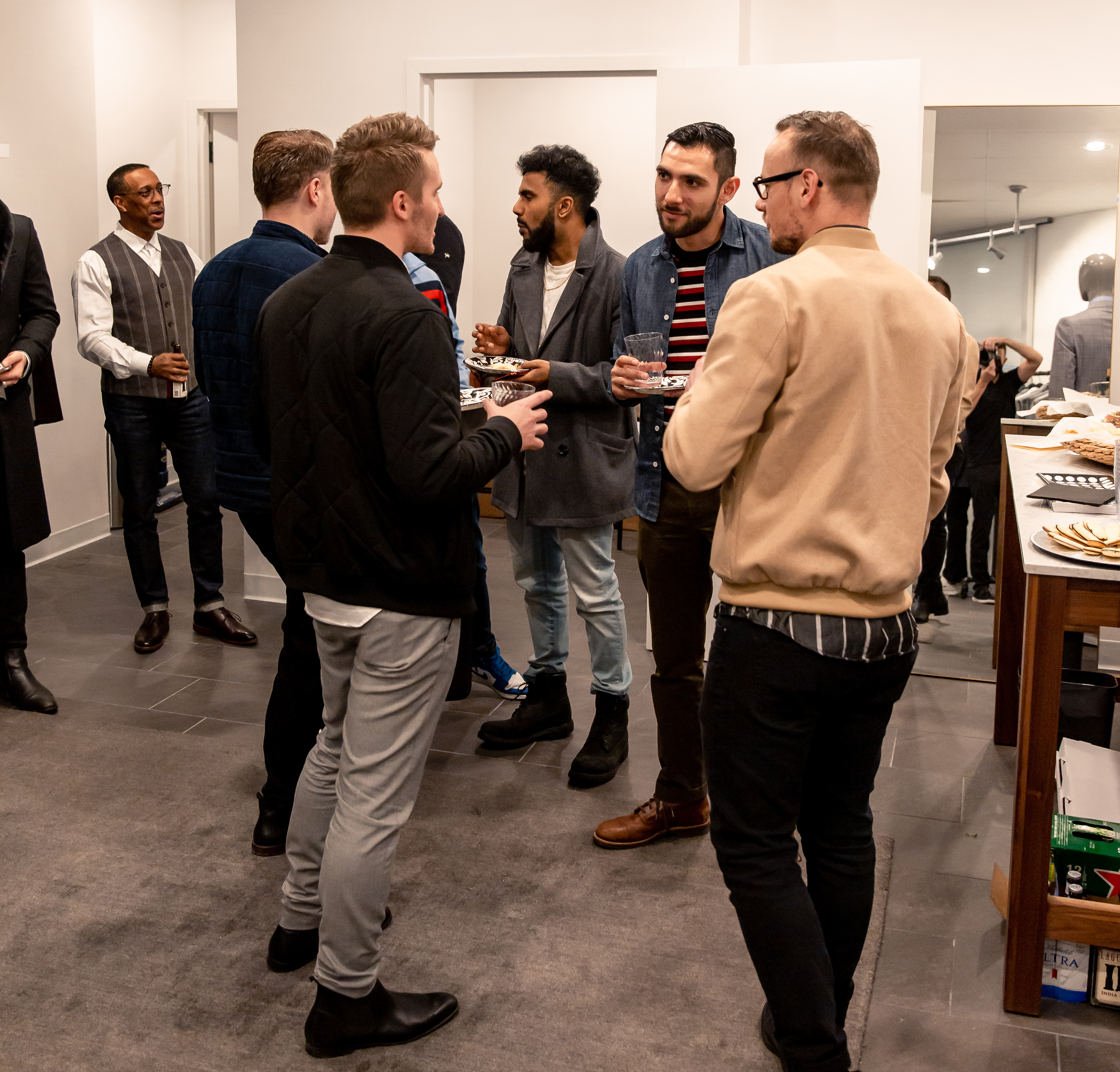 For this event I decided I wanted to wear some colors that I think will be very important this season: military green and shades of brown. For that, I chose my pair of military green chinos from J. Crew along with a denim shirt also from J. Crew, and a striped Topman sweater. Red, black, and white might not sound like the most spring-like colors, but I think that the pattern works with the overall outfit. For the shoe, I decided to wear my brown leather boots from J. Crew, which have been a great purchase so far since I’ve been able to style them with many different outfits and they have all looked great. What do you folks think? In the pictures you can see some other really cool looks worn by the rest of the Gents, so you can get some nice inspo as to what to wear during this season. Thanks to Nick from Empower Photography for taking these really cool shots!