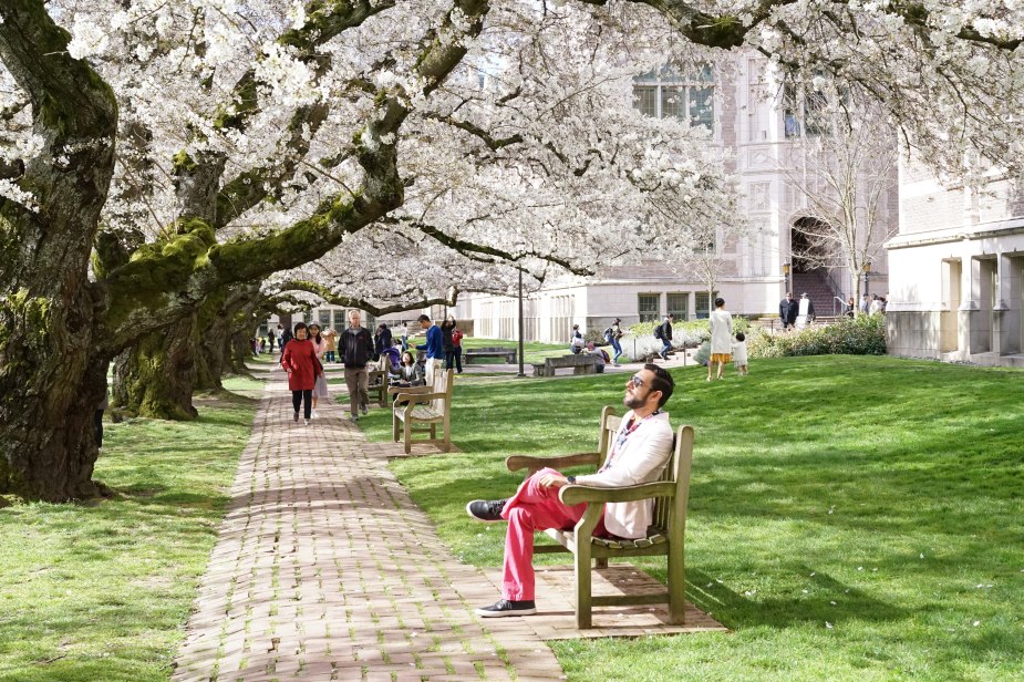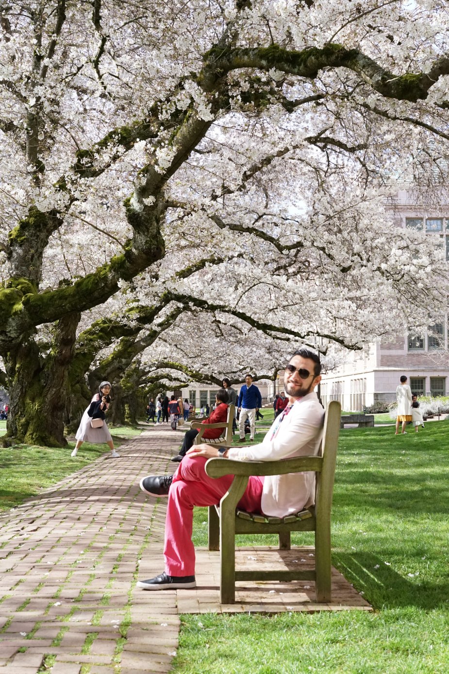Si ustedes no han estado aquí antes, tienen que saber que la Universidad de Washington tiene uno de los campus universitarios más bellos que he visto en mi vida. La arquitectura es majestuosa; comprendiendo de todo desde edificios hermosos de ladrillo rojo, a construcción gótica, Art Deco, moderna y una inmensidad de áreas verdes y de parques. Es como un pequeño viaje a través del tiempo y de la historia del mismo Seattle y, en el corazón de todo esto yace el Quad de UW. Cada año, miles de personas se reúnen en este sitio para ser testigos de este asombroso espectáculo natural y, por supuesto, yo no quería perderme del que fue denominado uno de los florecimientos más tempraneros y grandes de los últimos años.