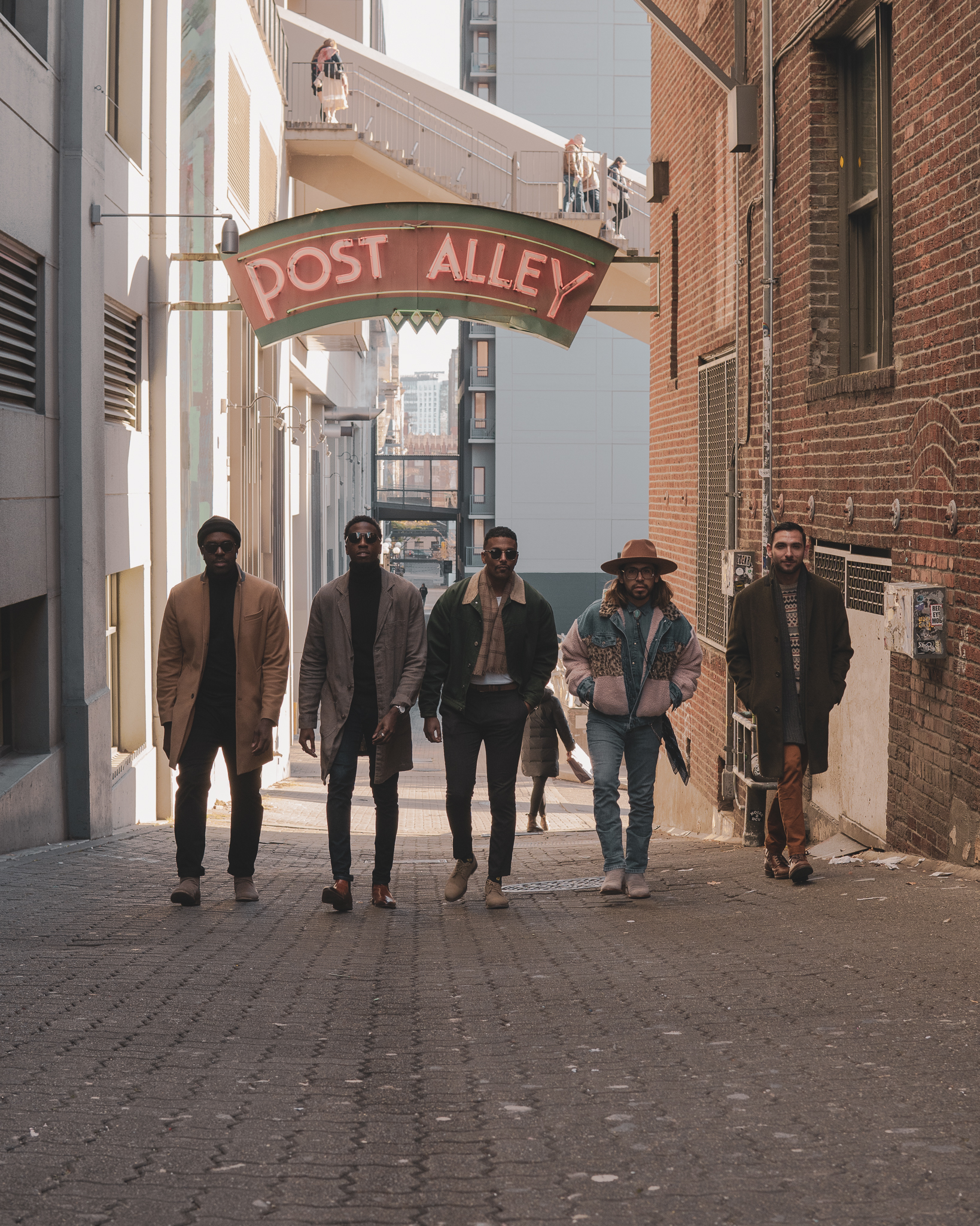 Ahora volviendo al blogpost del día de hoy, como sabrán el invierno se encuentra ya a la vuelta de la esquina. Así como la famosa frase del aclamado show de televisión Game of Thrones, la cual está grabada en nuestras mentes por siempre, dice: “el invierno se acerca”. Los Gents y yo decidimos colaborar con Steve de The Social Cut, una barbería y café de cuidad personal basada en LA, en un especial de invierno de los Seattle Gents: 5 looks diferentes para esta temporada invernal. Algo que siempre me ha gustado desde un principio acerca de nuestro grupo, y lo cual sigue siendo cierto hoy en día, es lo diverso y multi-cultural que este es. Esto se ve reflejado en nuestros estilos personales, y aquí se puede observar una vez más, que tenemos algo para todo tipo de estilo: desde lo urbano, hasta lo clásico, lo casual y lo formal, hay algo en cada uno de estos looks que nos representa. Este es el poder del estilo, puede contar una historia sin palabras, y en este caso, nuestra ropa cuenta nuestra historia.